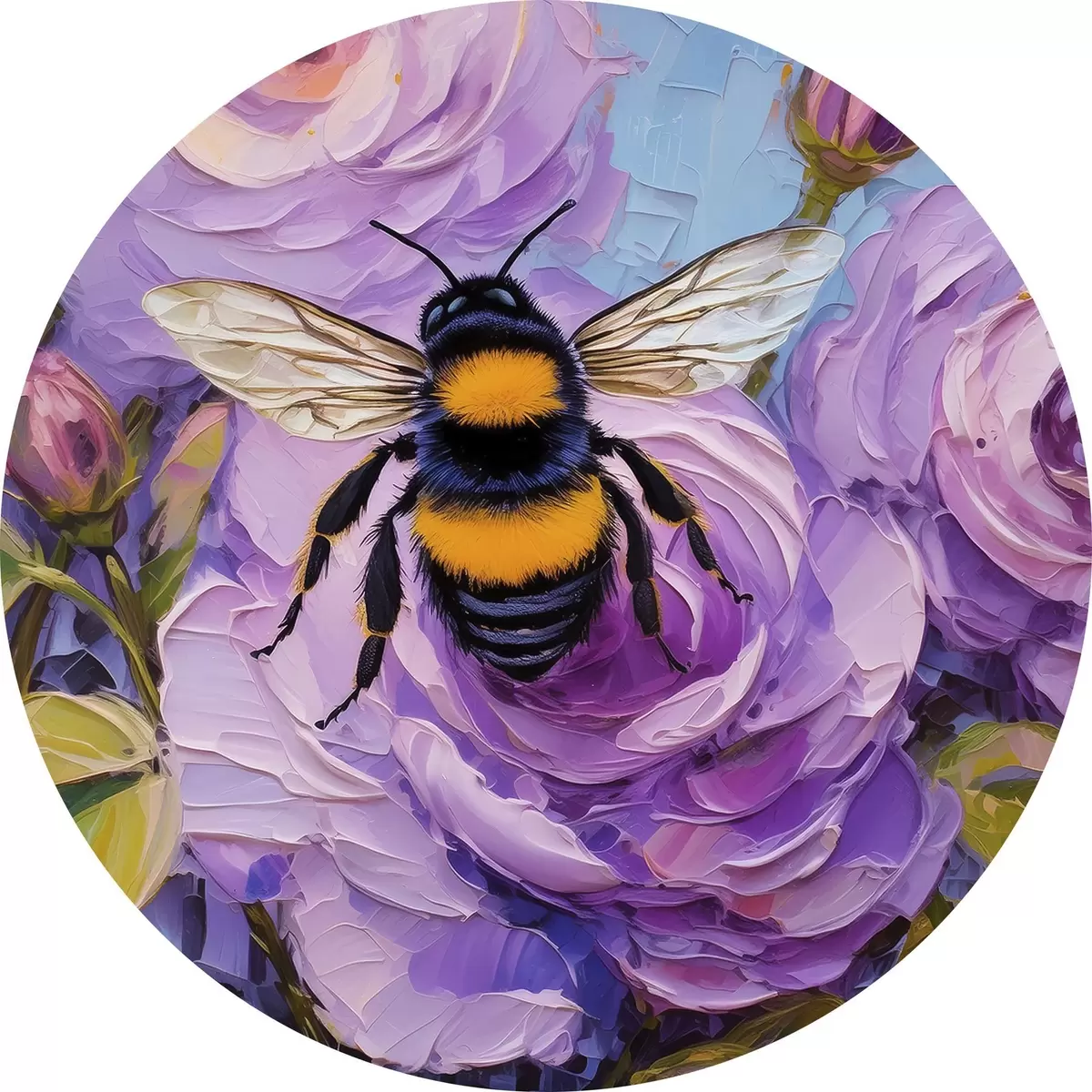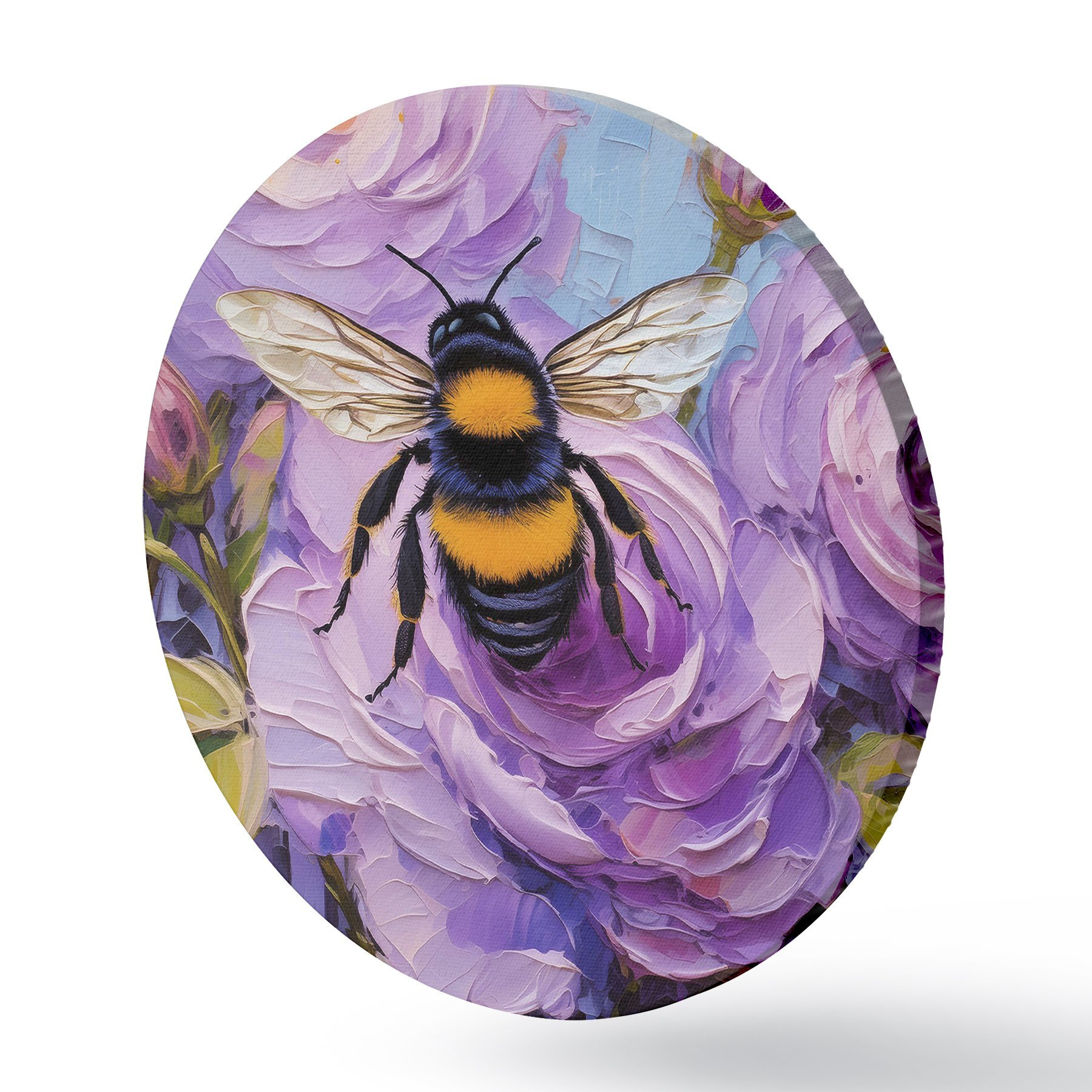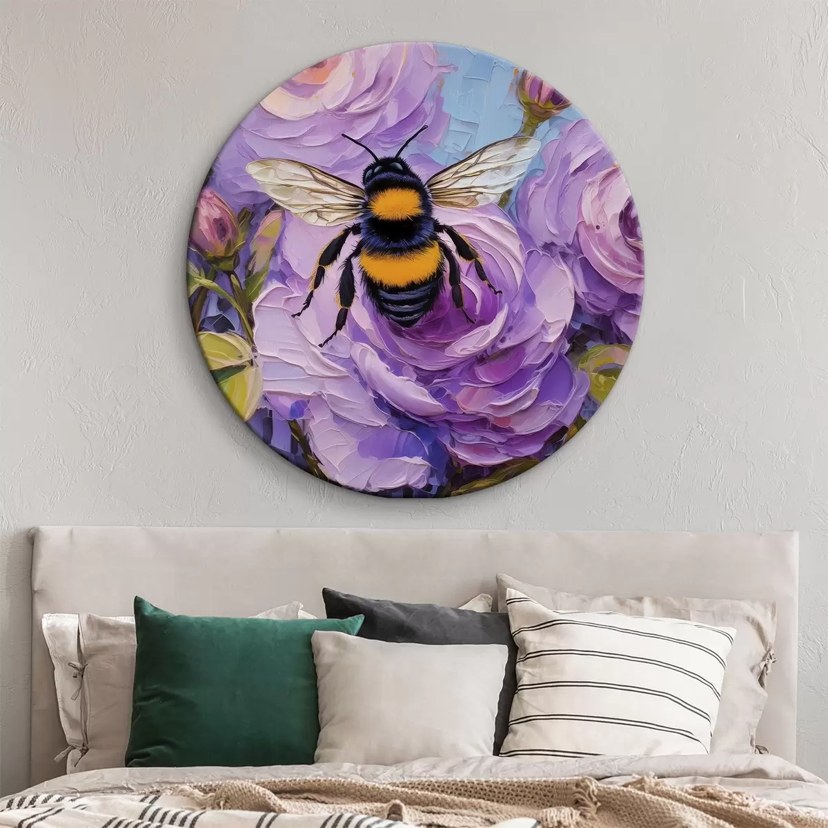 Ronde schilderijen Bij op de roze pioenrozen, kleurrijke zomerbloemen, olieverfschilderij, levendige penseelstreken r39411