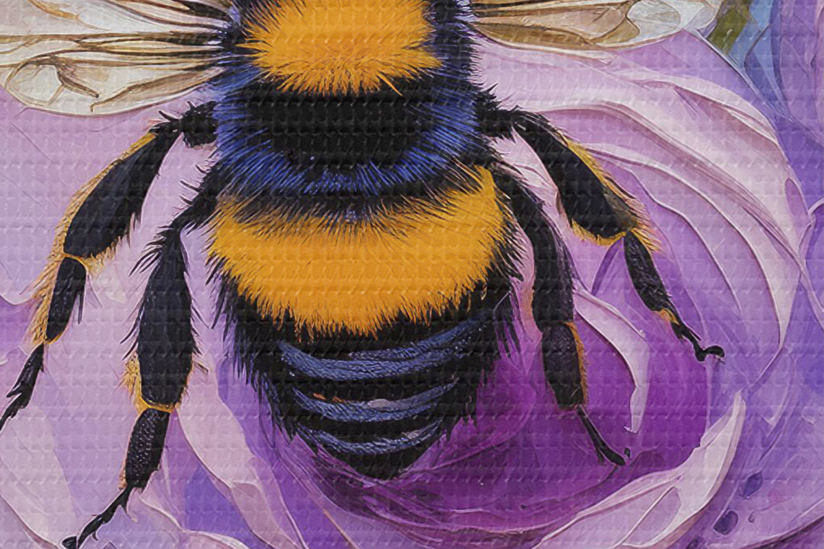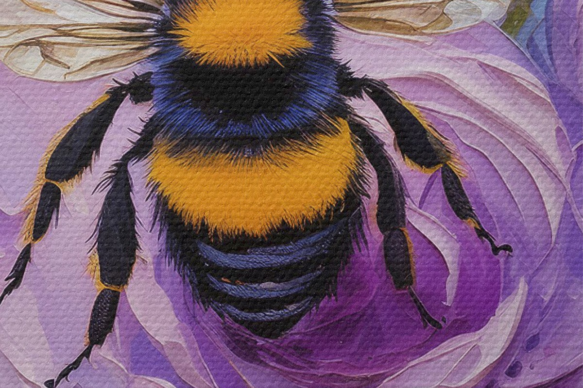 Afbeelding Bij op de roze pioenrozen, kleurrijke zomerbloemen, olieverfschilderij, levendige penseelstreken Nr r39411