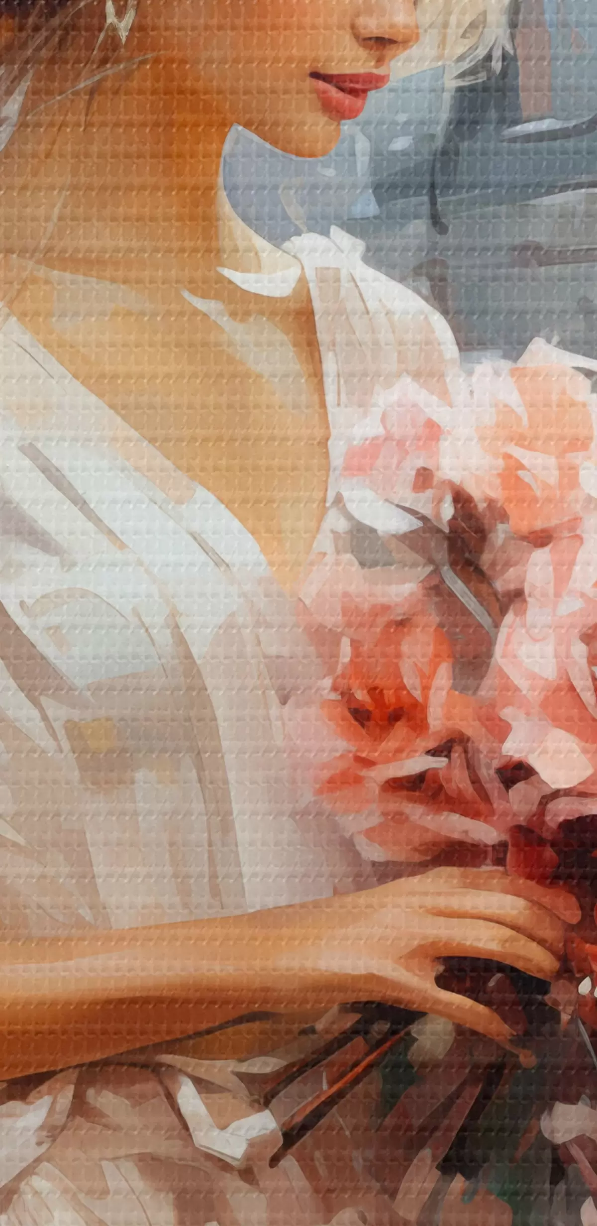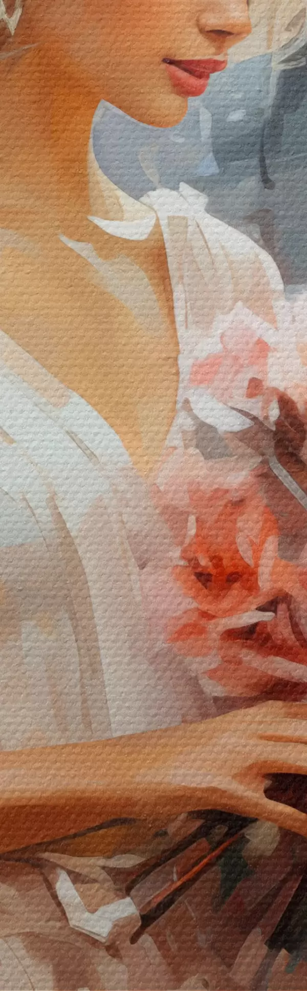 Er zijn drie soorten materiaal te bestellen: Economic Canvas - een dicht en duurzaam materiaal voor digitaal printen, identiek aan schildersdoek, waterdicht oppervlak, realistische weergave van details, materiaal met gemiddelde korrel. Premium Canvas - de textuur lijkt op die van schildersdoek (verweven kleine draden). Zachte, gedetailleerde reproductie van de afbeelding op een mat oppervlak. Eco-Premium - hoogwaardige 100% katoenen stof. Dankzij de natuurlijke katoenvezels is het materiaal duurzaam en slijtvast. Uitstekende kleurweergave en detail.