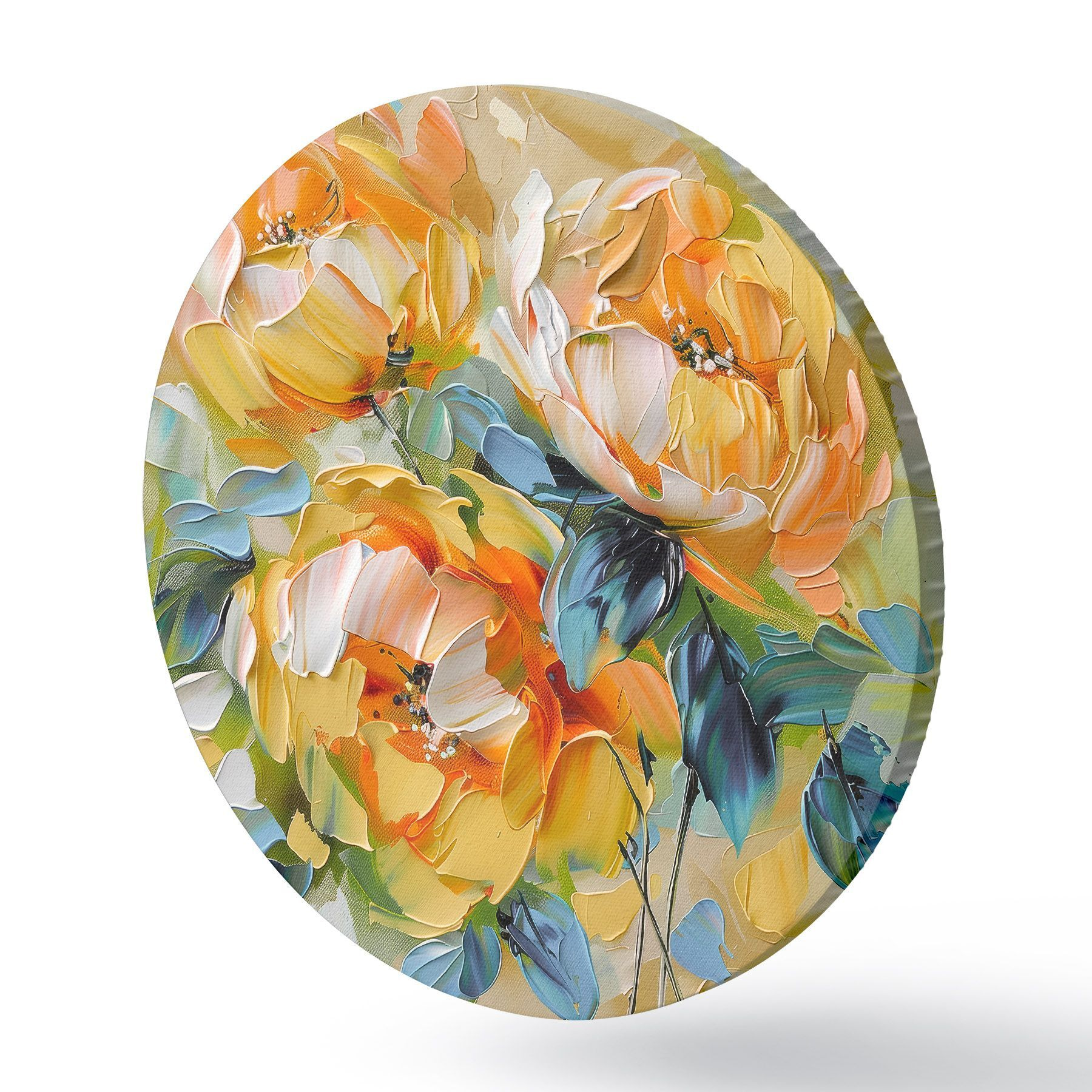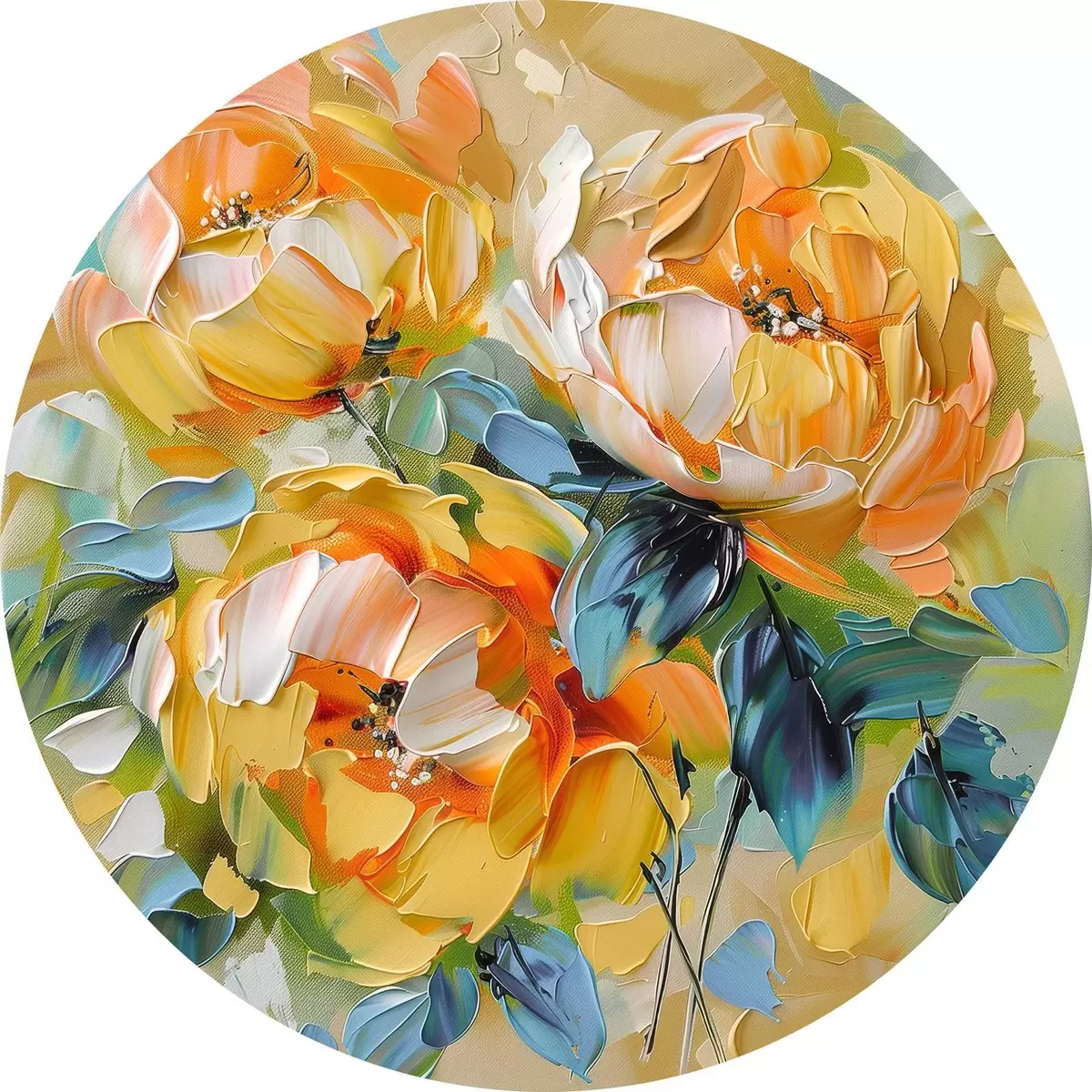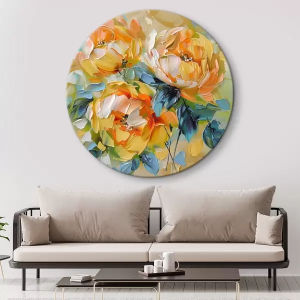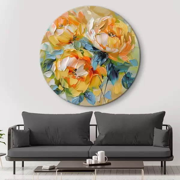 Ronde schilderijen Levendige bloemen met rijke texturen in een kleurrijke abstracte compositie r39460