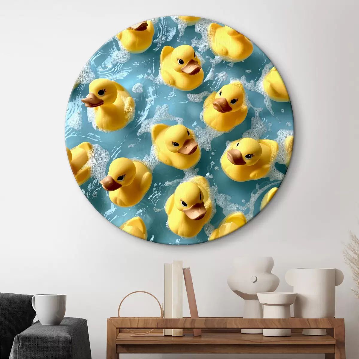 Ronde schilderijen Realistische badeendjes die in het water drijven r39469