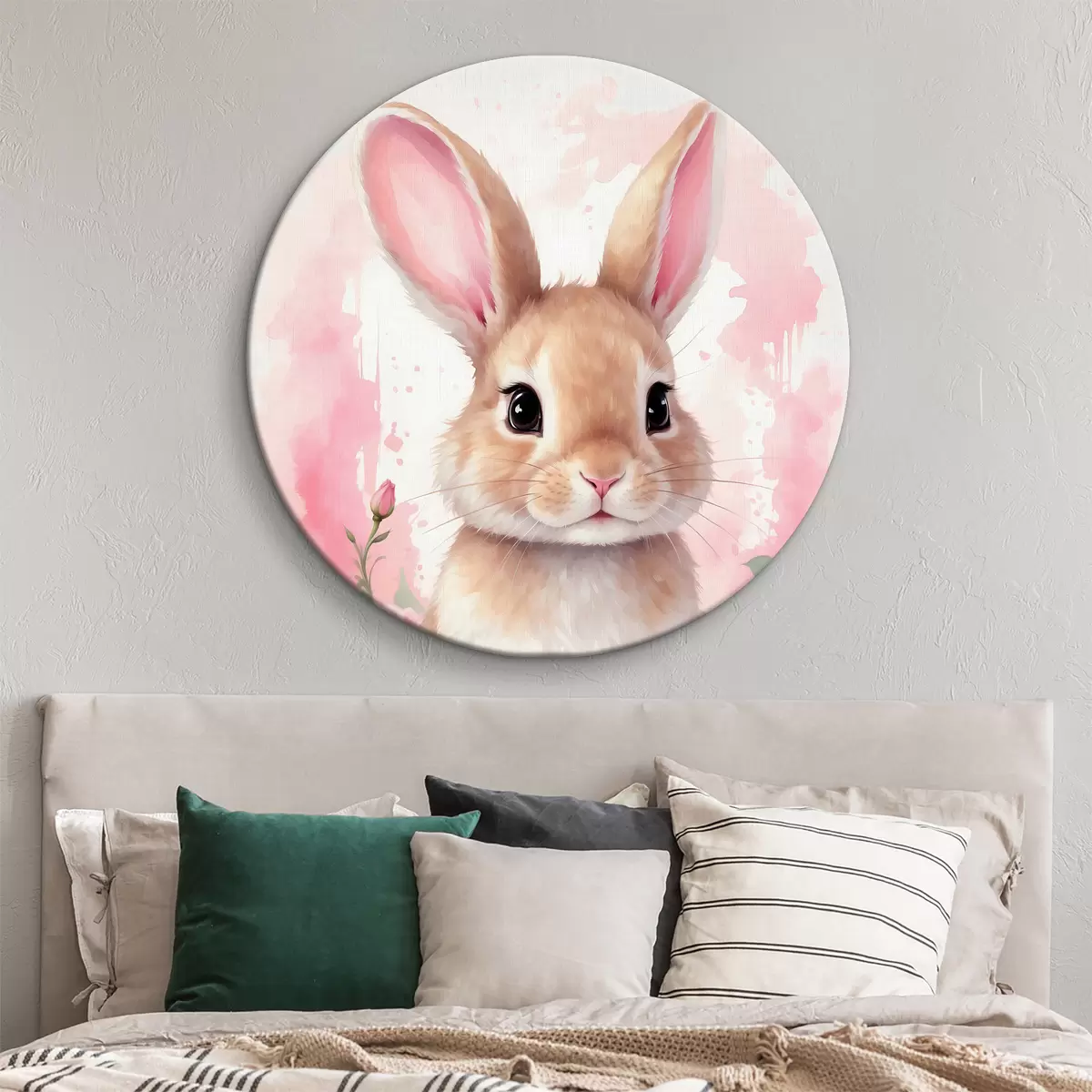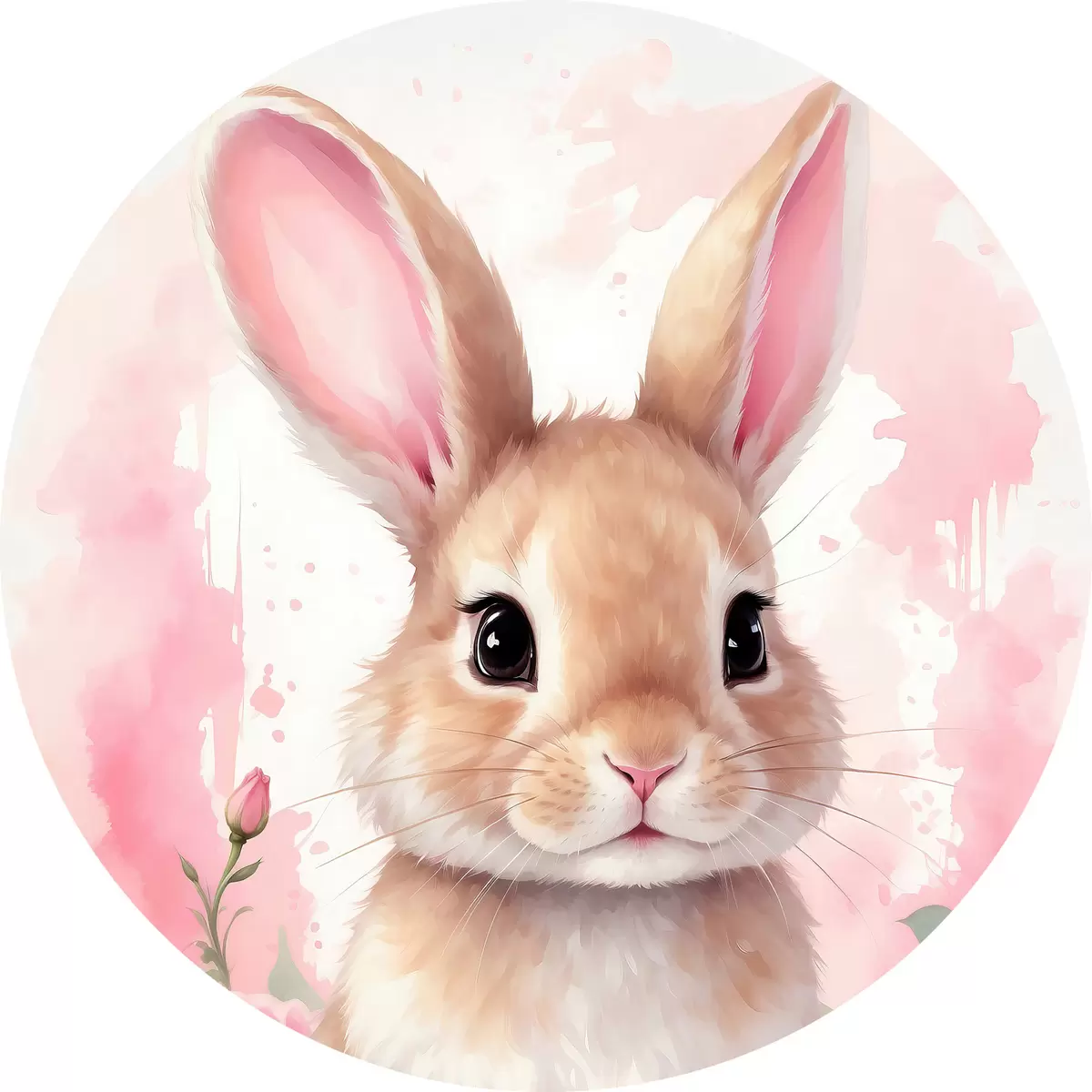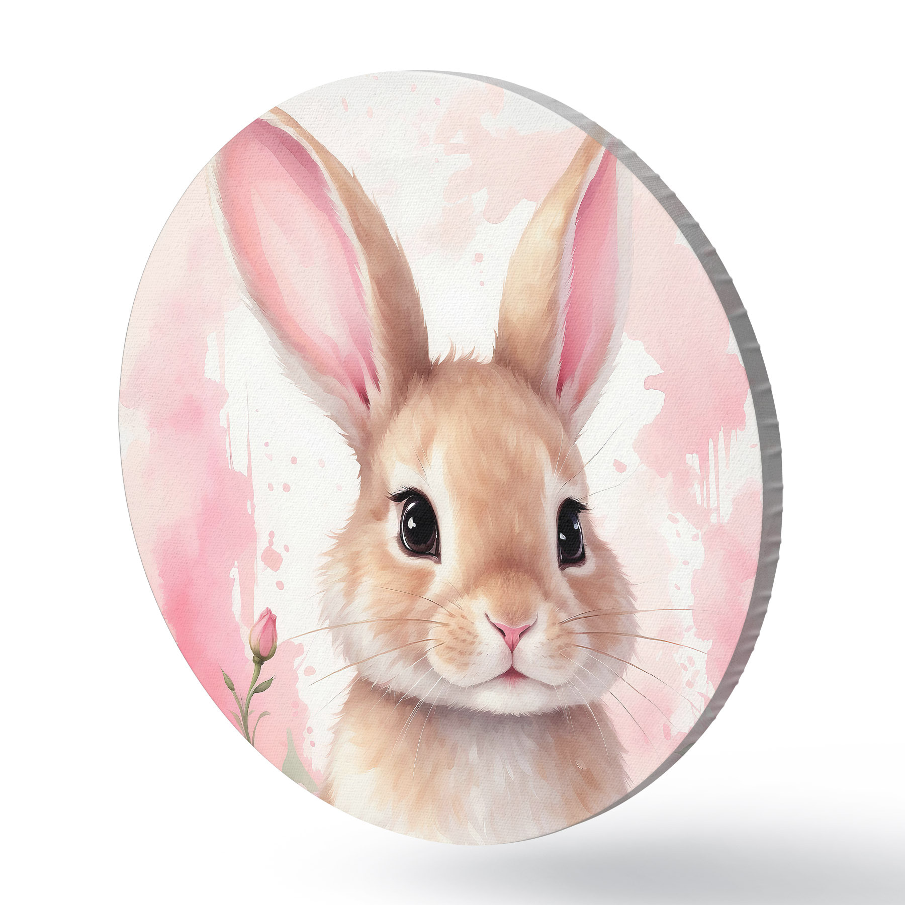 Ronde schilderijen Schattige Haas in roze bloemen r39559