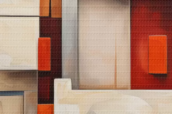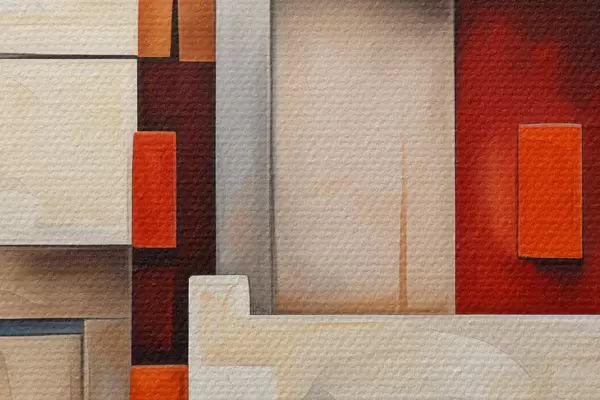 Afbeelding Abstractie in kubismestijl, olieverfschilderij, rode, blauwe, witte kleuren Nr r39571