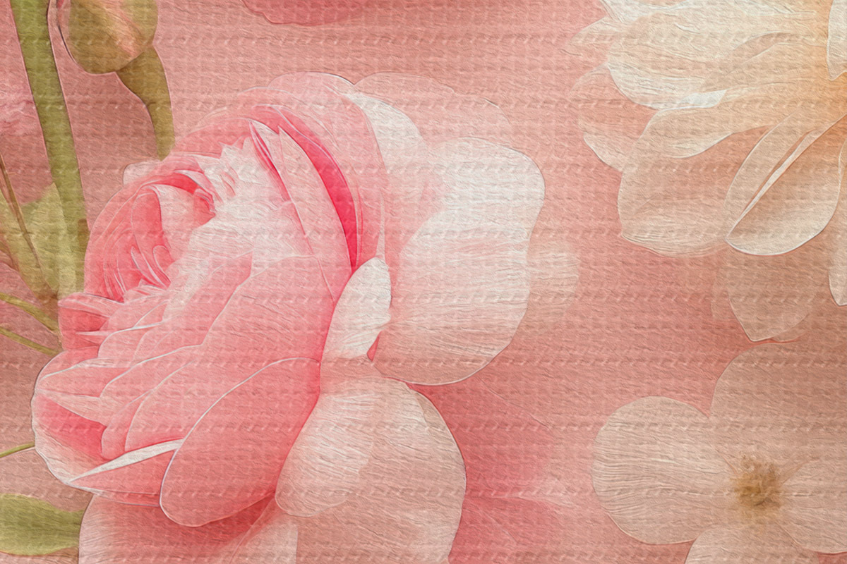 Afbeelding Weelderige bloemen op een roze achtergrond Nr r39576