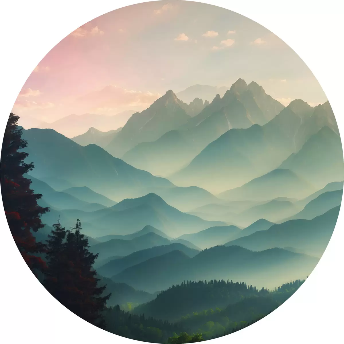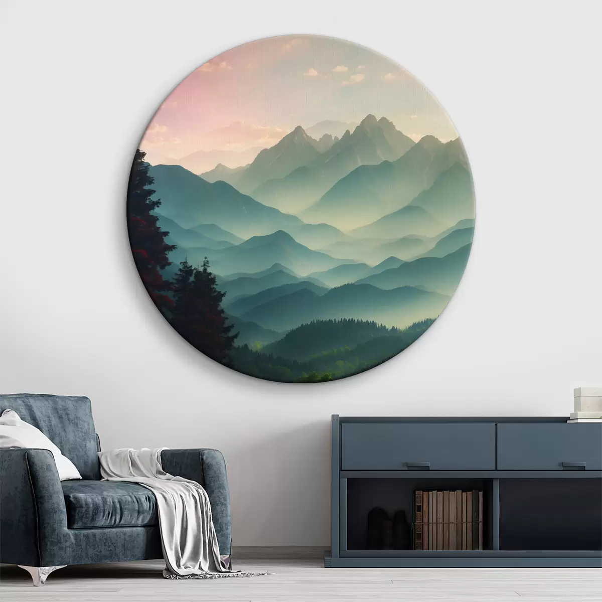Ronde schilderijen Uitzicht op de bergen bij zonsopgang r39607