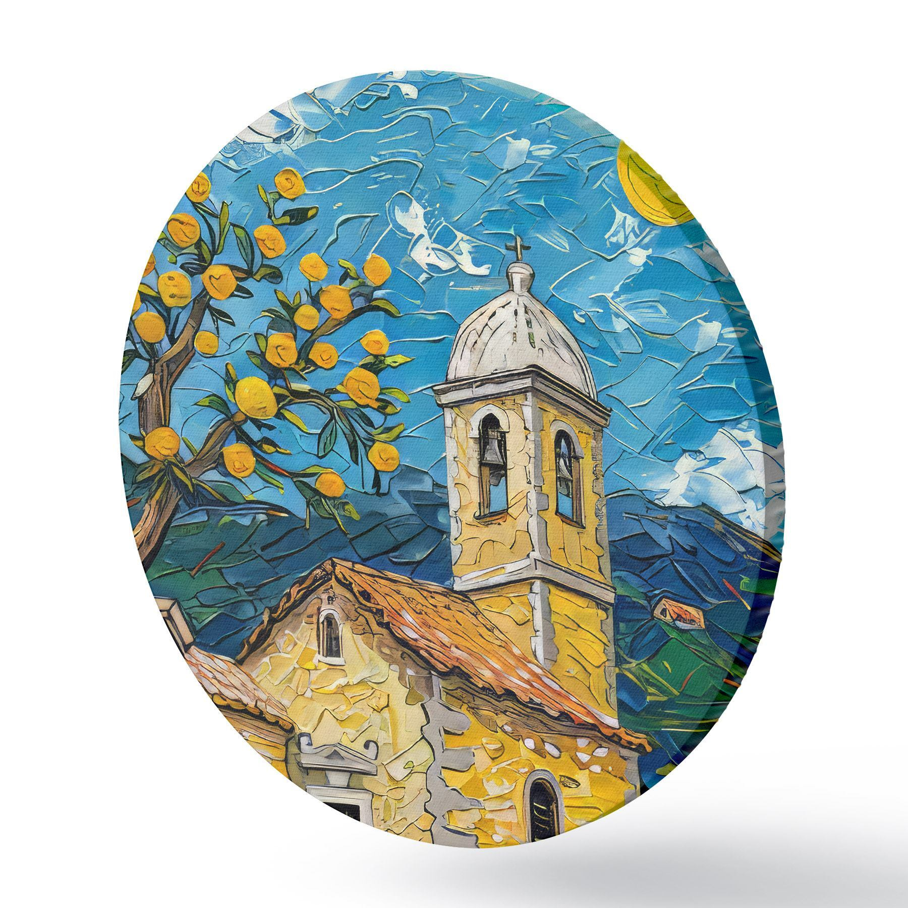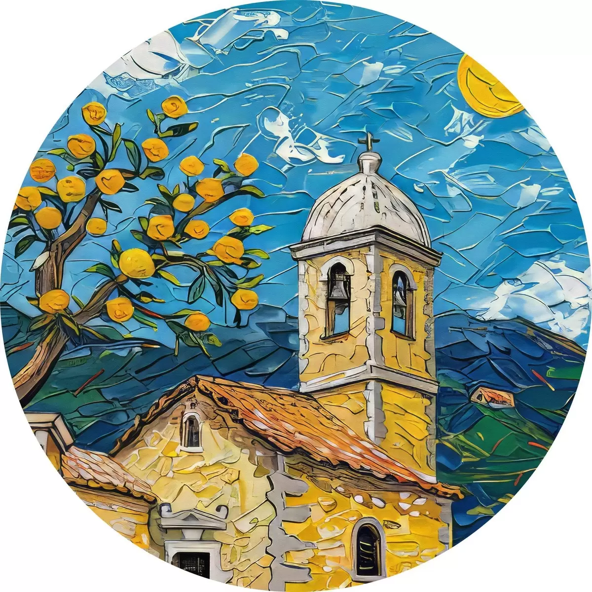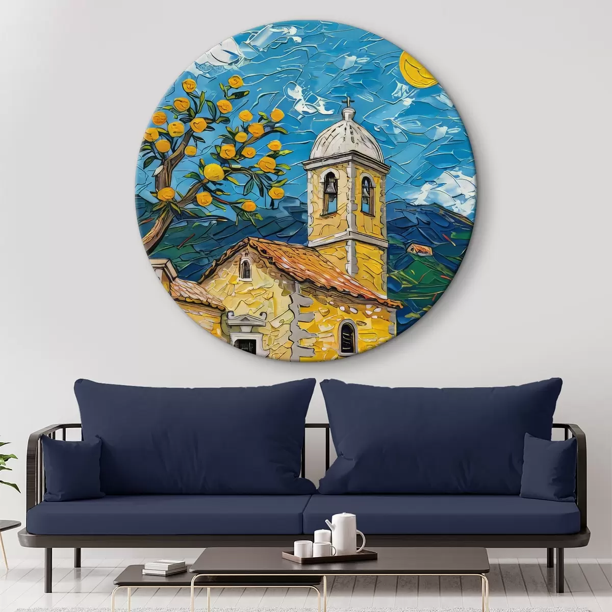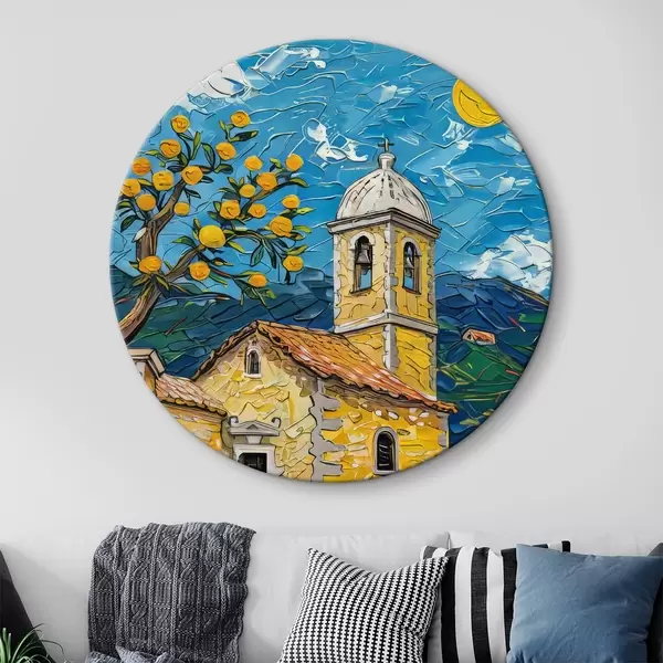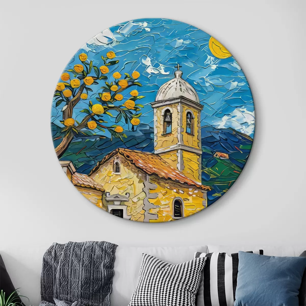 Ronde schilderijen Simone Wunderlich: Frans dorp in indrukwekkend avondlicht r39656