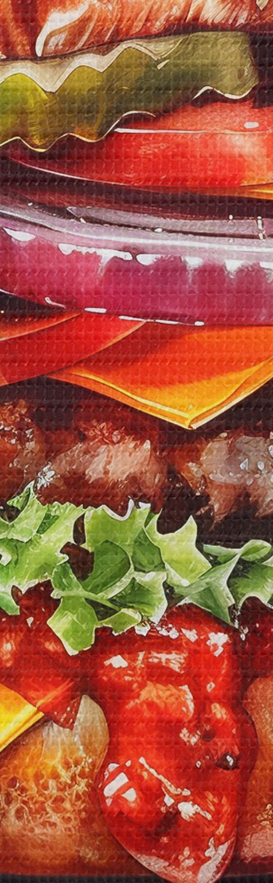 Ronde schilderijen Smakelijke hamburger met vlees, bloemen, aquarel, voedselkunst r39699