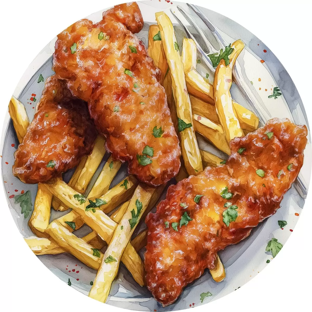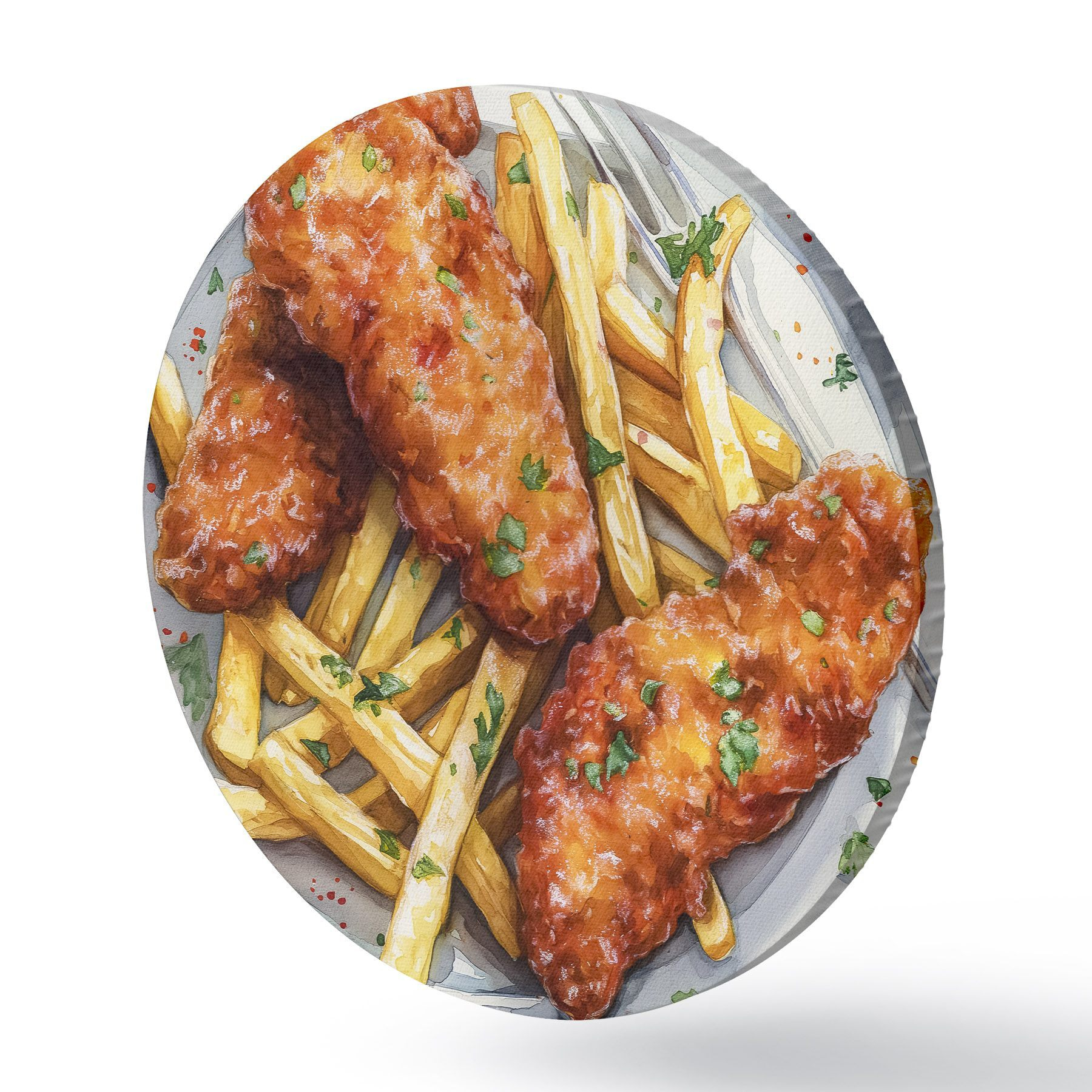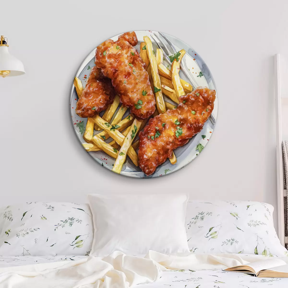Ronde schilderijen Waterverfvoedselkunst, frietjes met geroosterde kip, heerlijk r39708
