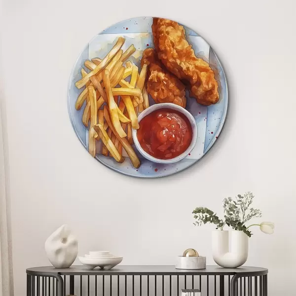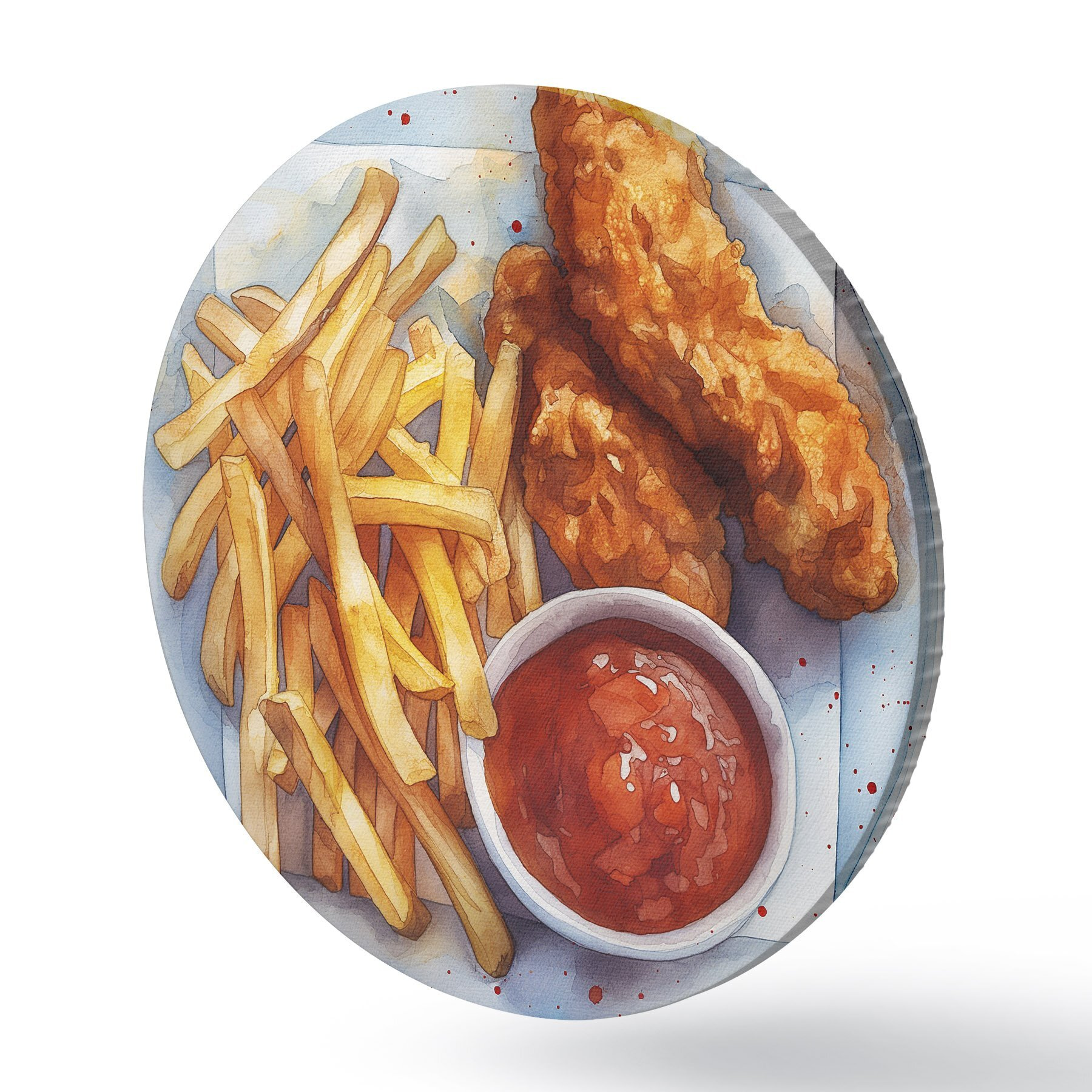 Ronde schilderijen Waterverfstraatvoedsel, frietjes met geroosterde kip, heerlijk r39709