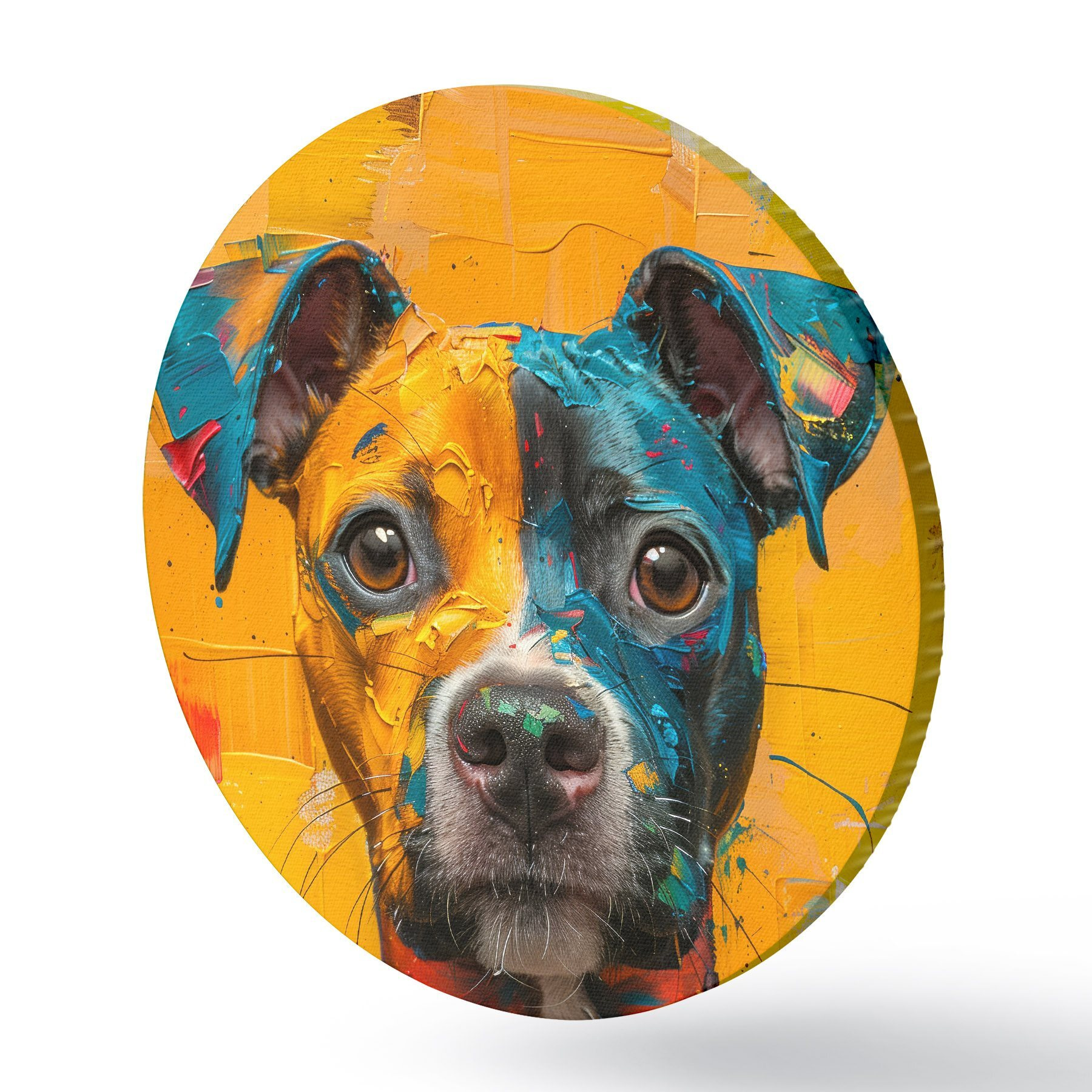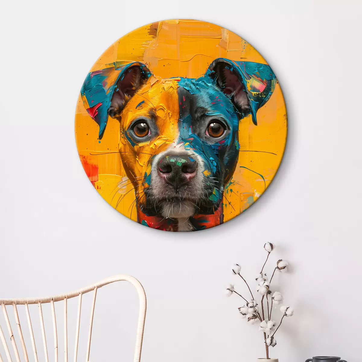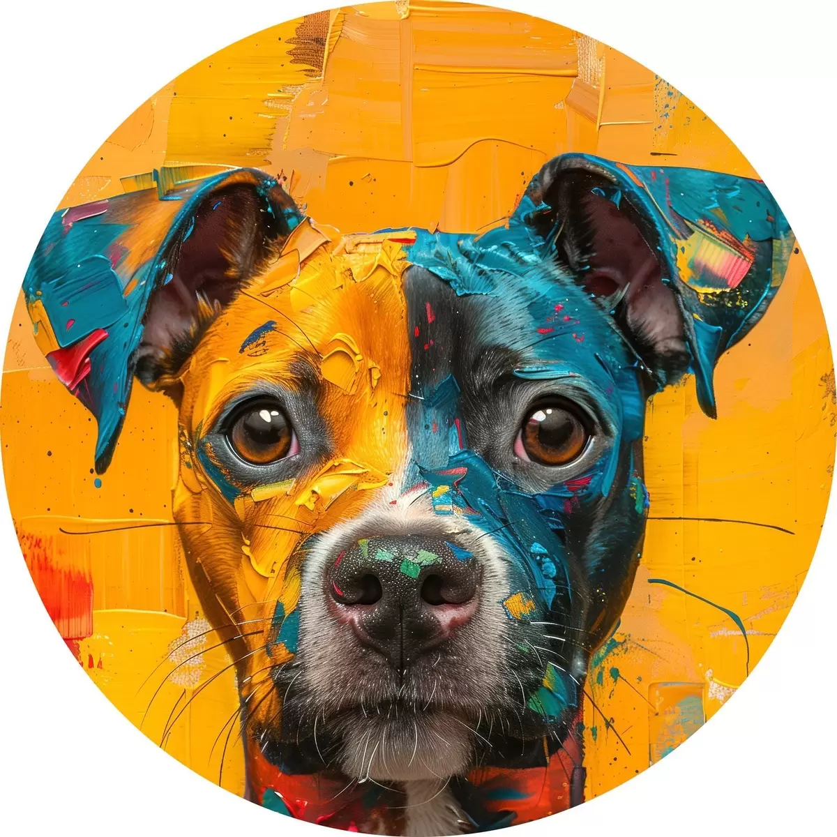 Ronde schilderijen Portret van een Pitbull met gele en blauwe olieverfstreken r39722