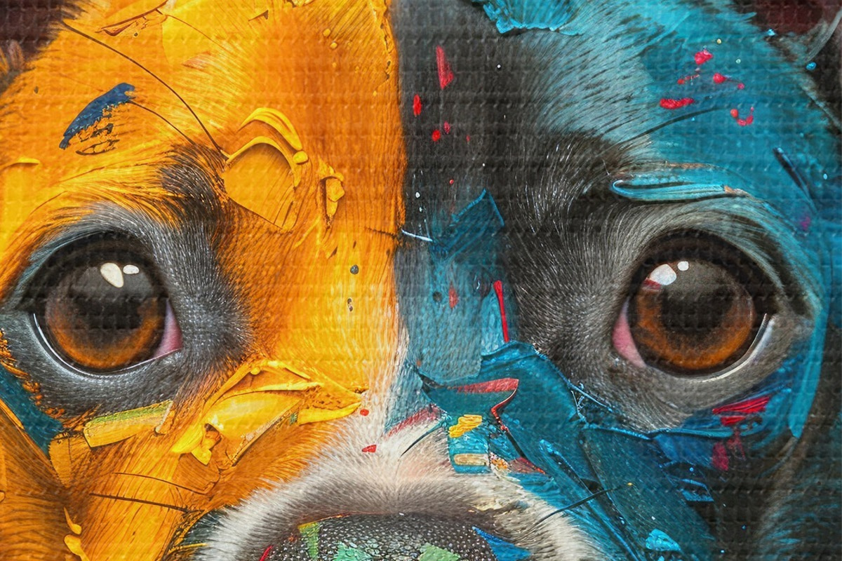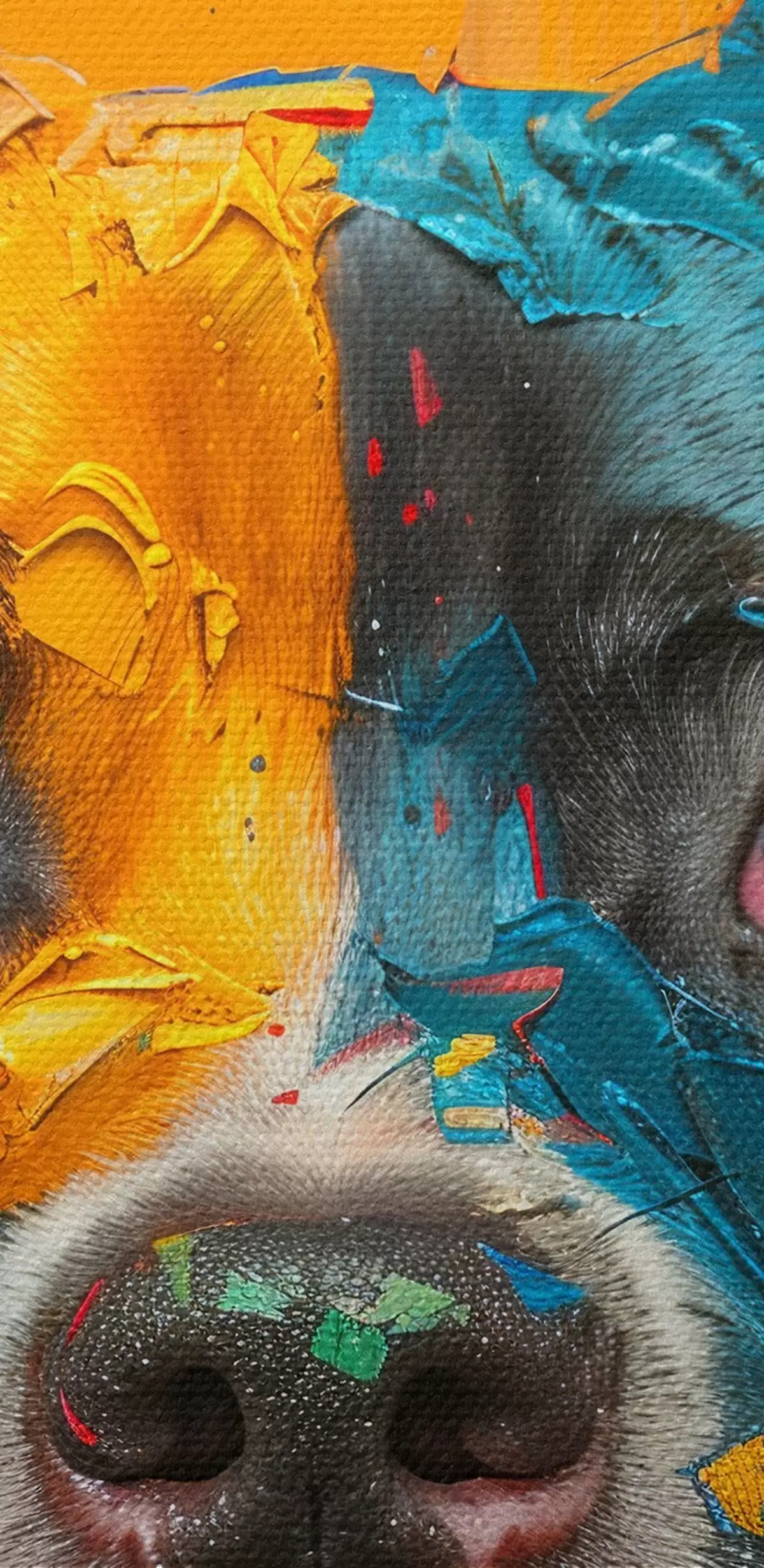 Afbeelding Portret van een Pitbull met gele en blauwe olieverfstreken Nr r39722