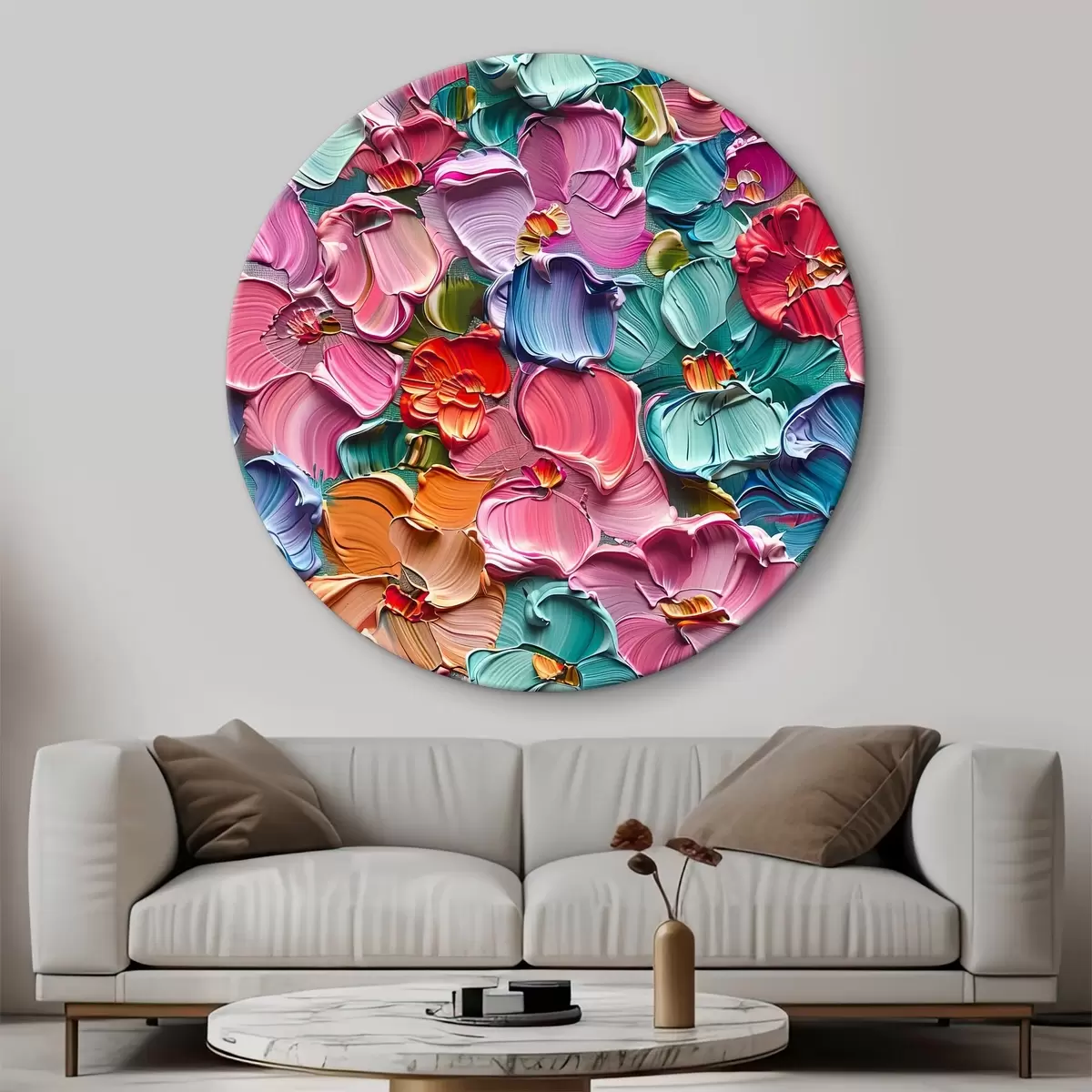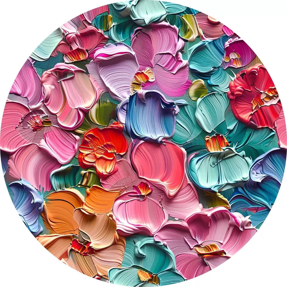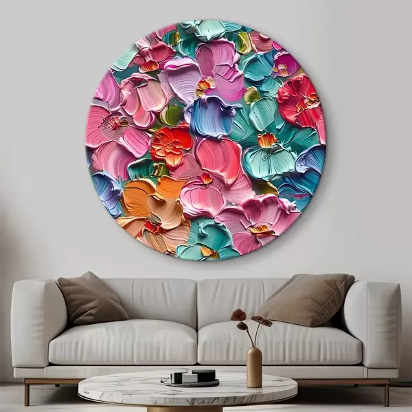 Ronde schilderijen Bloemen acrylcompositie met penseelstreken" r39736