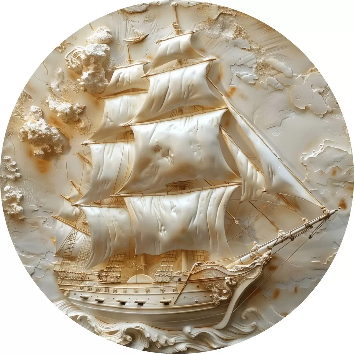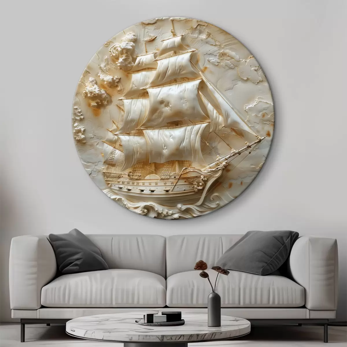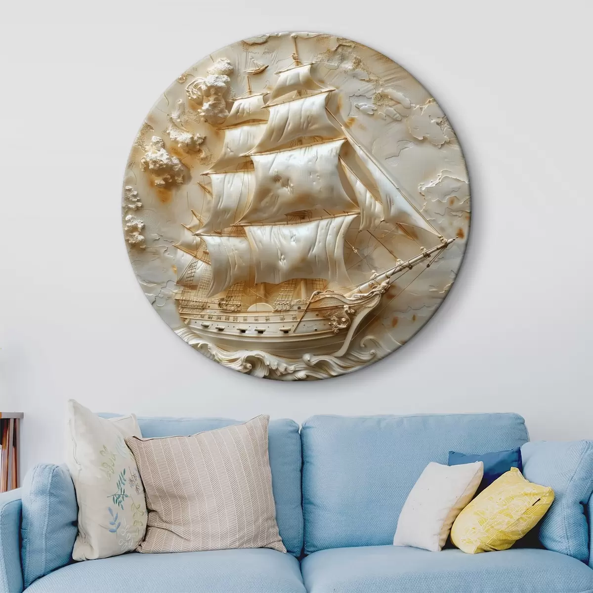 Ronde schilderijen Bas-reliëf van een schip dat op zee vaart r39757