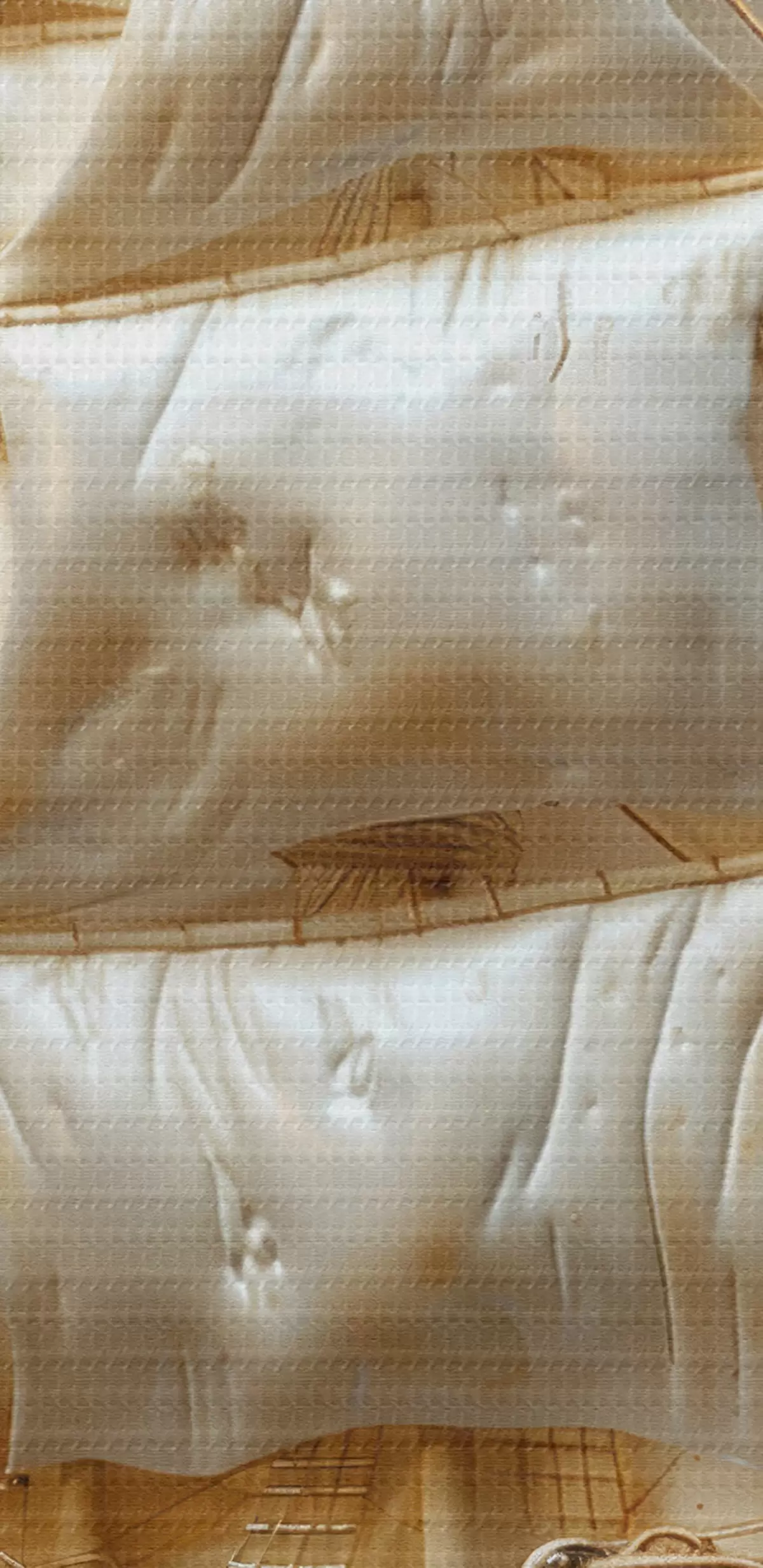 Om het doek op te spannen op spielatten zonder de afbeelding te beschadigen, gebruiken we gespiegeld beeld.
