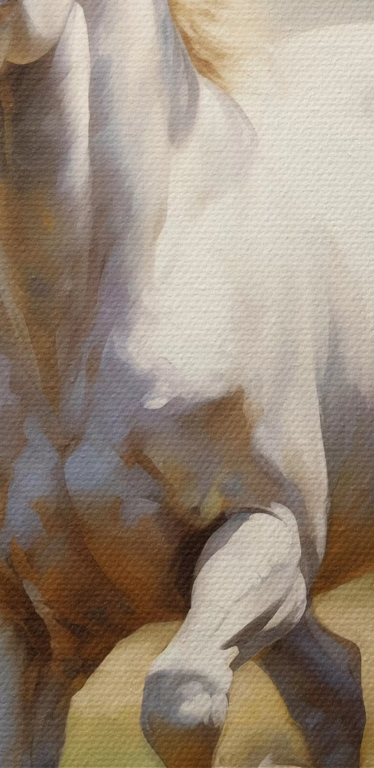 Afbeelding Wit paard dat over het olieverfschilderij van de weide galoppeert Nr r39818