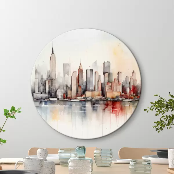 Ronde schilderijen Uitzicht op de stad New York, silhouetten bouwen, aquarel r39828