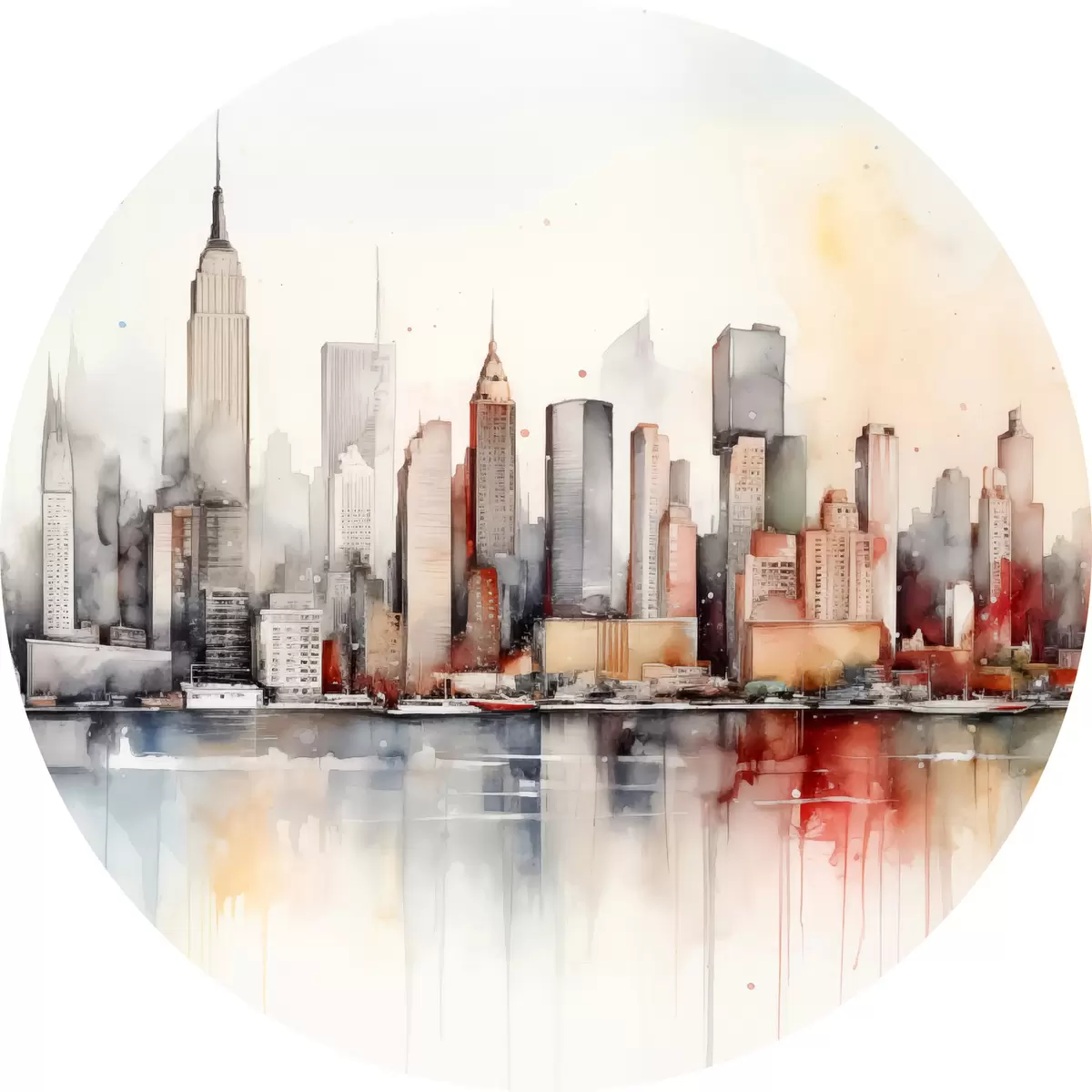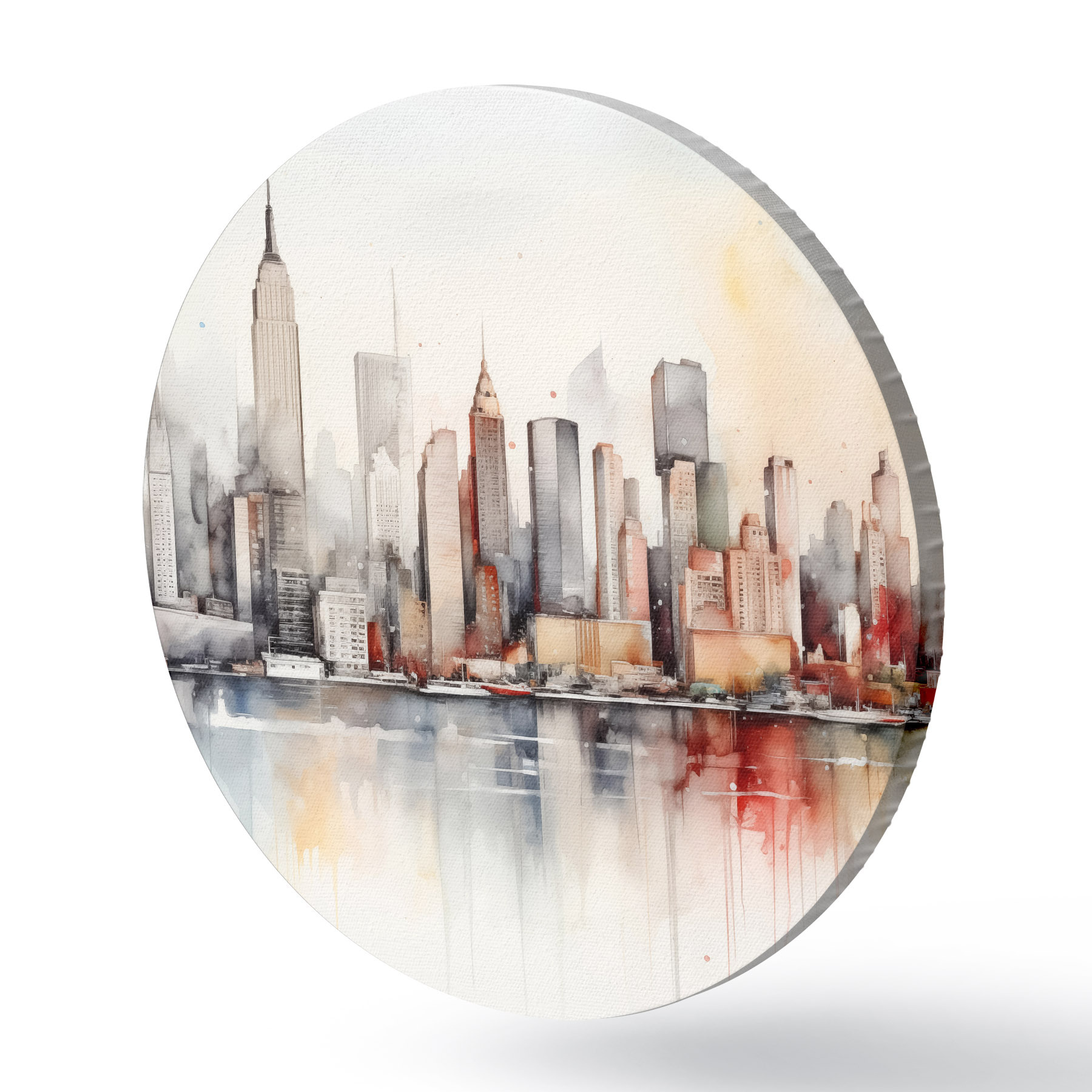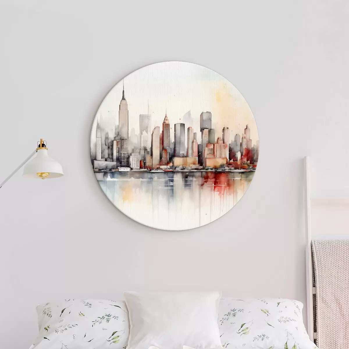 Ronde schilderijen Uitzicht op de stad New York, silhouetten bouwen, aquarel r39828