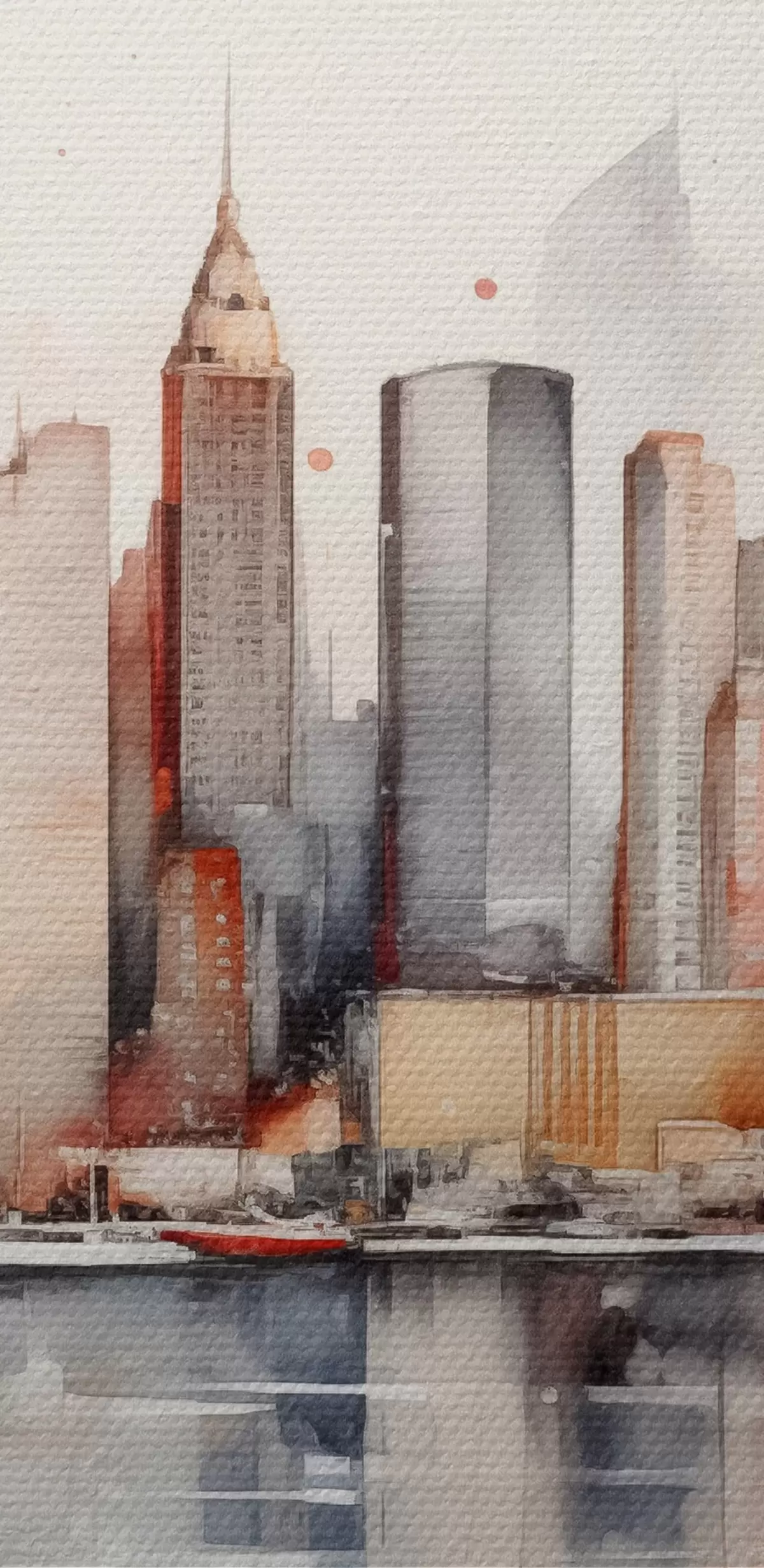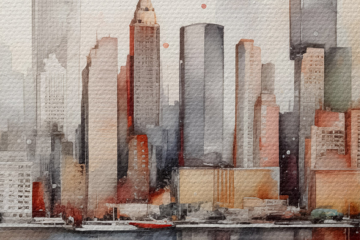 Afbeelding Uitzicht op de stad New York, silhouetten bouwen, aquarel Nr r39828