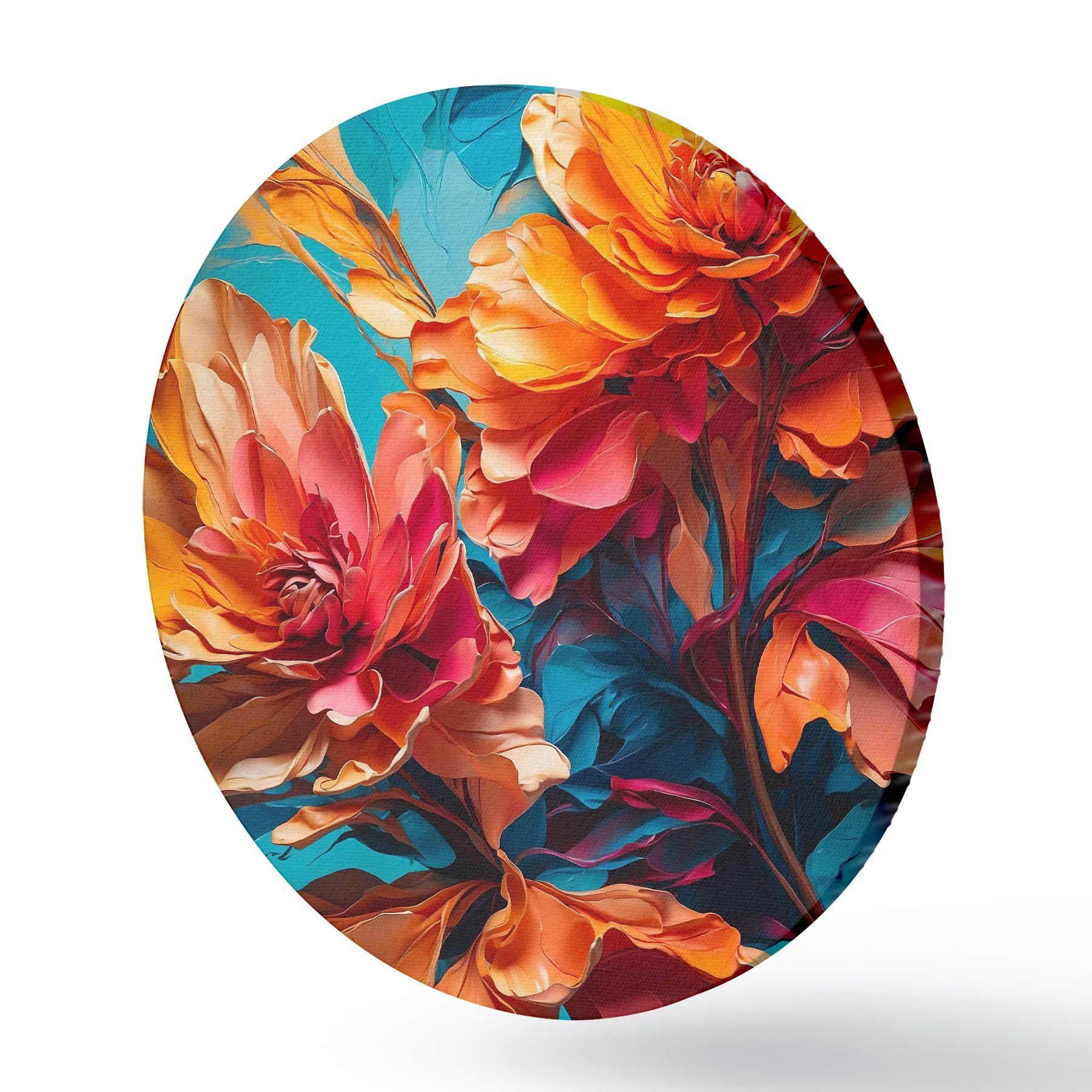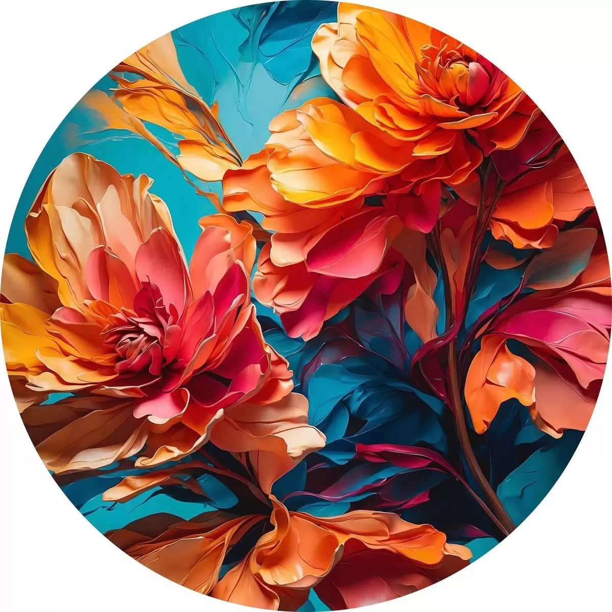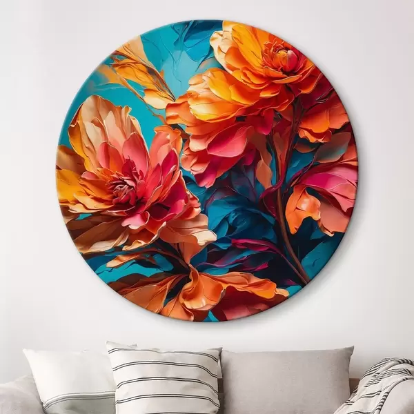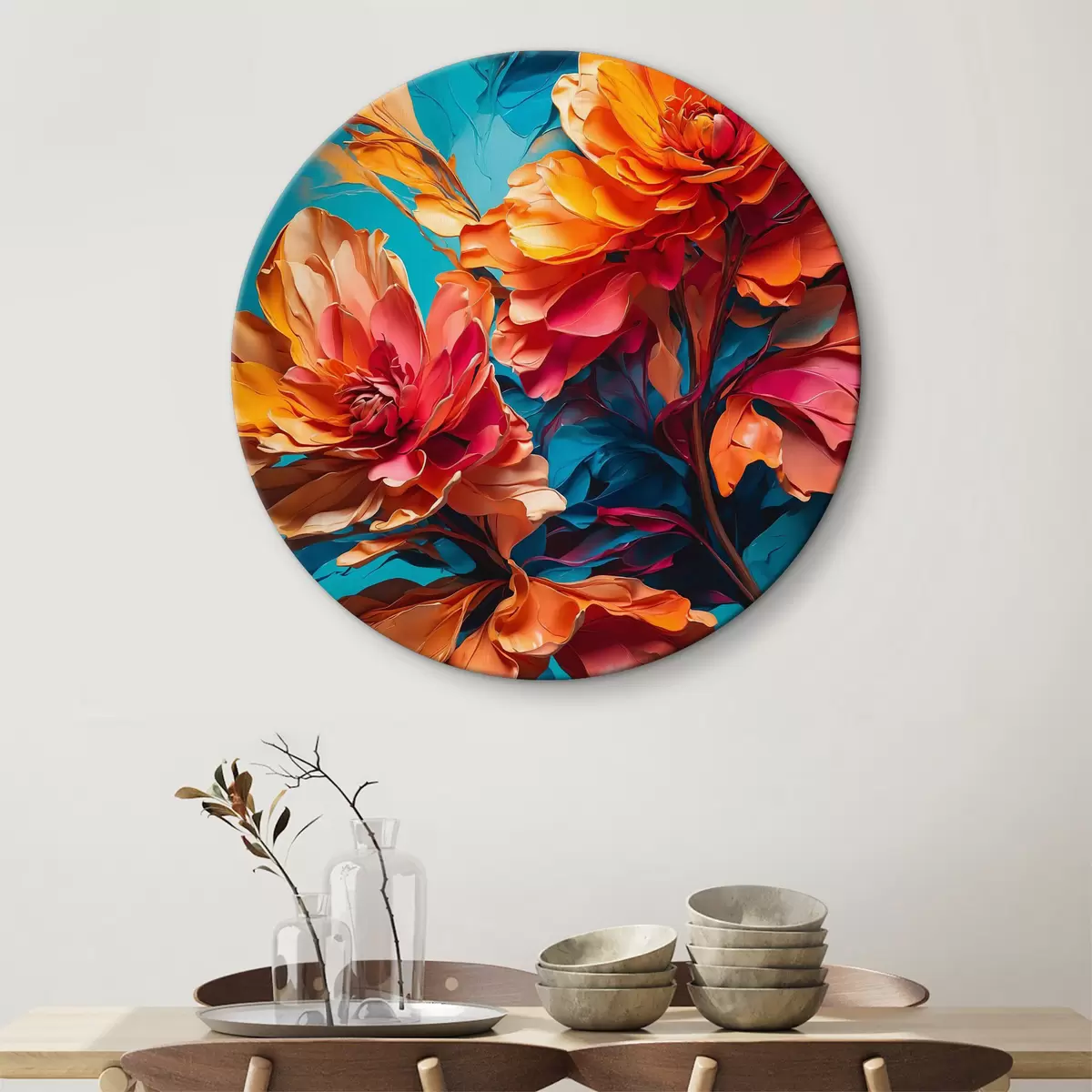 Ronde schilderijen Bloemen op een blauwe achtergrond r39847