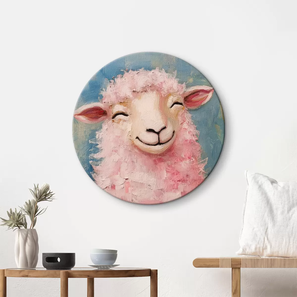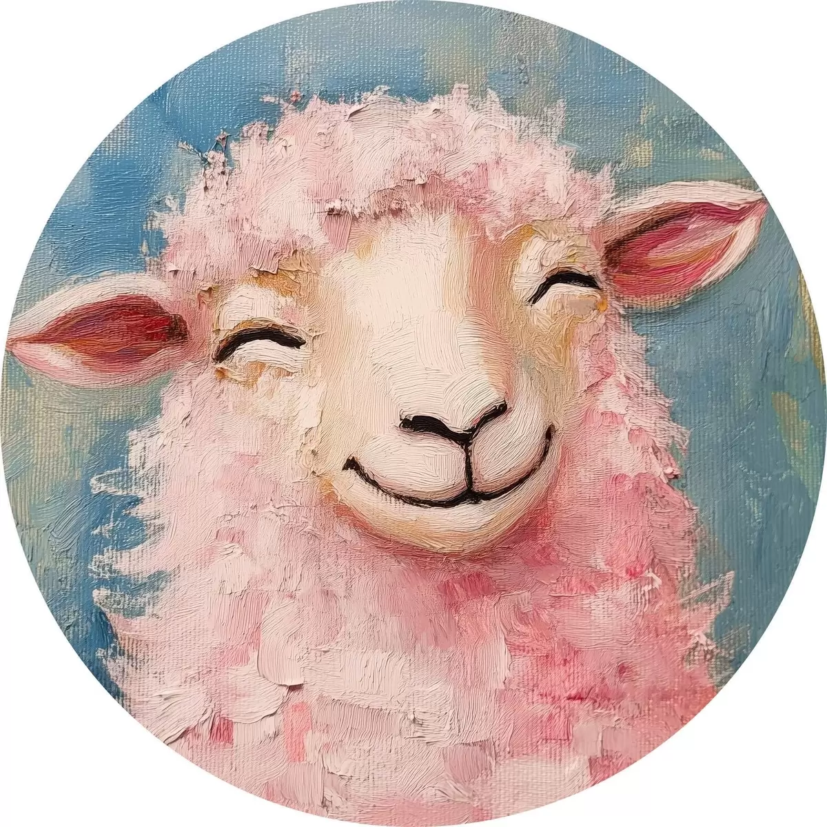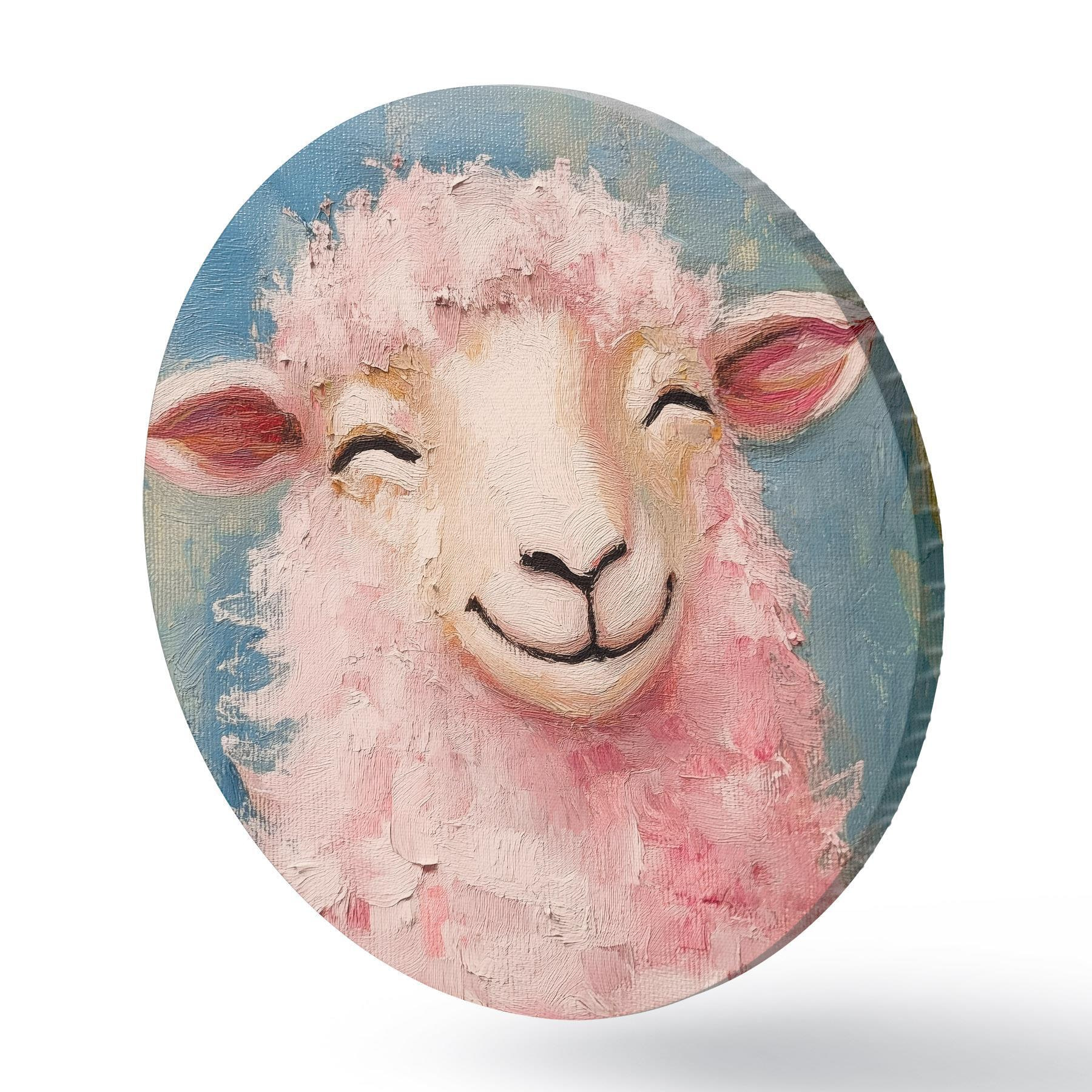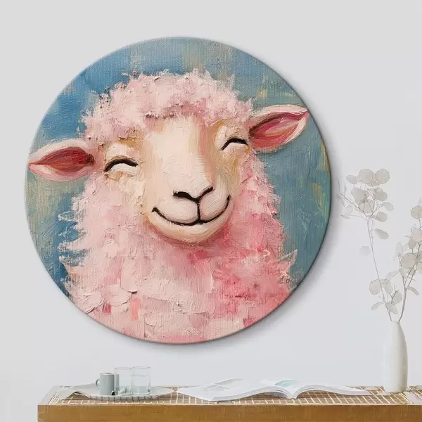 Ronde schilderijen Vrolijke ram met roze wol r39911