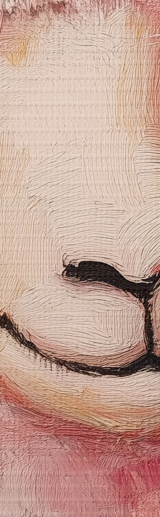 De fijne weving van draden op dit doek lijkt op het oppervlak van professionele schildersdoeken.