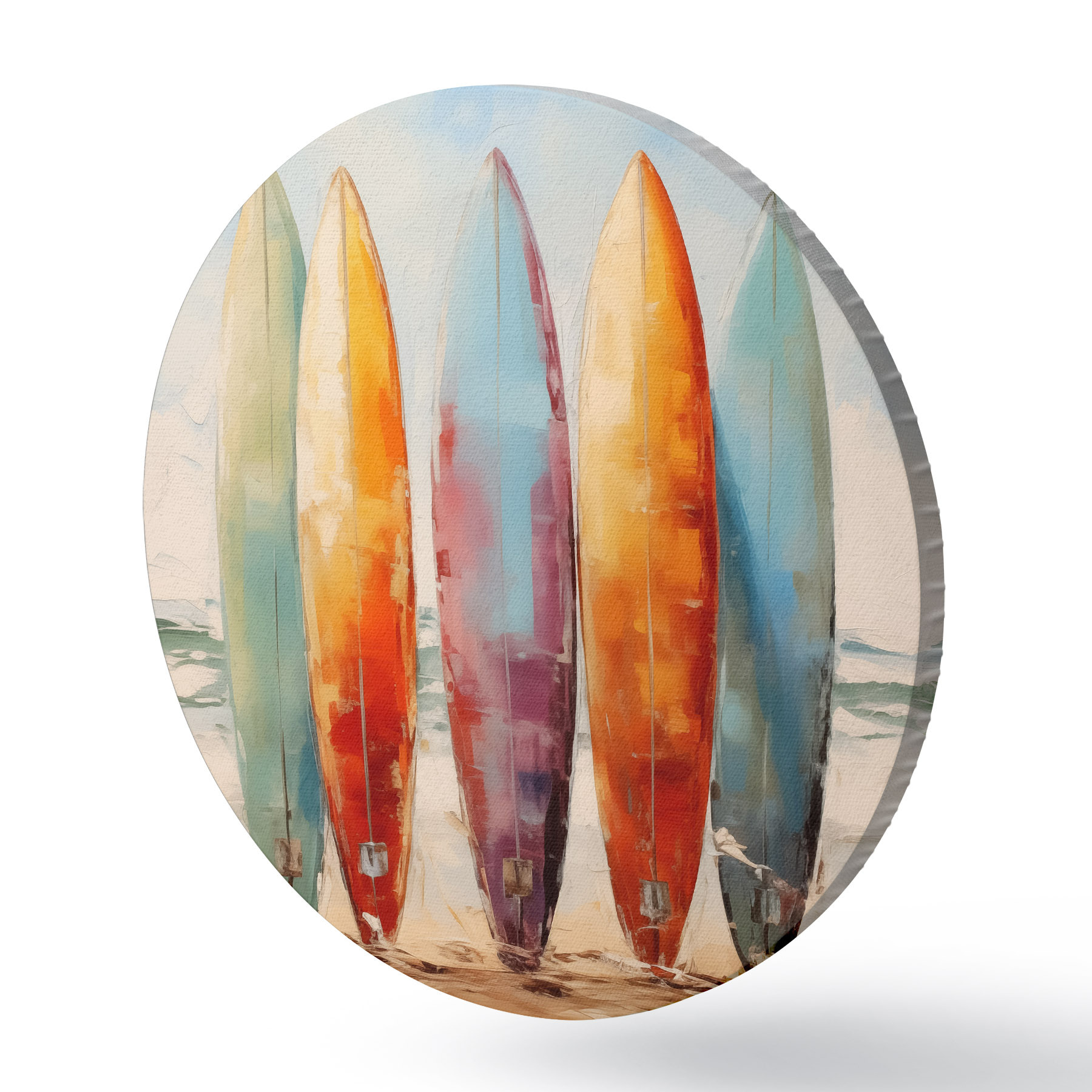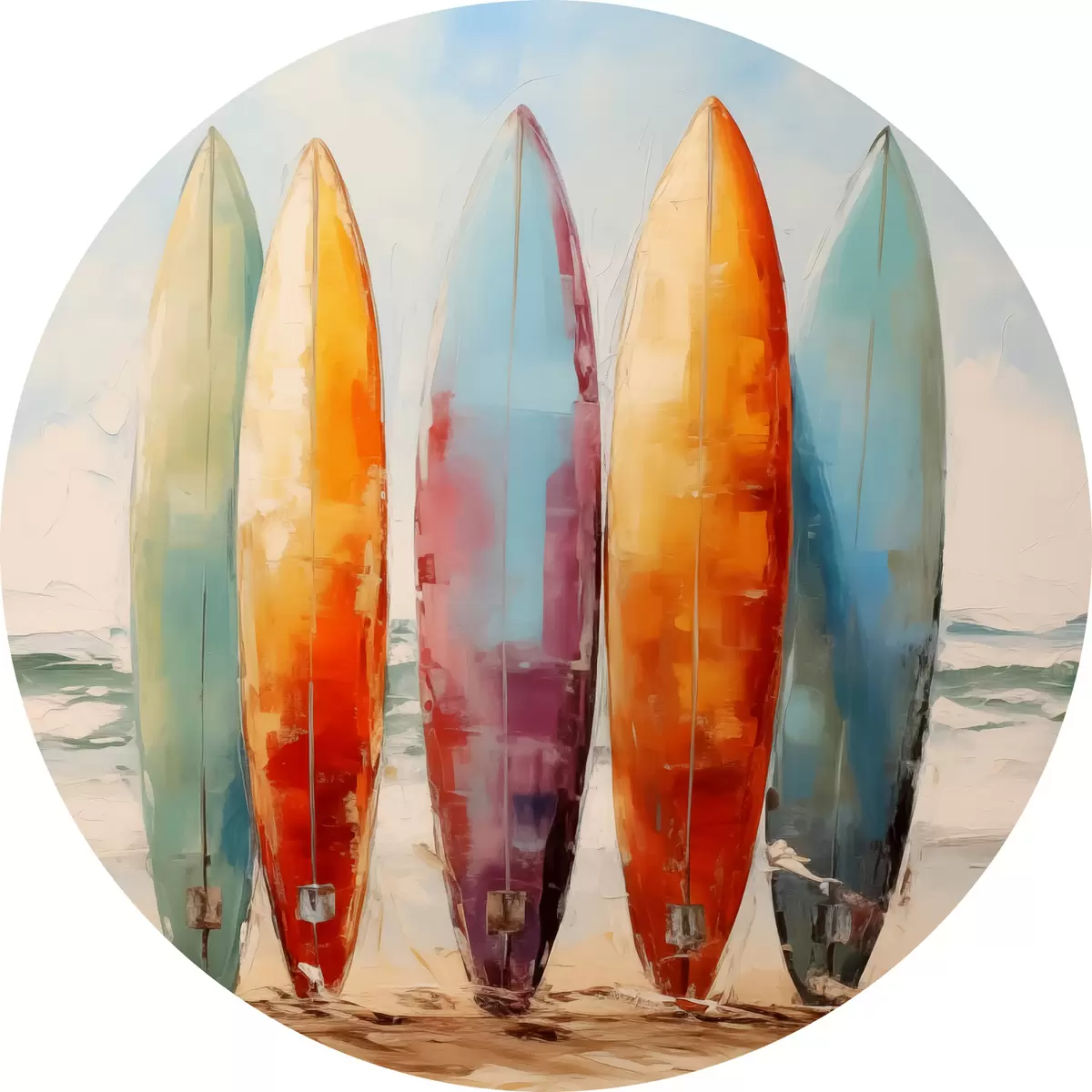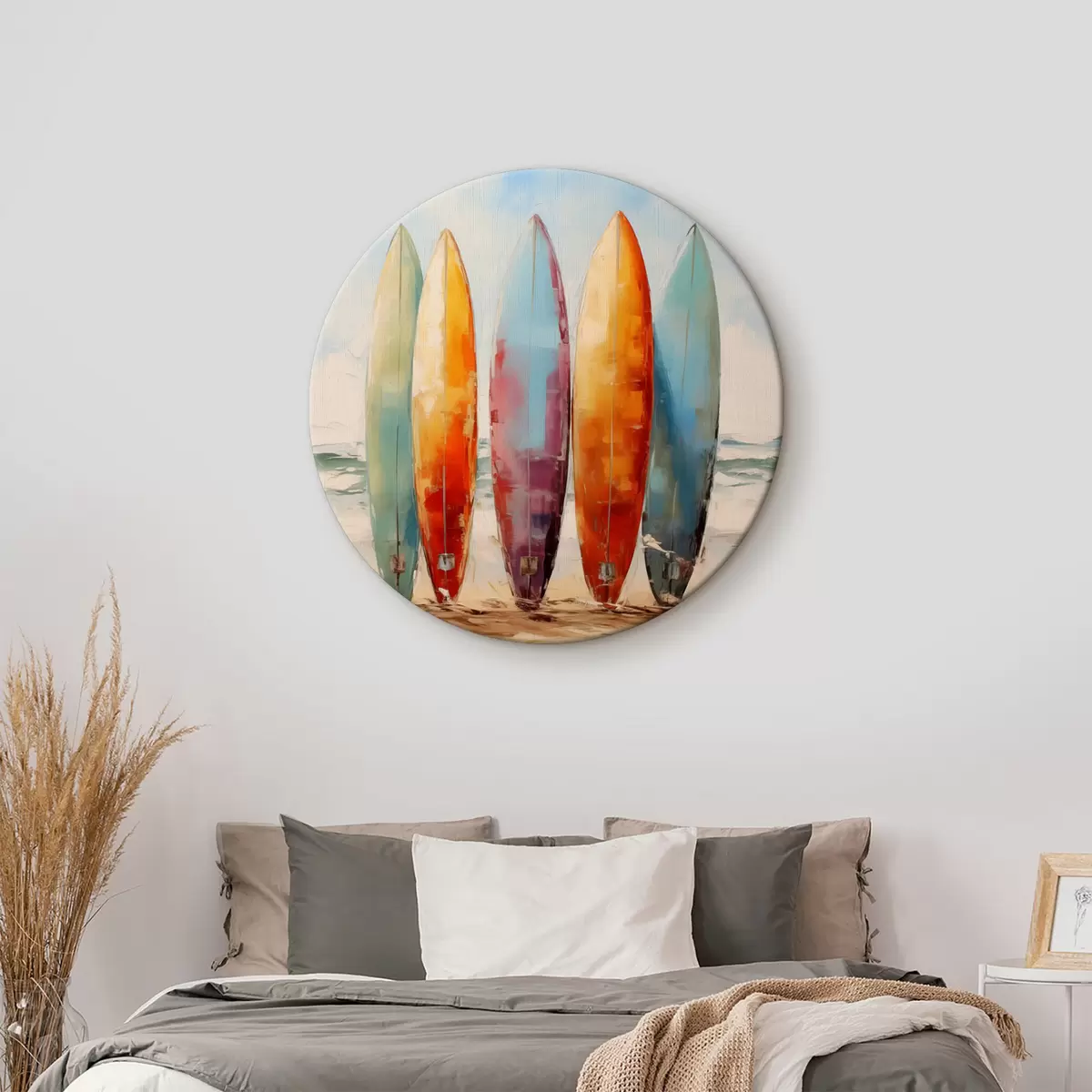 Ronde schilderijen Surfplanken op het strand schilderij r39938