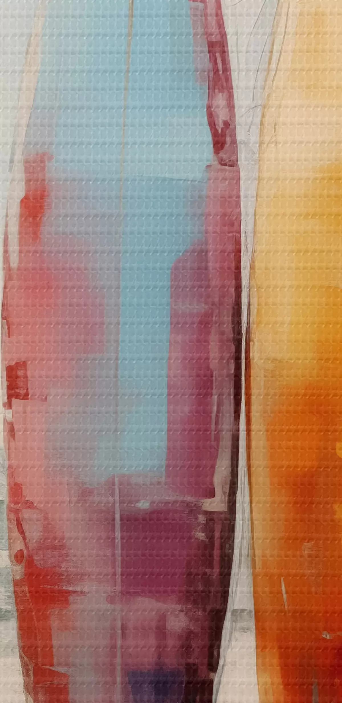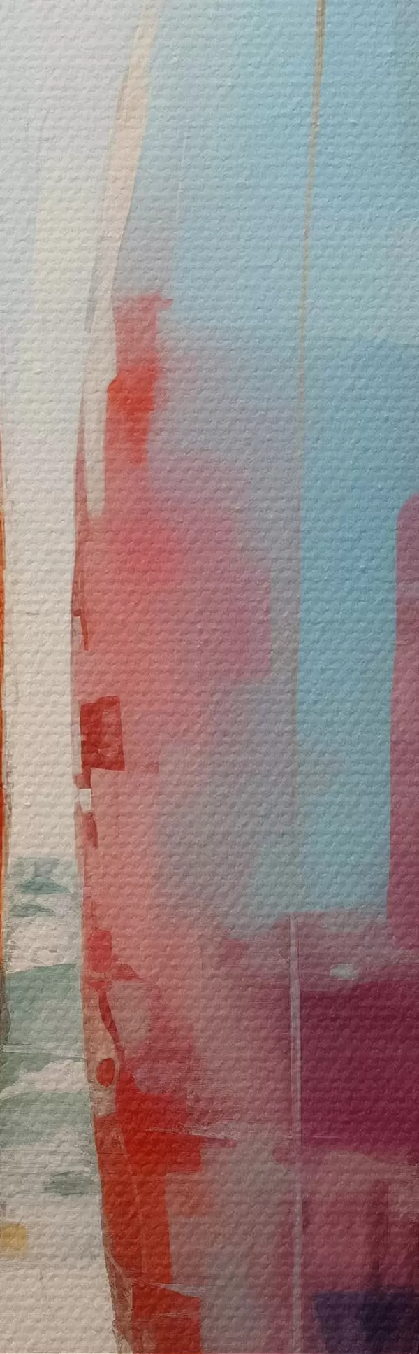 Het schilderij kan direct na ontvangst worden opgehangen. Het schilderij wordt opgespannen op een 2 cm breed houten spieraam.