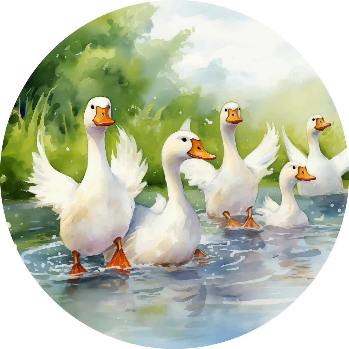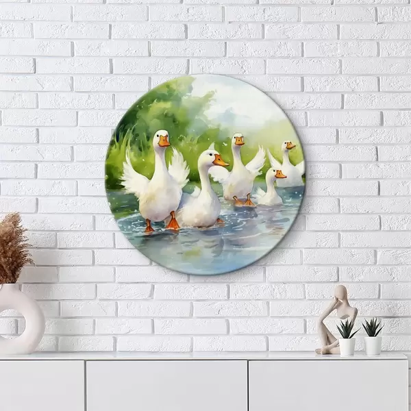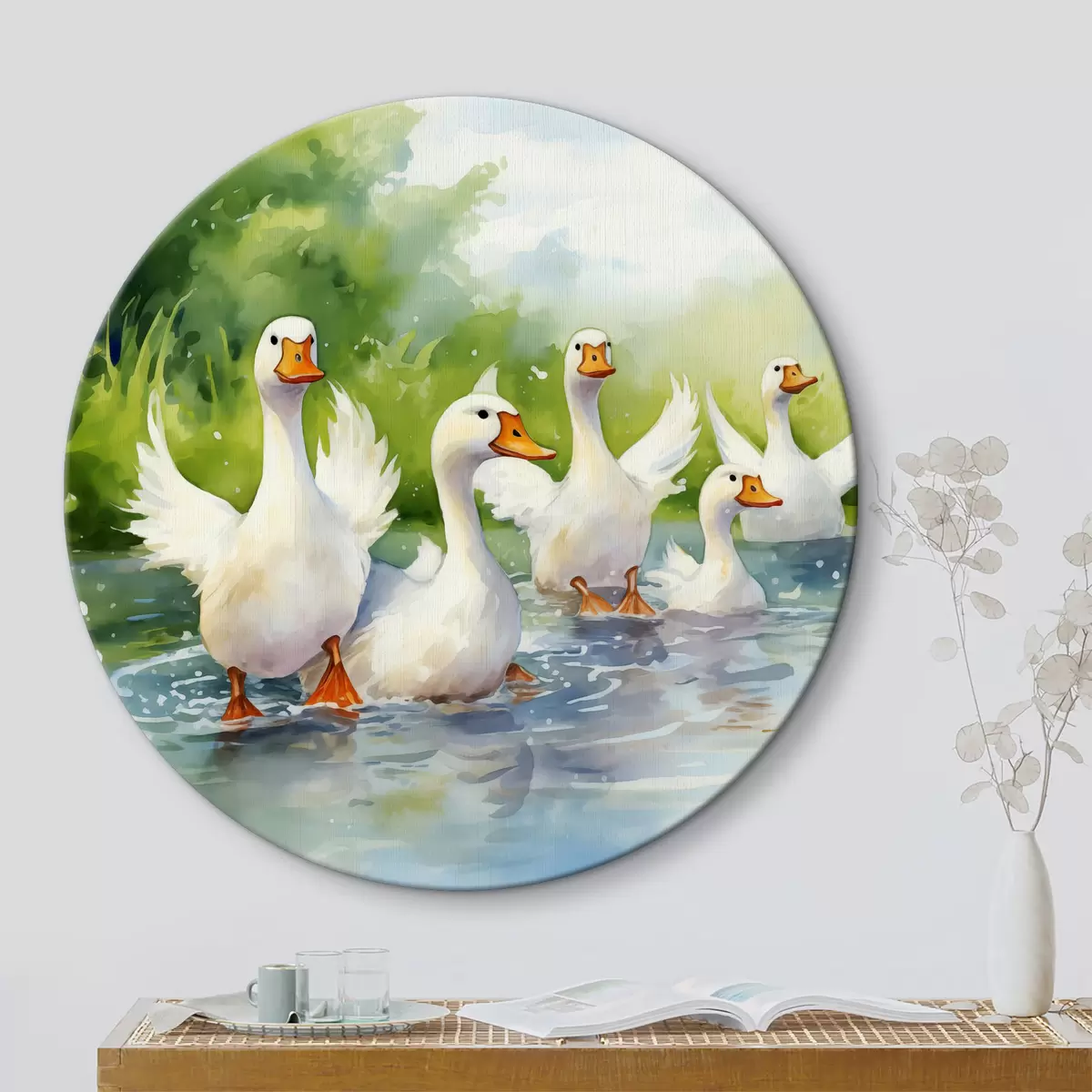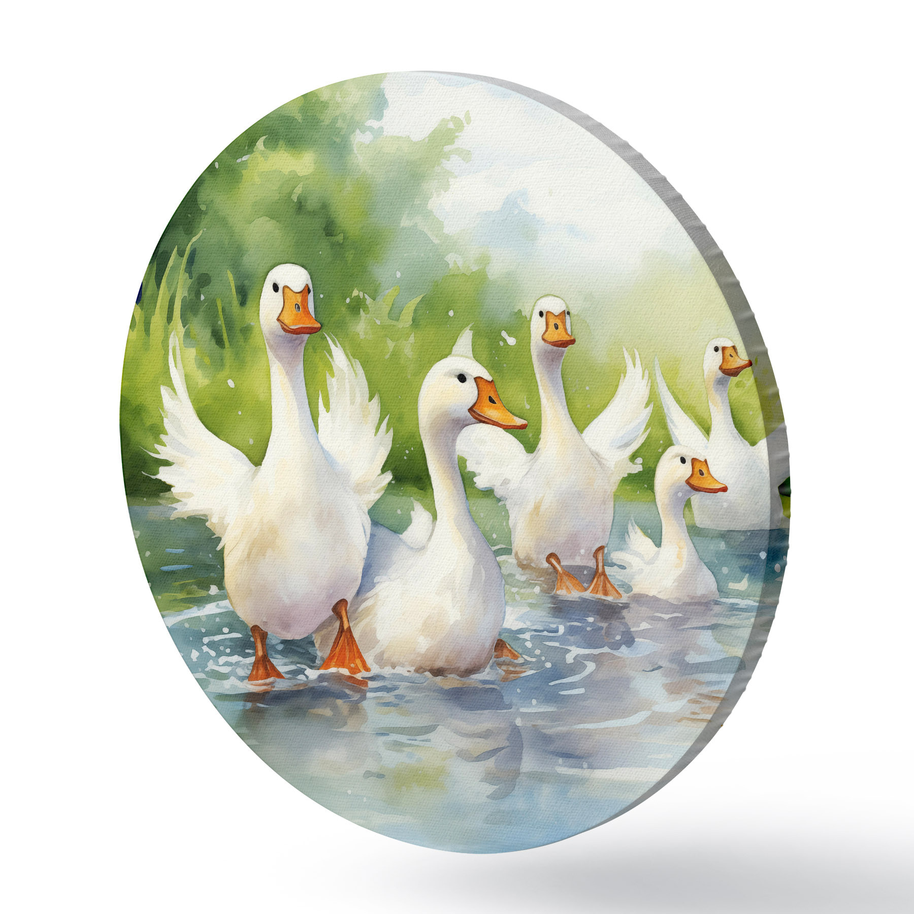 Ronde schilderijen Witte ganzen badend in een vijver aquarel schilderij r39939