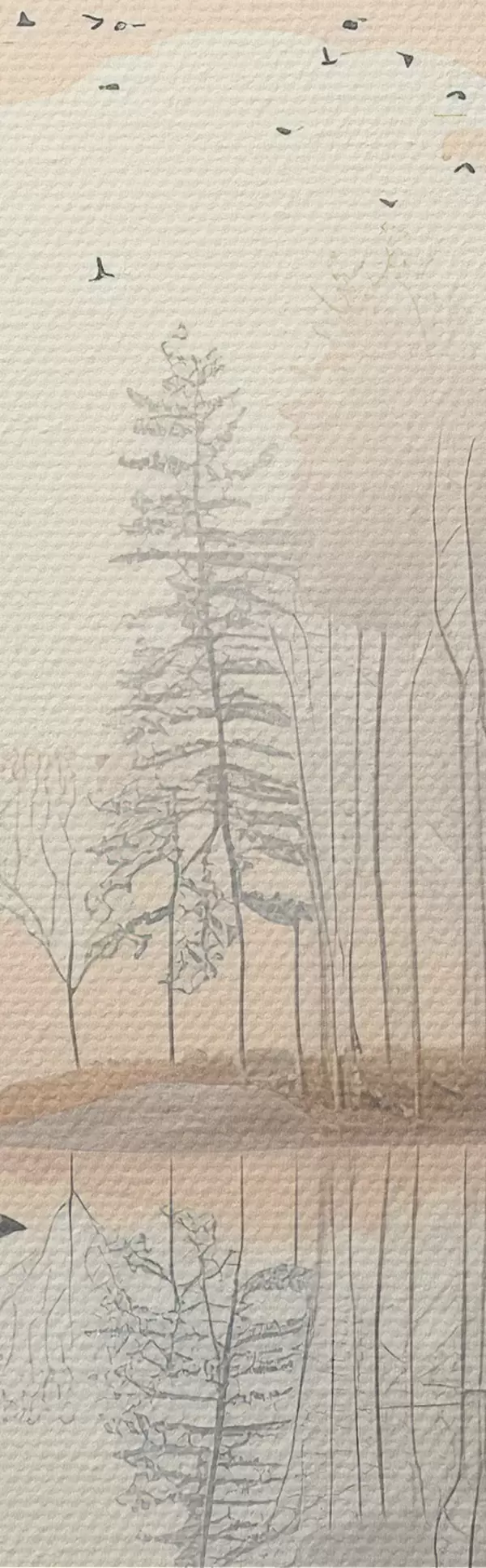 Afbeelding Prachtig natuurlandschap, vijver en bomen, wilde dieren, zachte pastelkleuren Nr r39980