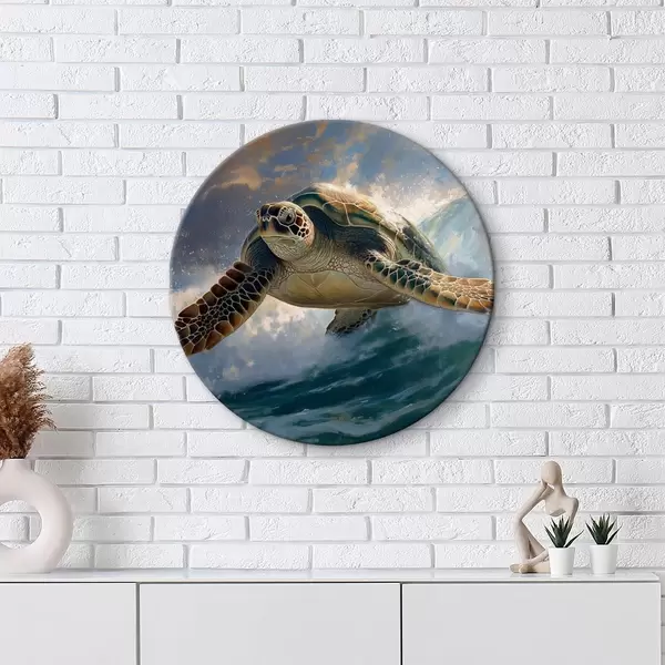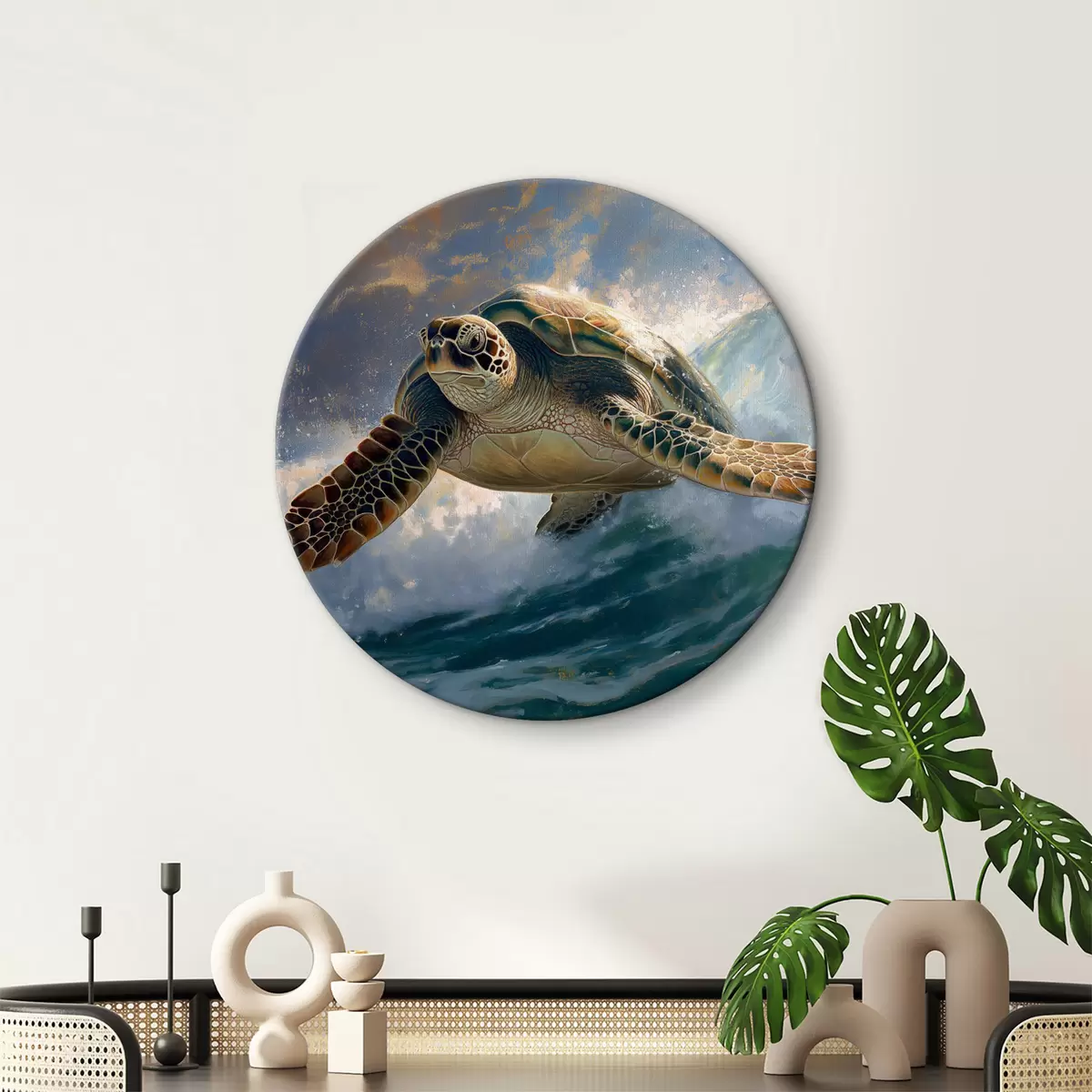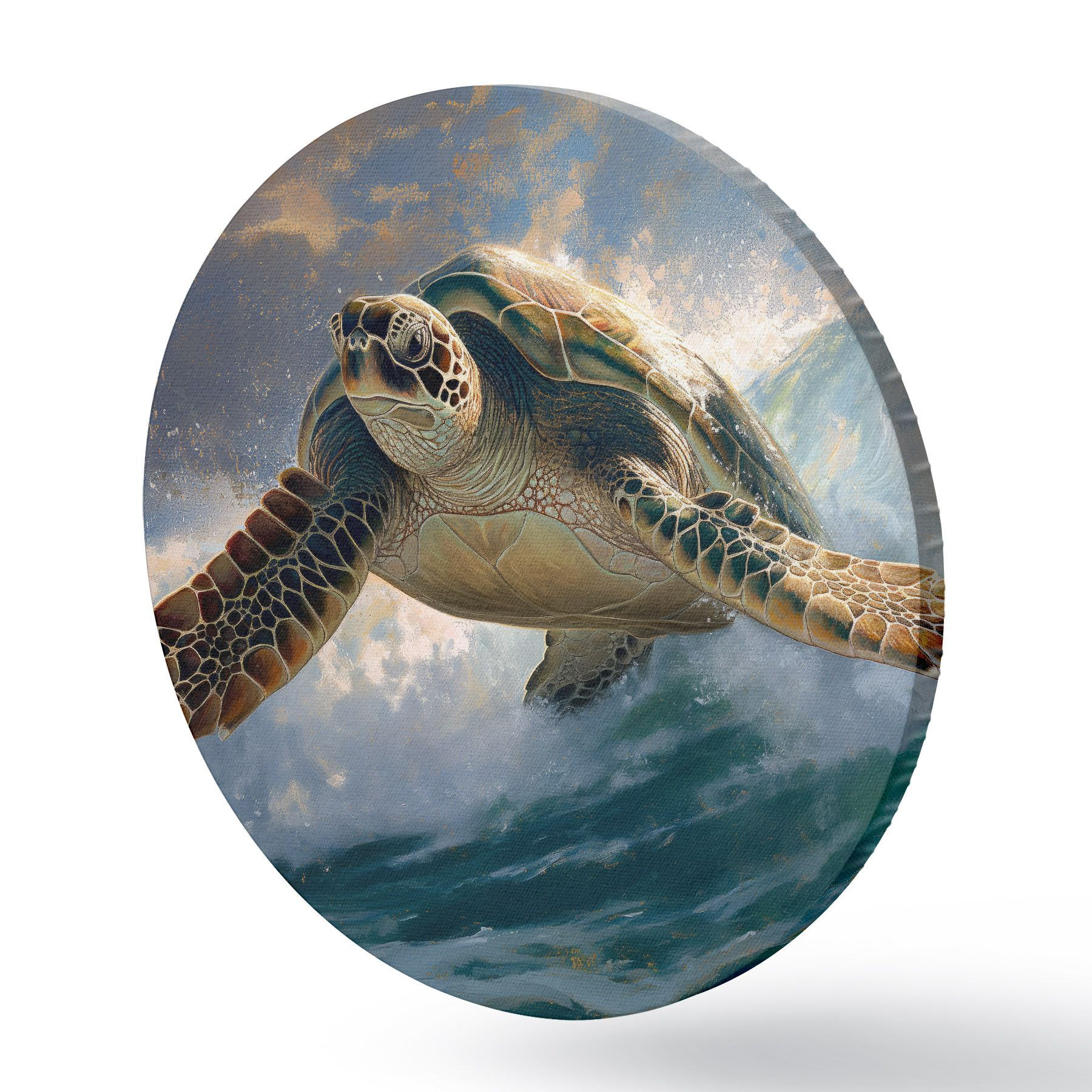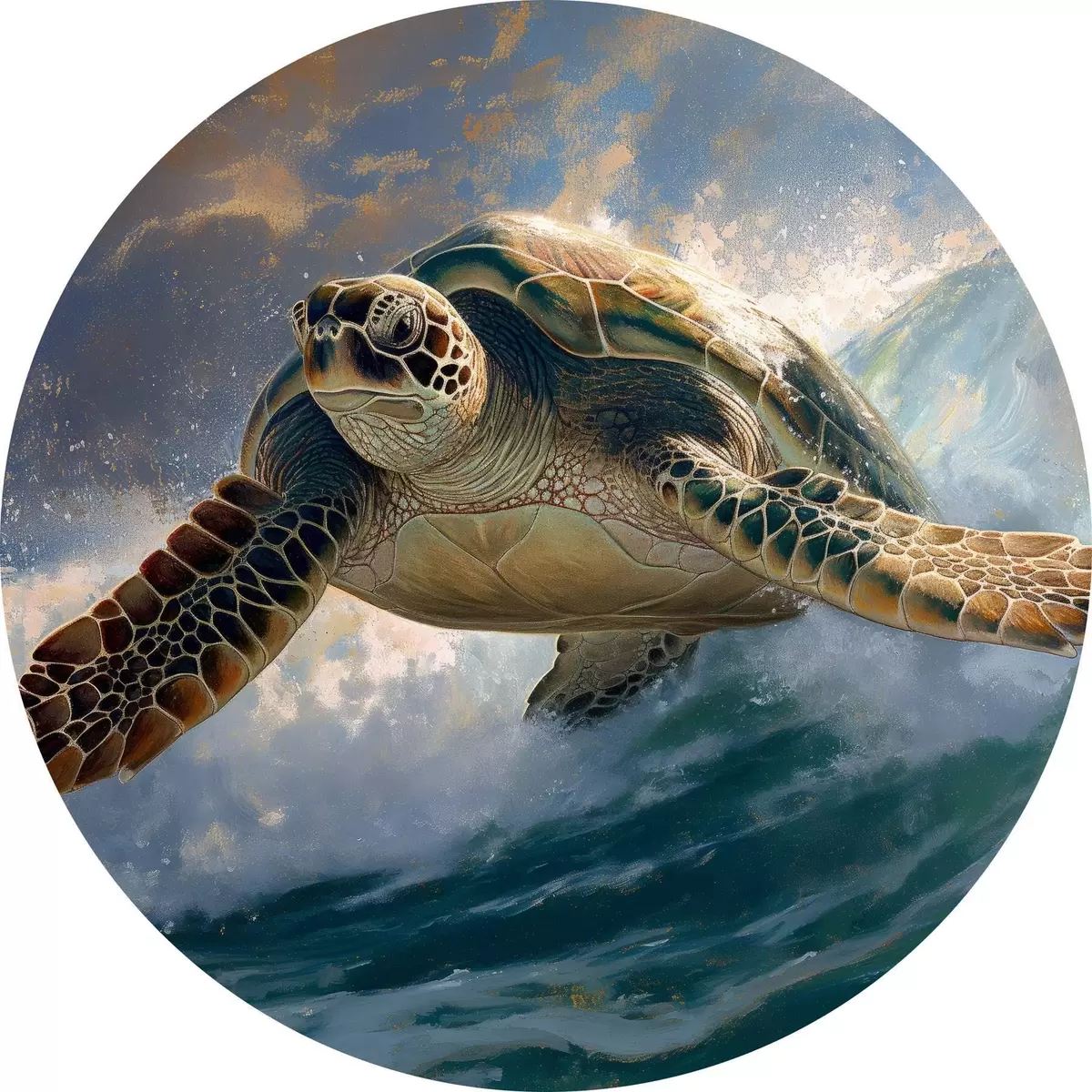 Ronde schilderijen Schildpad, water, groen, blauw r40001