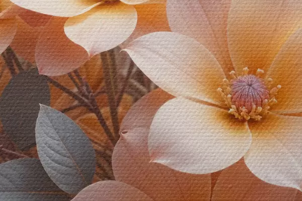 Afbeelding Tedere perzikkleurige dahliabloemen in volle bloei, met zachte bloemblaadjes tegen een wazige achtergrond Nr r40024