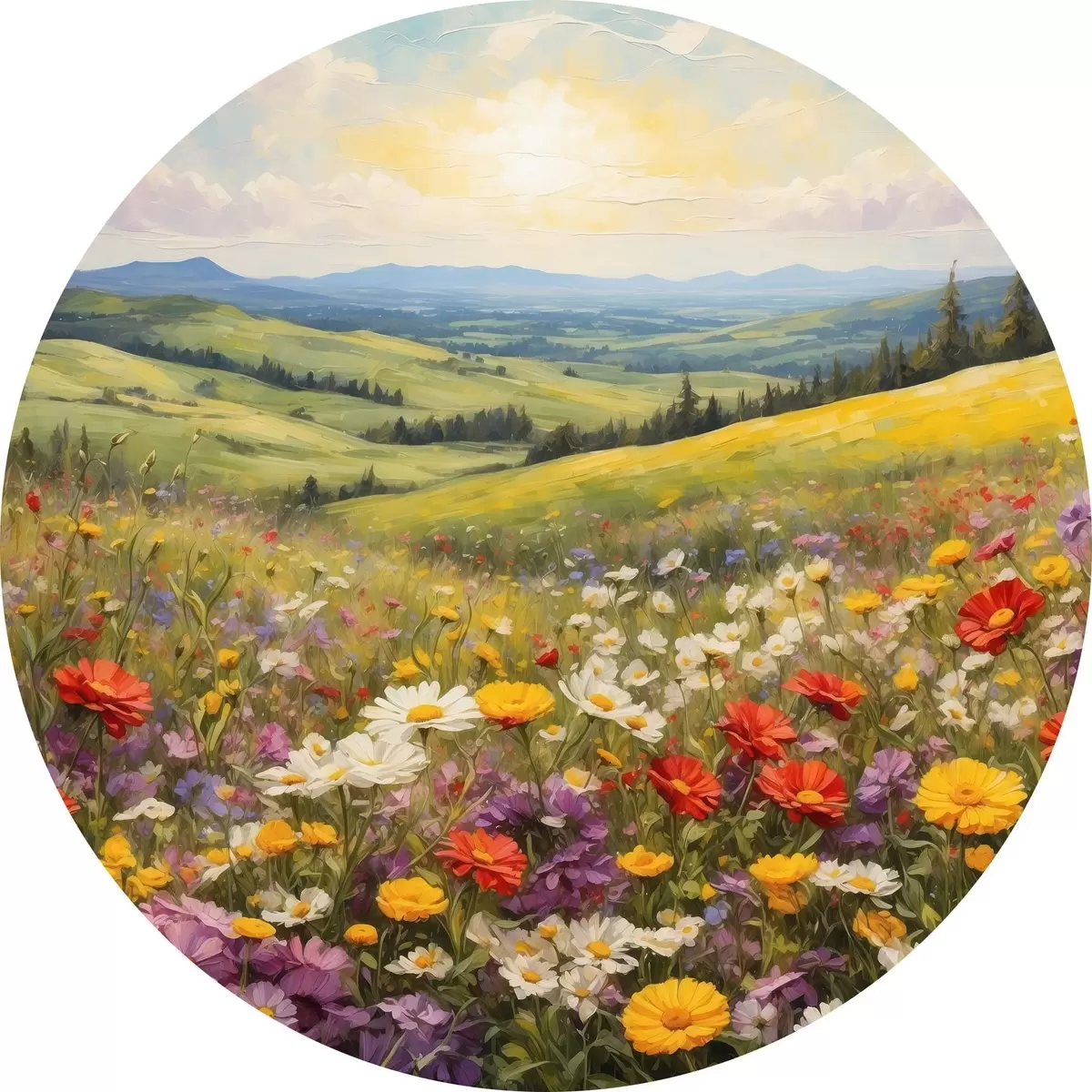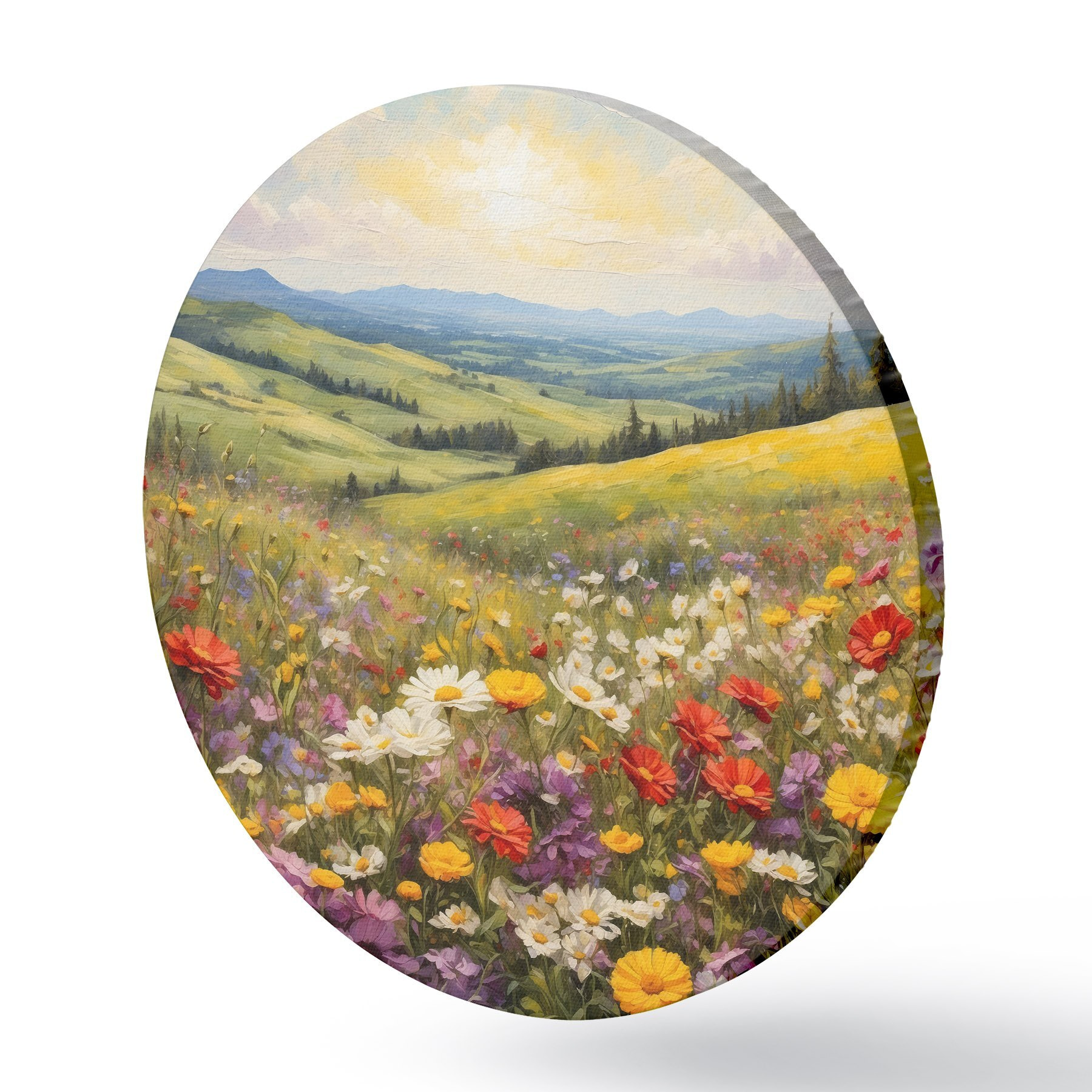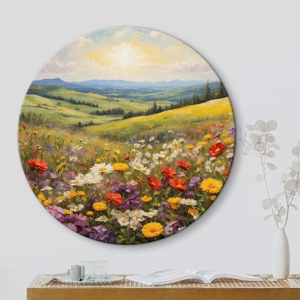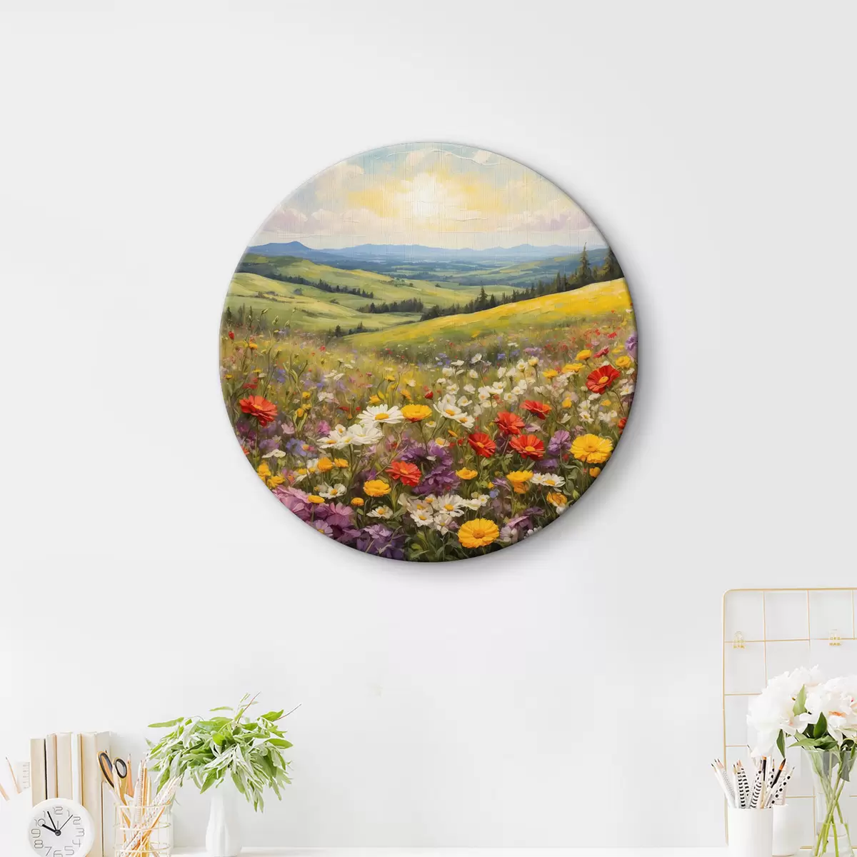 Ronde schilderijen Bloemenveld bij zonsondergang r40073