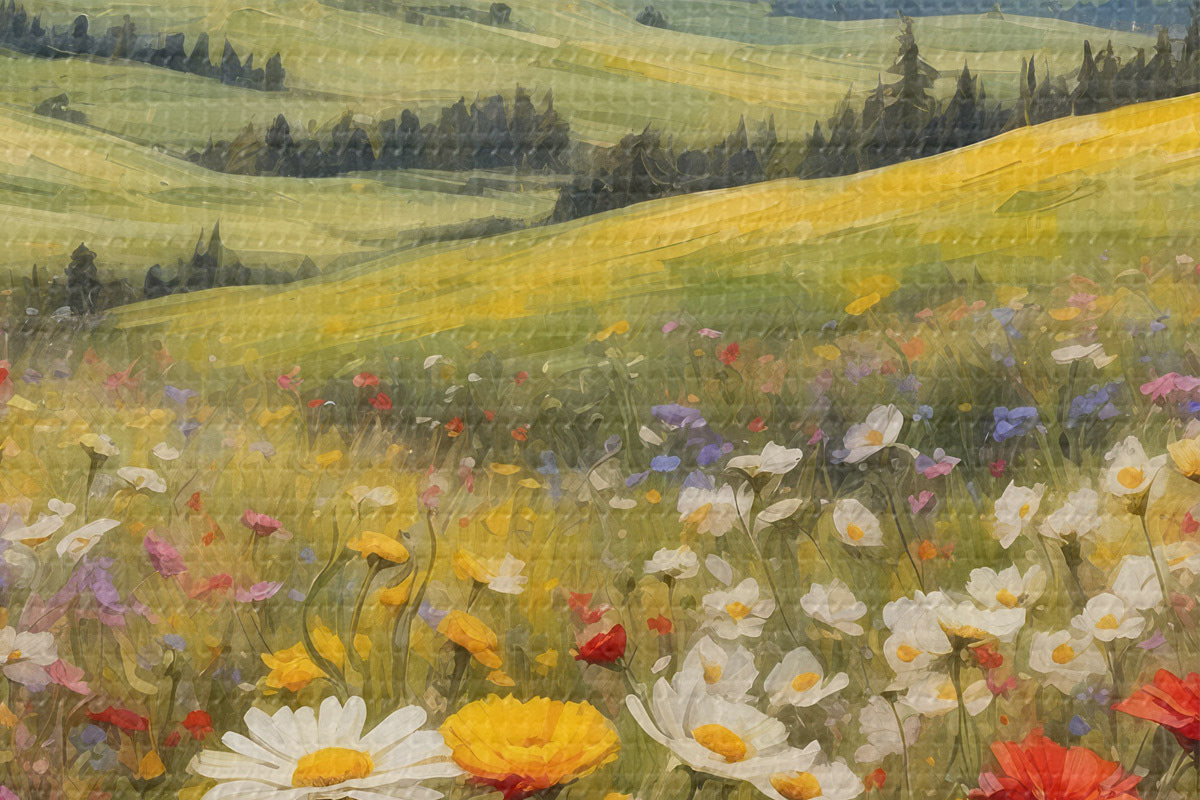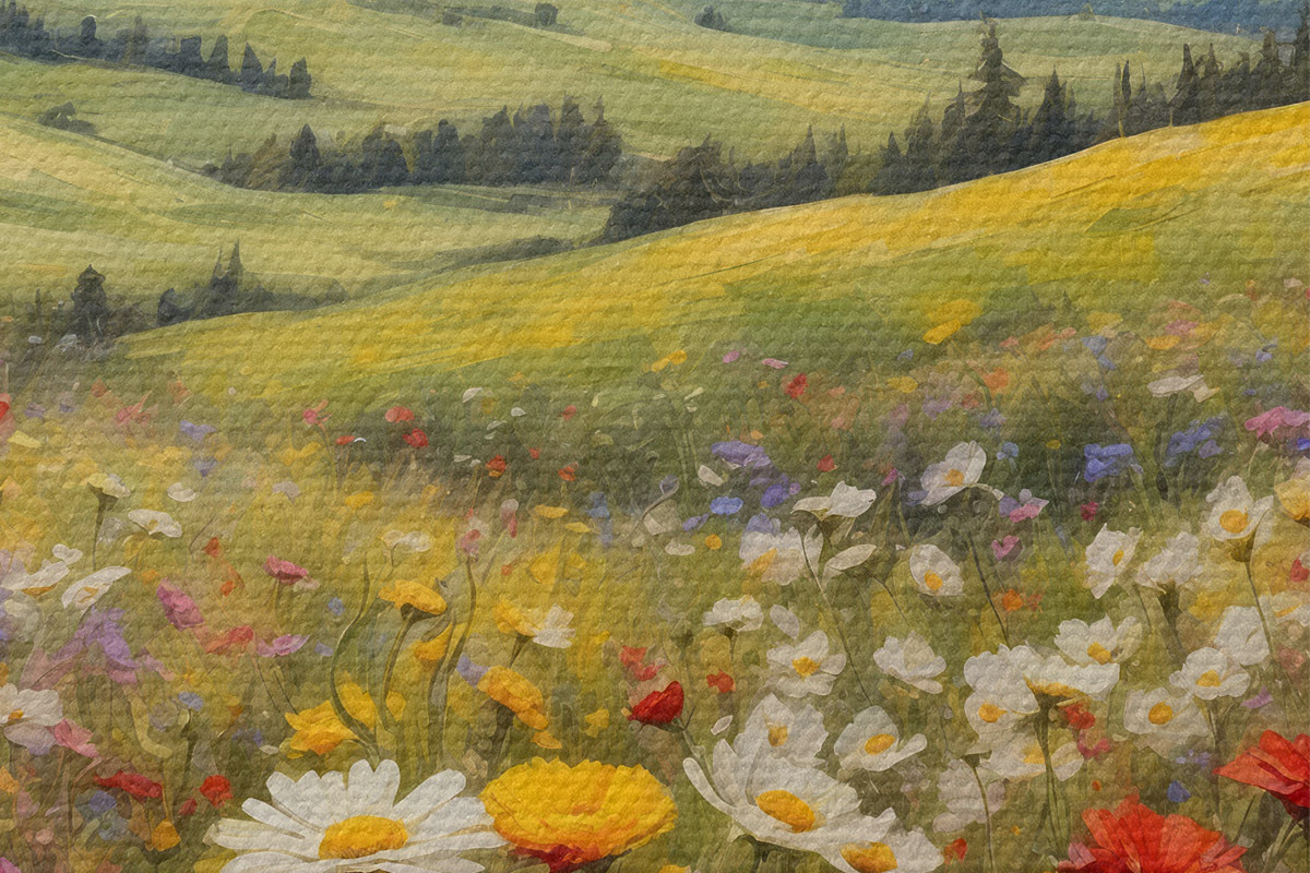 Afbeelding Bloemenveld bij zonsondergang Nr r40073