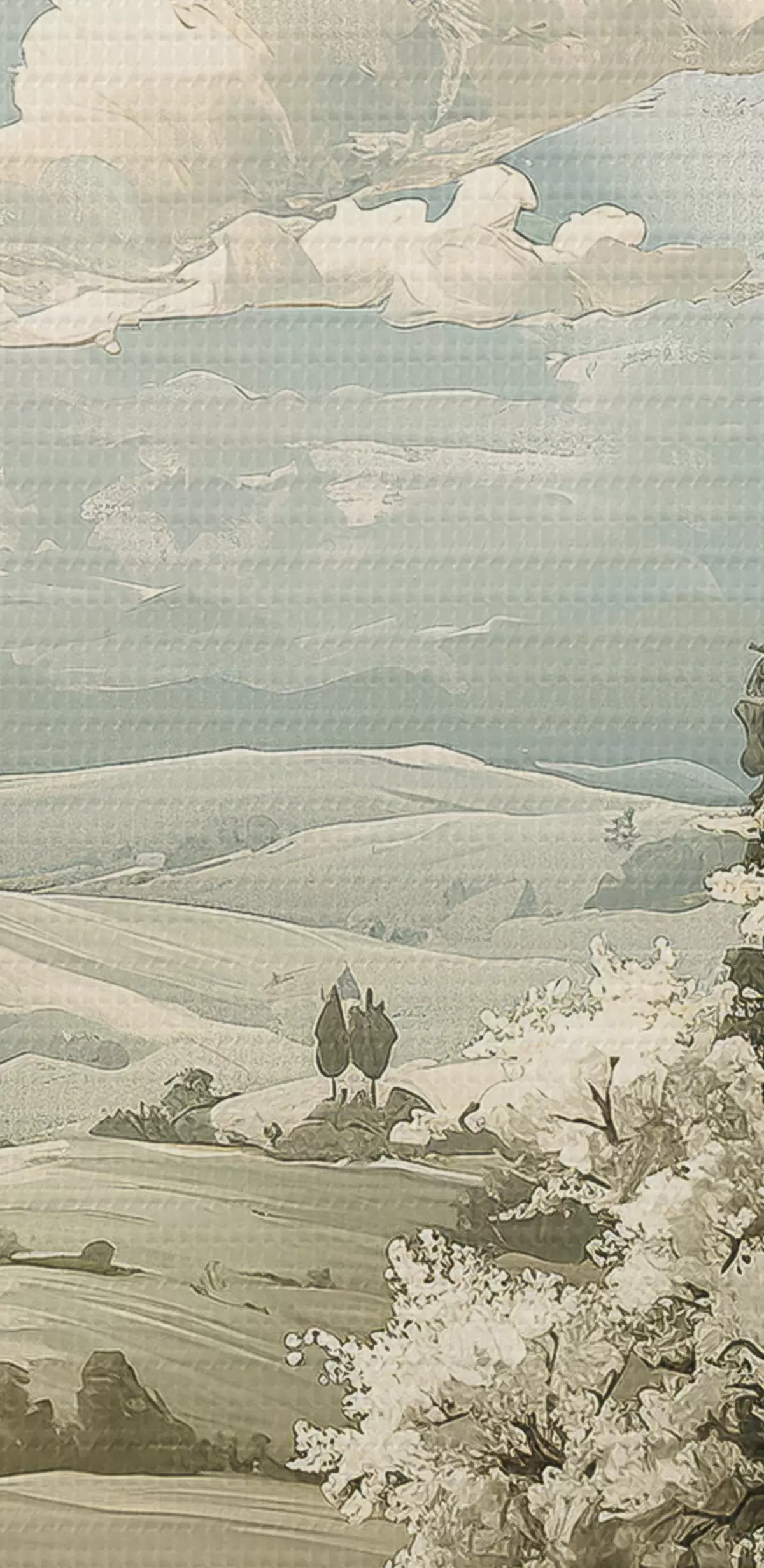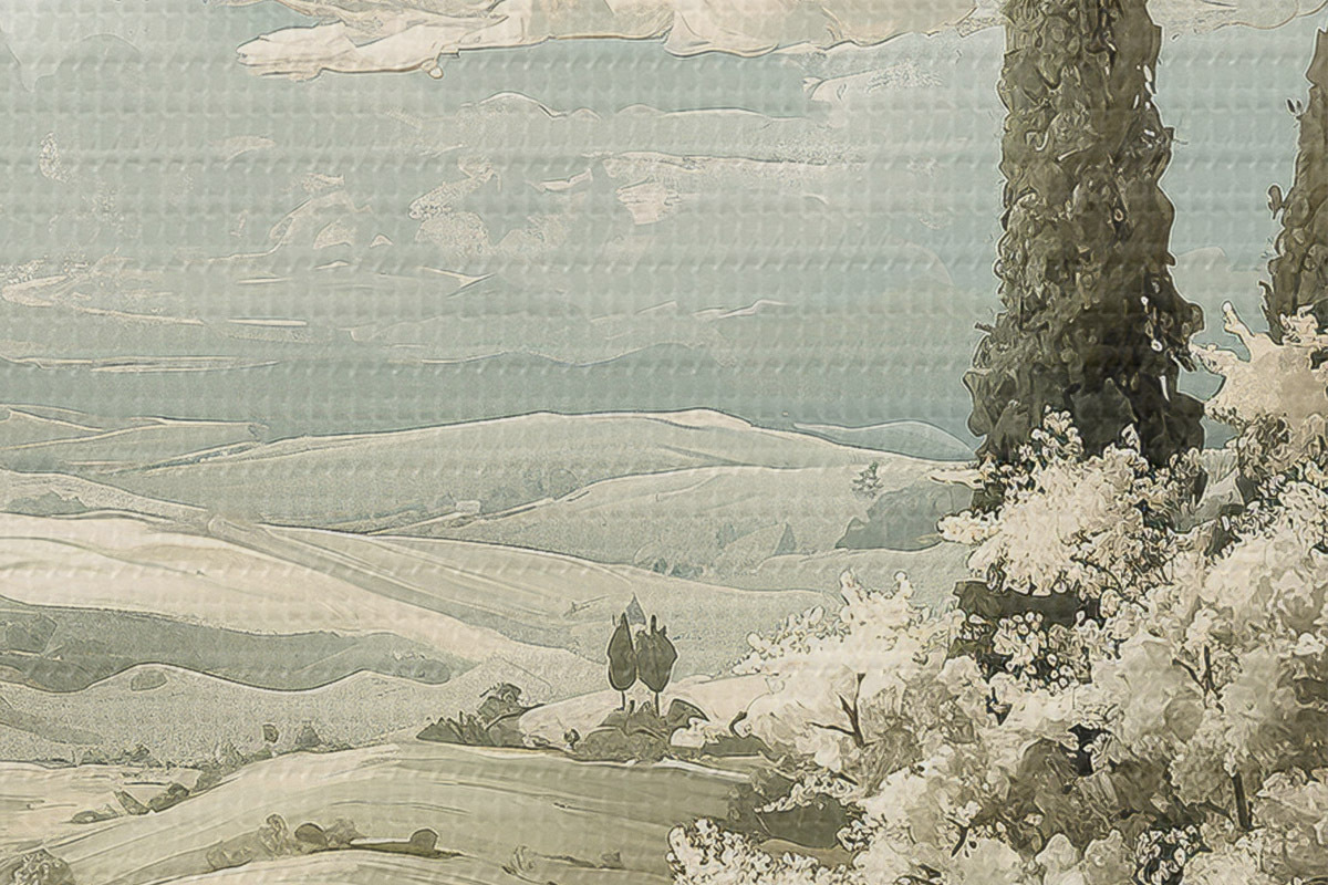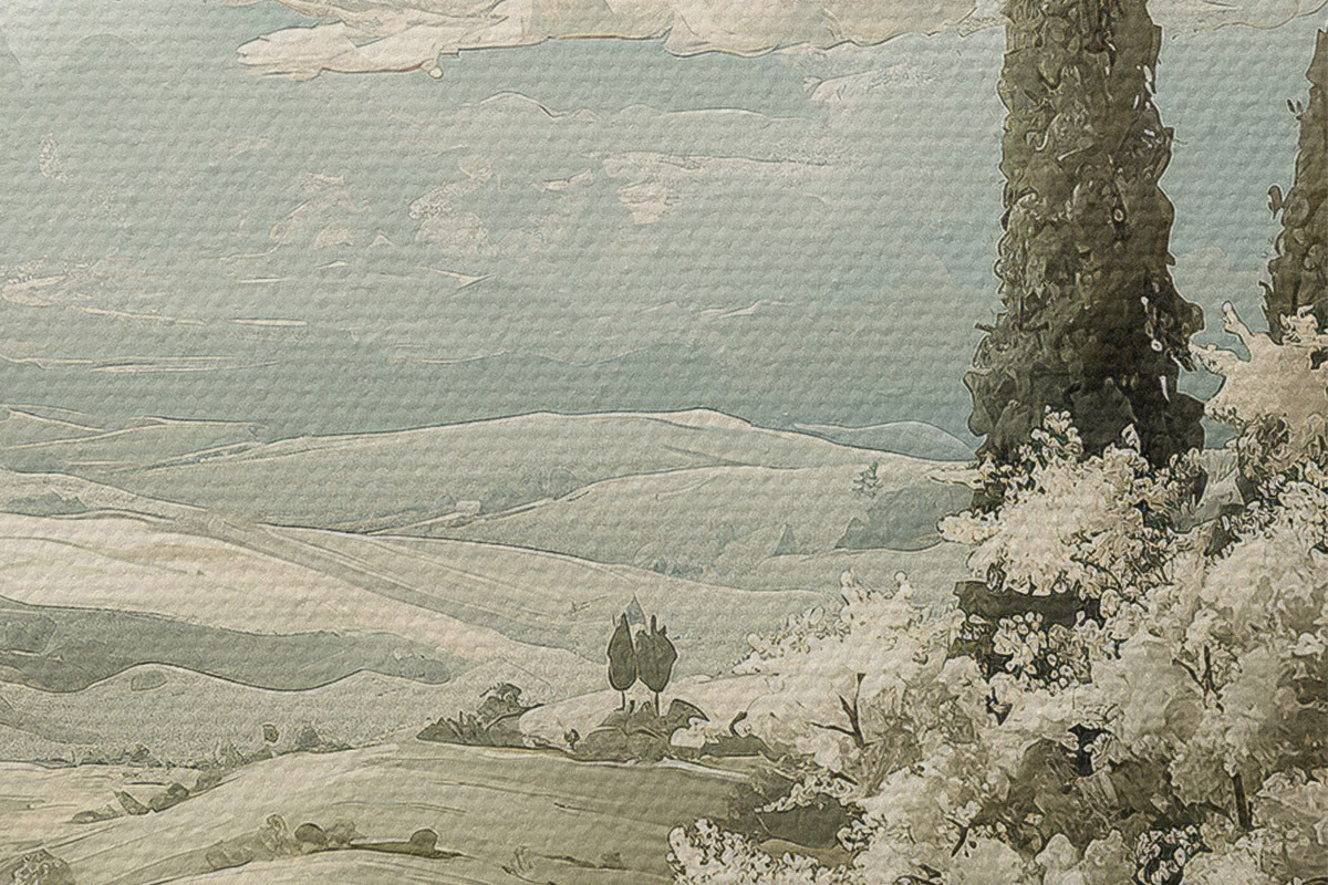 Afbeelding Zomerlandschap, vintage stijl, pastelkleuren, acryl tekening, kasteel Nr r40084