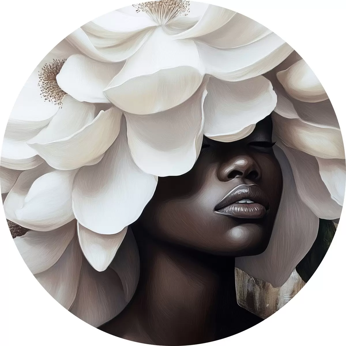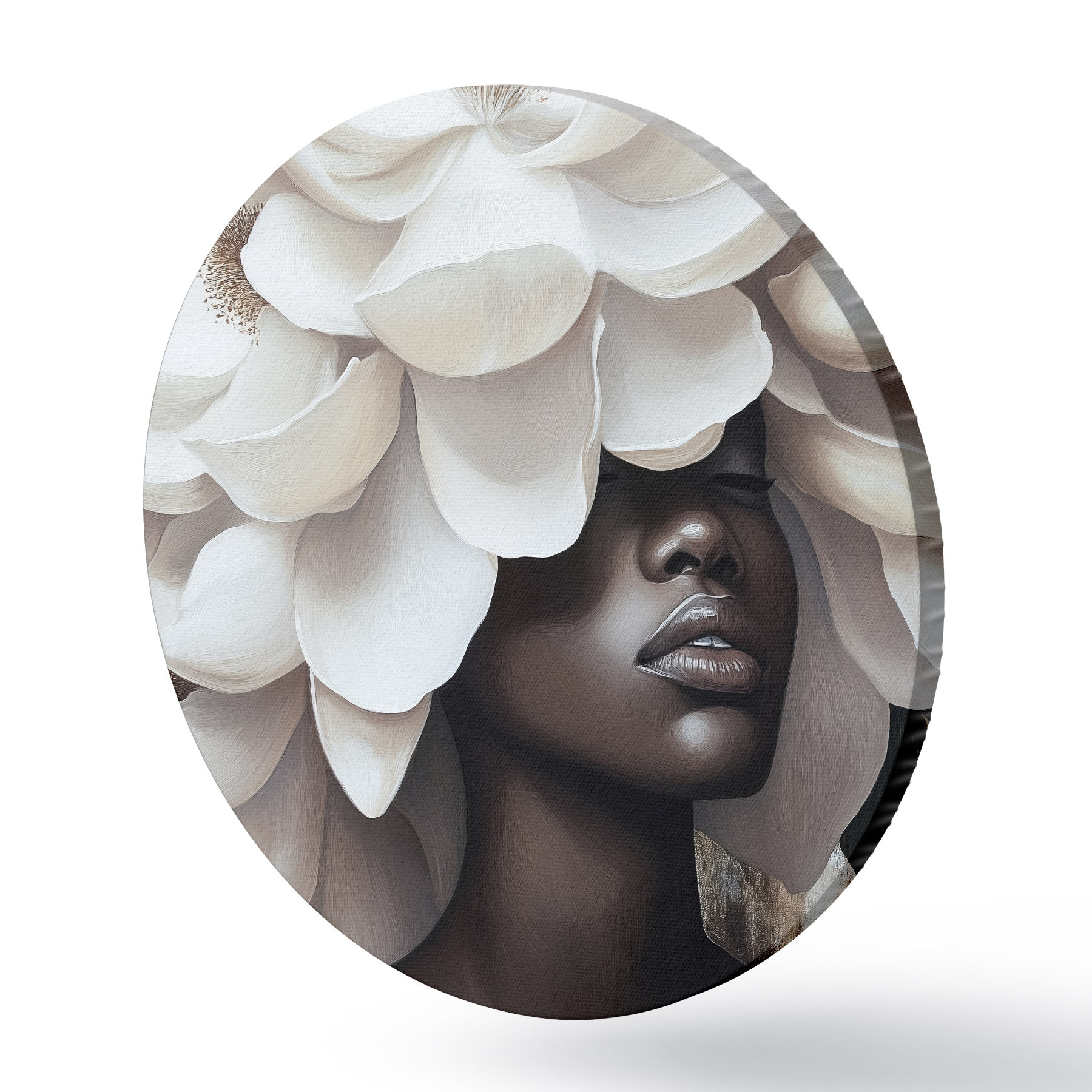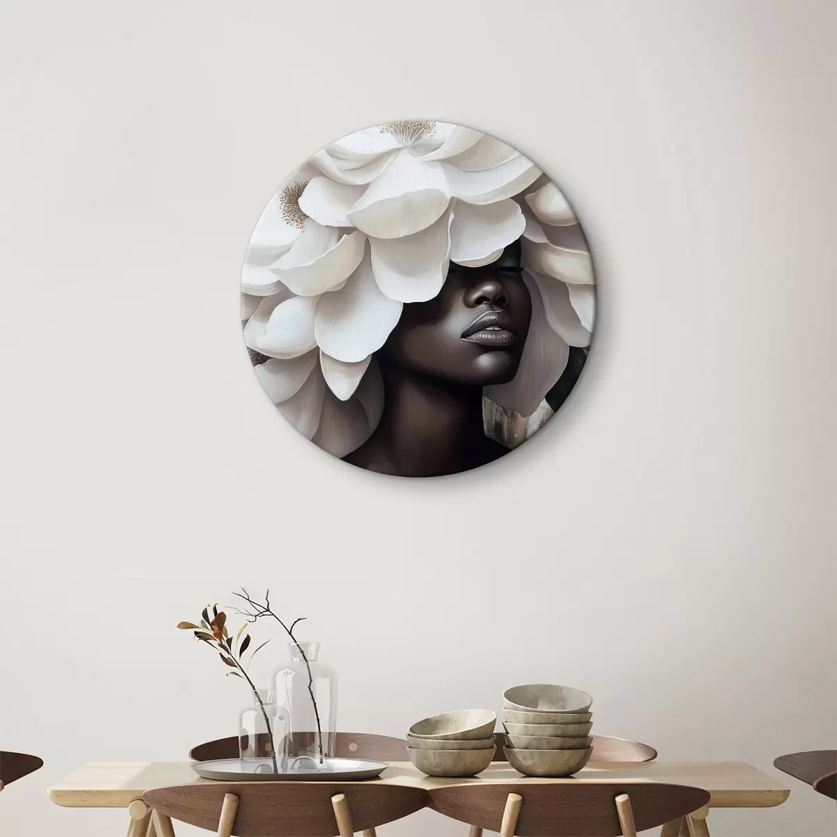 Ronde schilderijen Een vrouw met bloemen op haar hoofd r40123