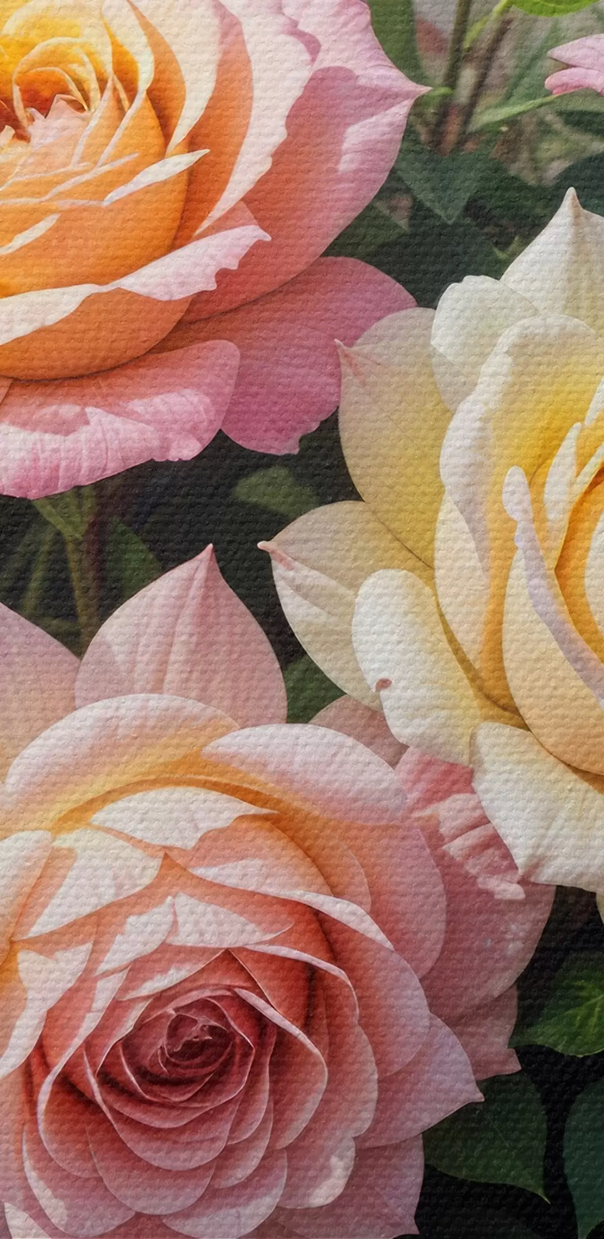 Er zijn drie soorten materiaal te bestellen: Economic Canvas - een dicht en duurzaam materiaal voor digitaal printen, identiek aan schildersdoek, waterdicht oppervlak, realistische weergave van details, materiaal met gemiddelde korrel. Premium Canvas - de textuur lijkt op die van schildersdoek (verweven kleine draden). Zachte, gedetailleerde reproductie van de afbeelding op een mat oppervlak. Eco-Premium - hoogwaardige 100% katoenen stof. Dankzij de natuurlijke katoenvezels is het materiaal duurzaam en slijtvast. Uitstekende kleurweergave en detail.