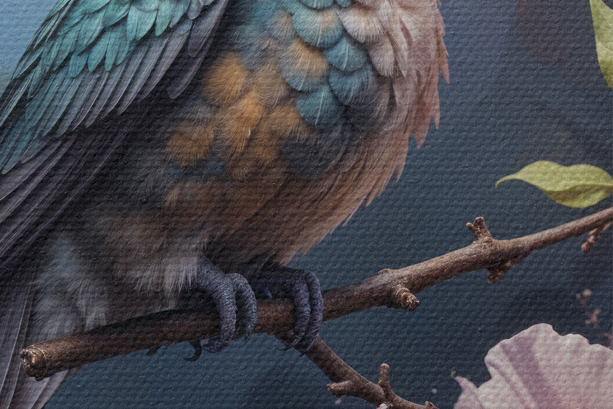 Er zijn drie soorten materiaal te bestellen: Economic Canvas - een dicht en duurzaam materiaal voor digitaal printen, identiek aan schildersdoek, waterdicht oppervlak, realistische weergave van details, materiaal met gemiddelde korrel. Premium Canvas - de textuur lijkt op die van schildersdoek (verweven kleine draden). Zachte, gedetailleerde reproductie van de afbeelding op een mat oppervlak. Eco-Premium - hoogwaardige 100% katoenen stof. Dankzij de natuurlijke katoenvezels is het materiaal duurzaam en slijtvast. Uitstekende kleurweergave en detail.