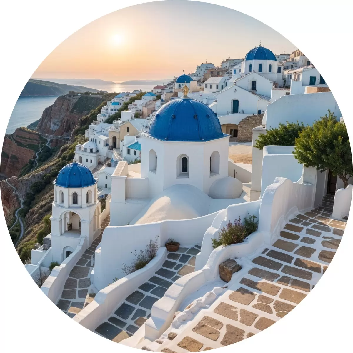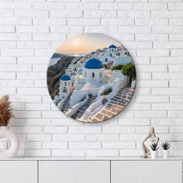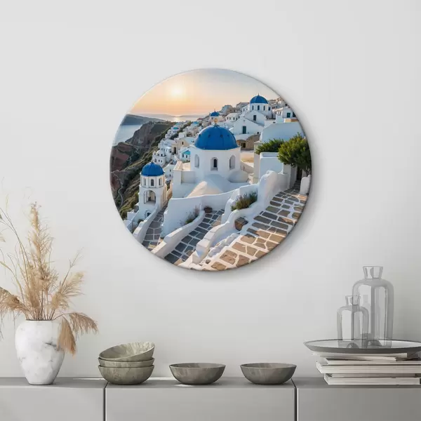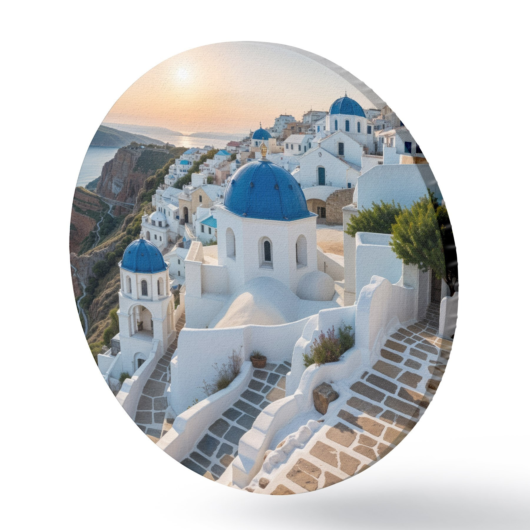 Ronde schilderijen Het eiland Santorini, Griekenland. De stad is gebouwd op een heuvel met uitzicht op de Egeïsche Zee r40160