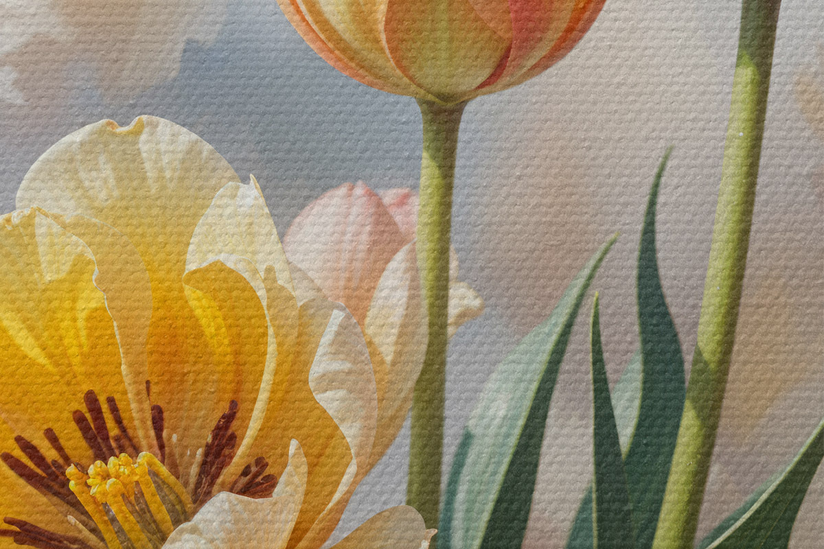 Er zijn drie soorten materiaal te bestellen: Economic Canvas - een dicht en duurzaam materiaal voor digitaal printen, identiek aan schildersdoek, waterdicht oppervlak, realistische weergave van details, materiaal met gemiddelde korrel. Premium Canvas - de textuur lijkt op die van schildersdoek (verweven kleine draden). Zachte, gedetailleerde reproductie van de afbeelding op een mat oppervlak. Eco-Premium - hoogwaardige 100% katoenen stof. Dankzij de natuurlijke katoenvezels is het materiaal duurzaam en slijtvast. Uitstekende kleurweergave en detail.
