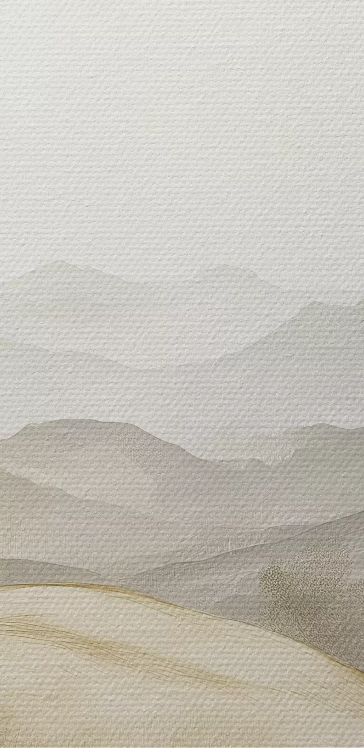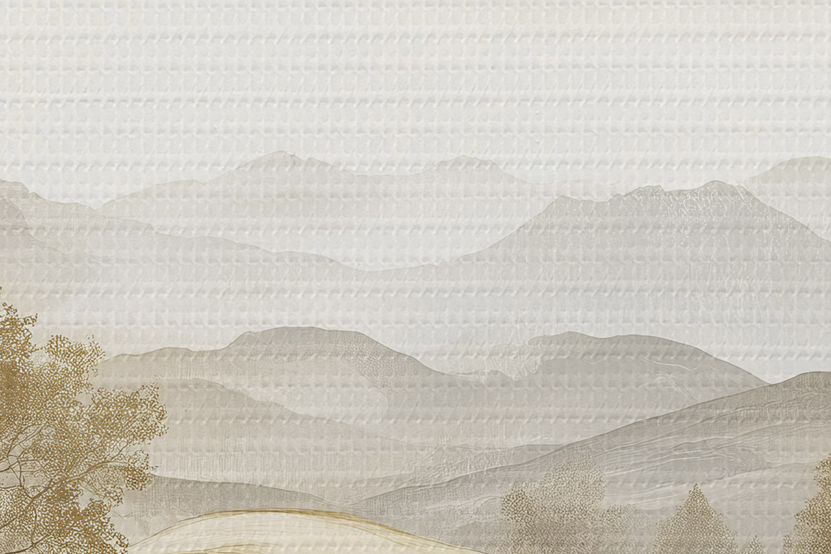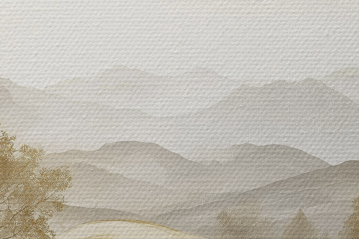 Afbeelding Natuurlandschap in beige kleurenpalet, weide, bomen, aquareltekening Nr r40231