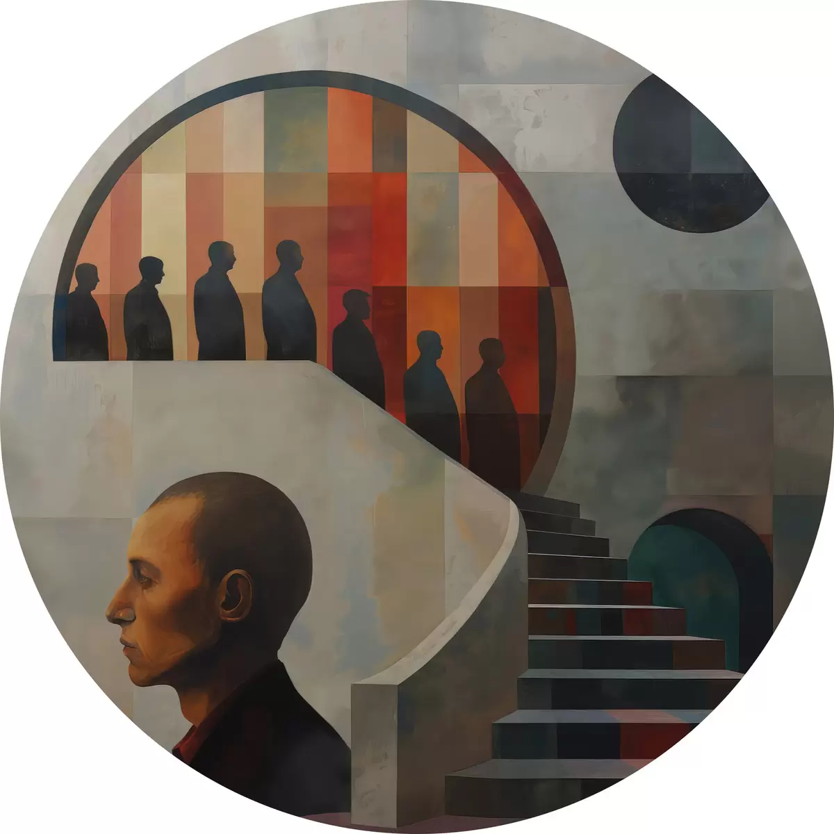 Ronde schilderijen moderne illustratie van trappen r40238