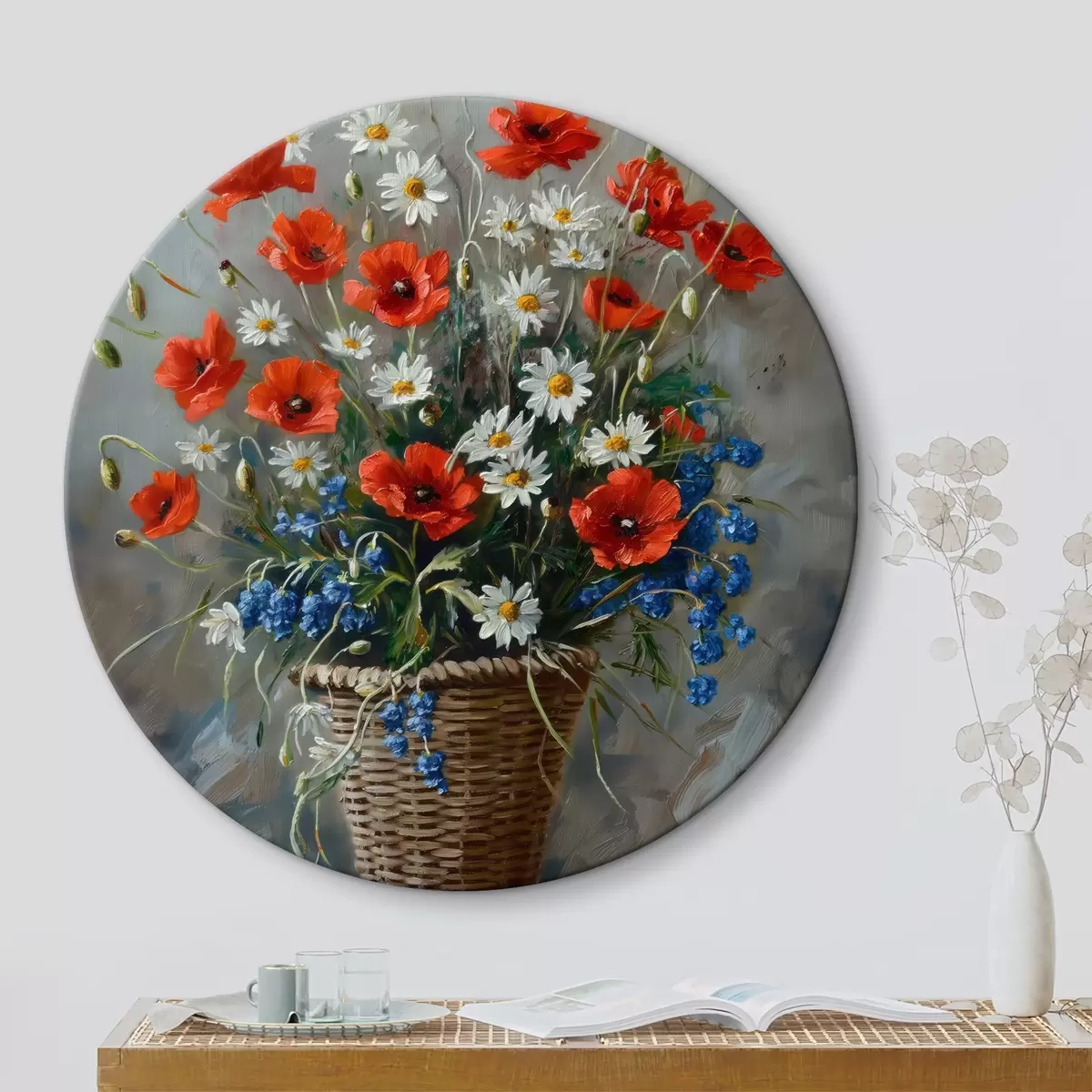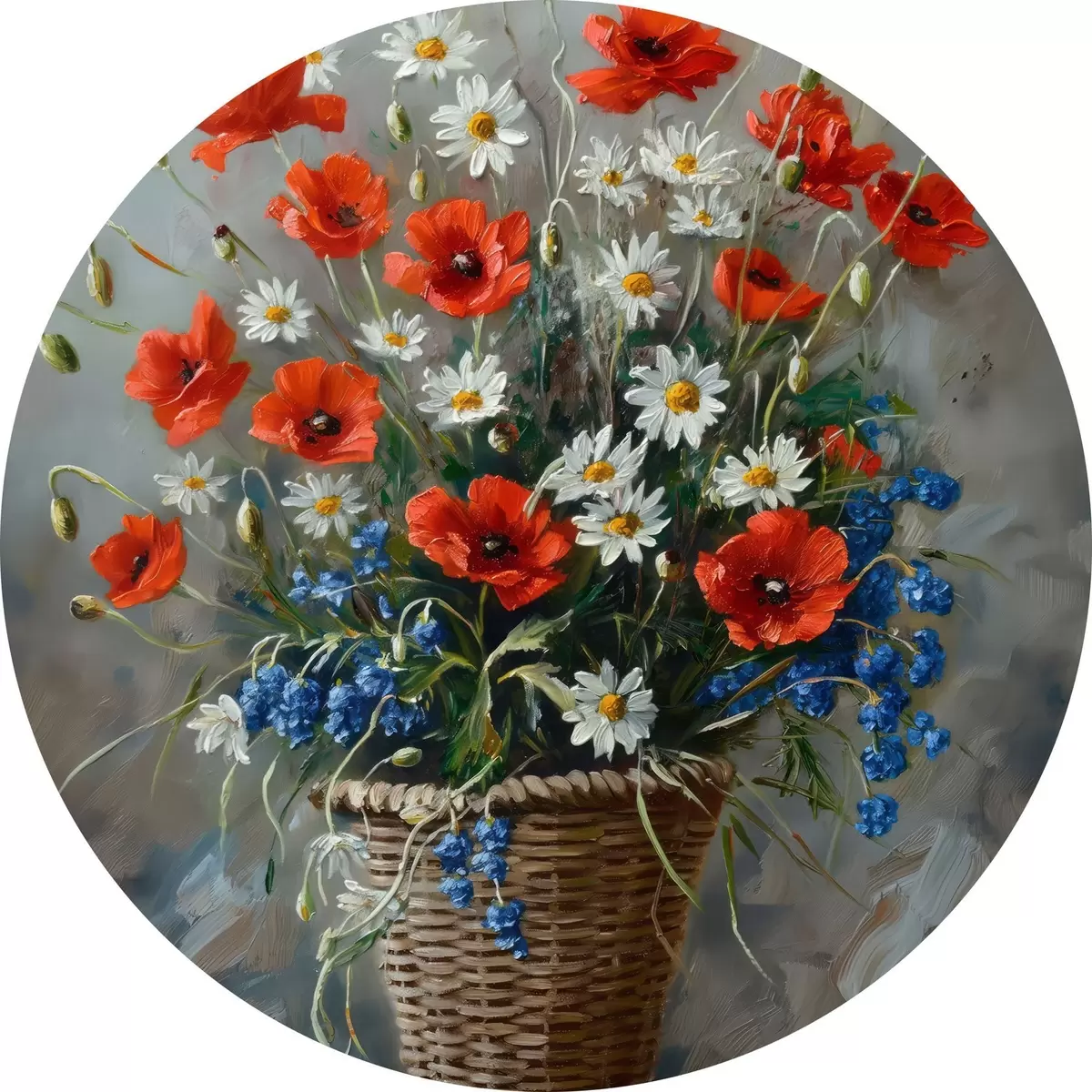 Ronde schilderijen wilde bloemen worden getekend r40259