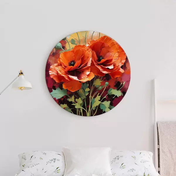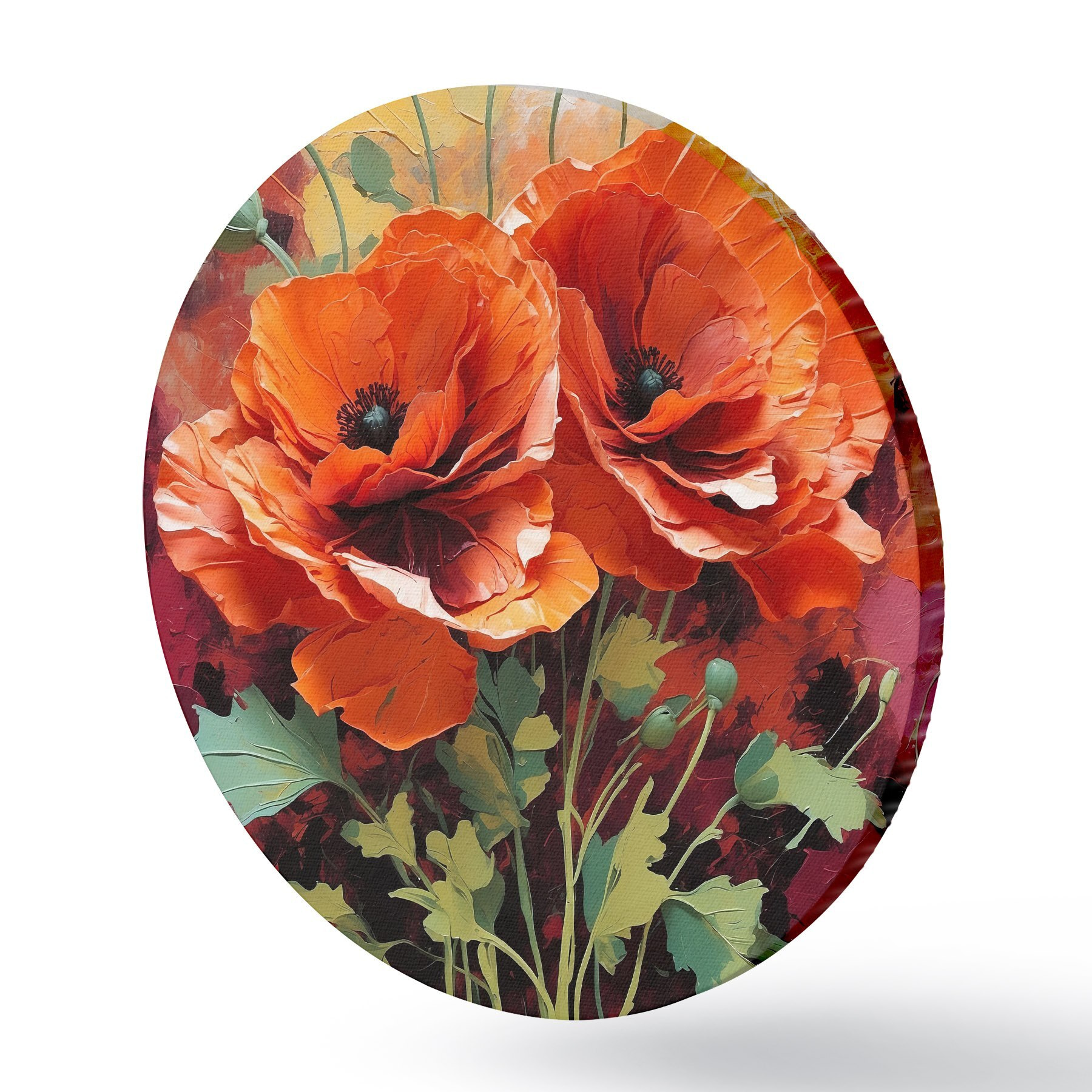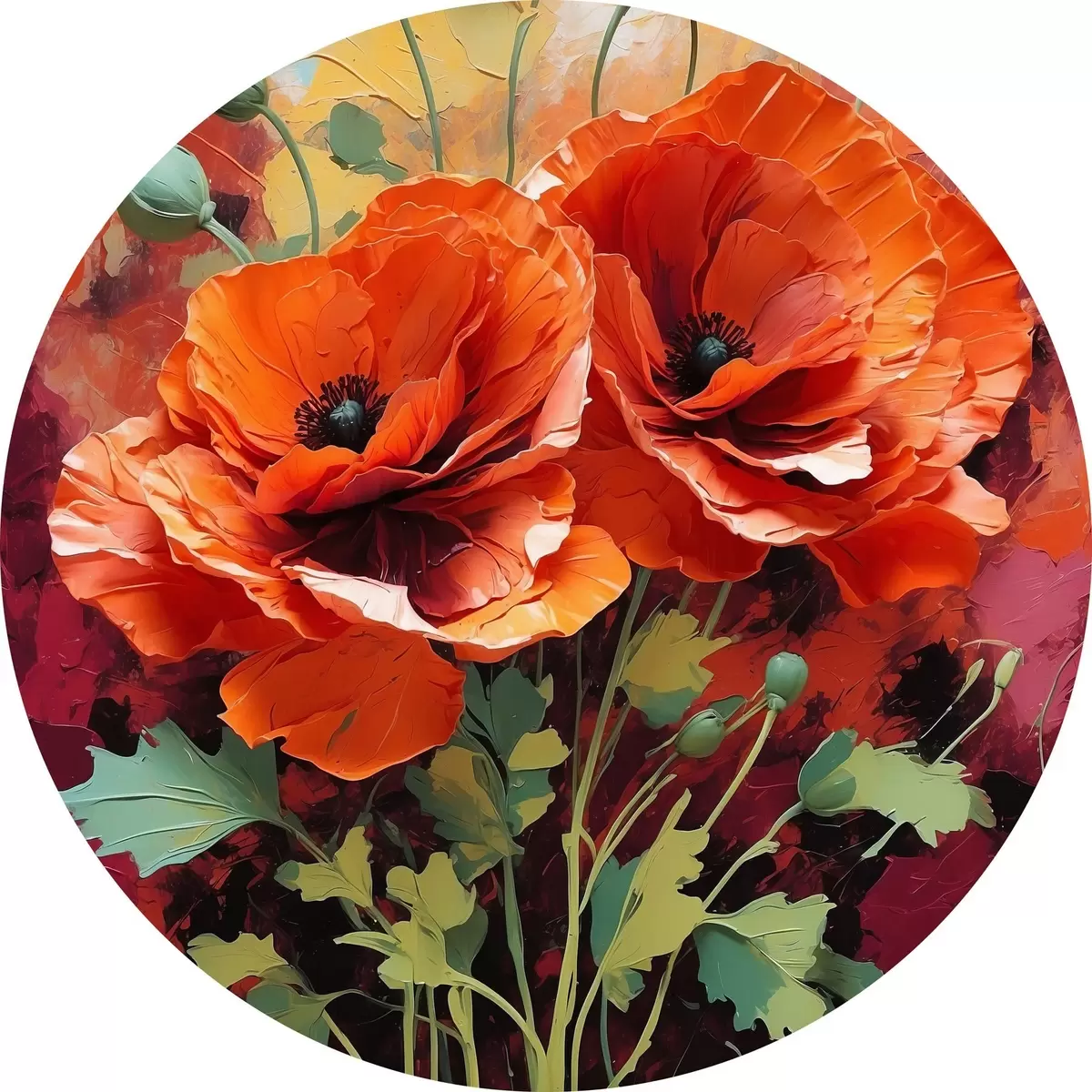 Ronde schilderijen Klaprozen op abstracte acryl achtergrond r40323