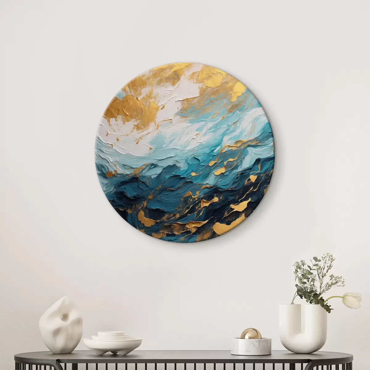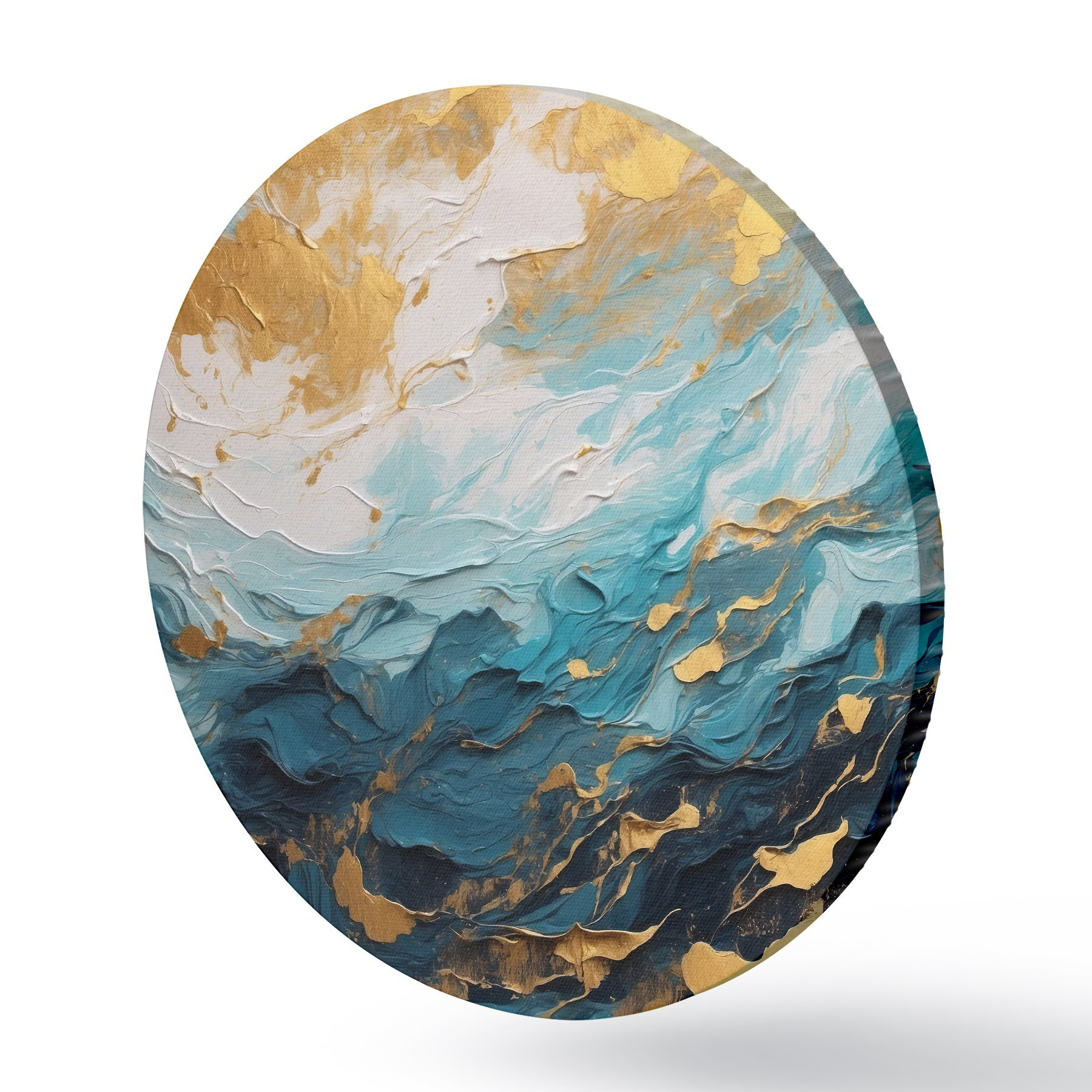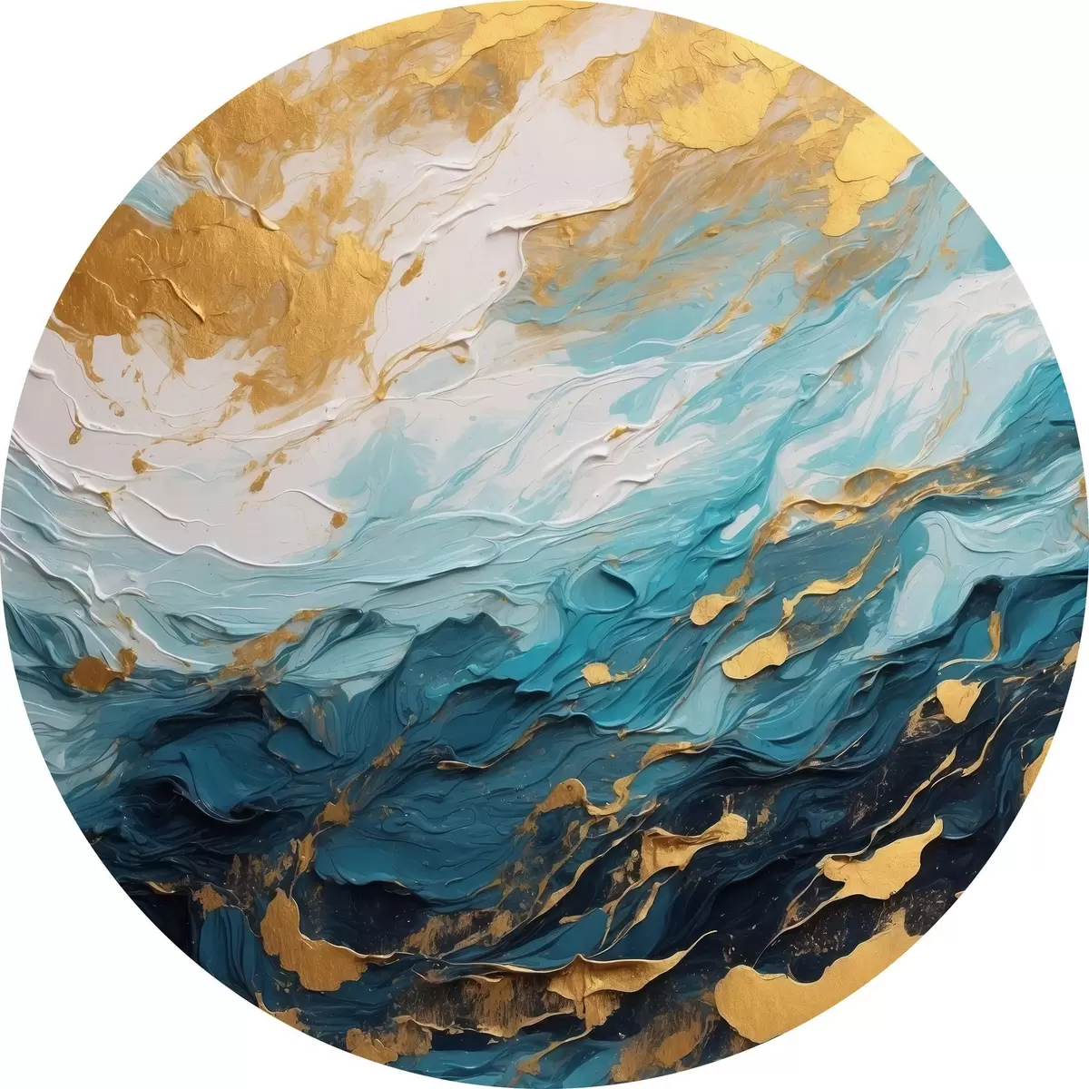 Ronde schilderijen Abstract schilderij met blauwe en witte kleuren r40328