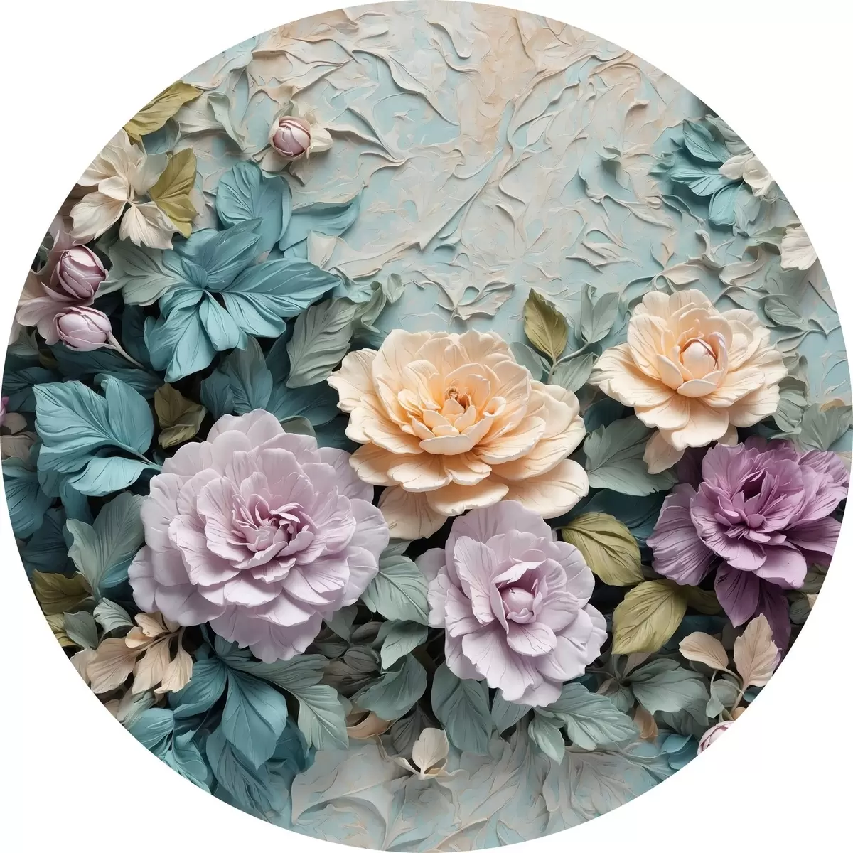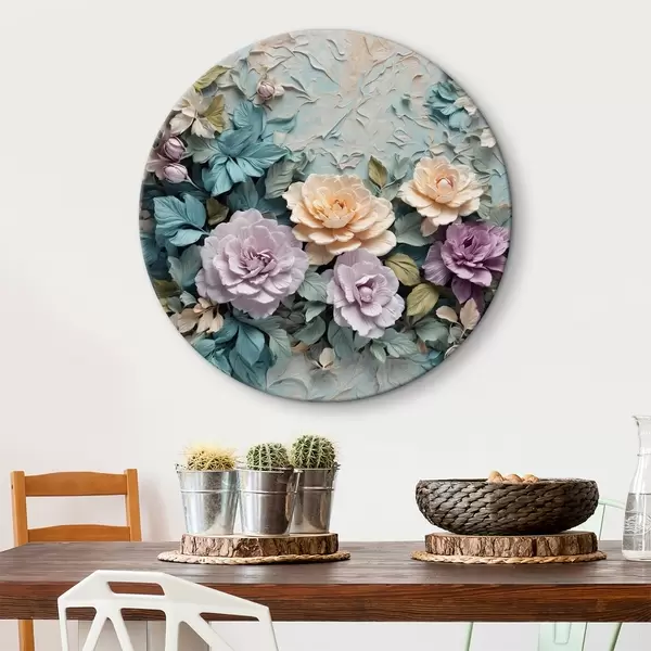 Ronde schilderijen Bloemen en bladeren op abstracte achtergrond r40332