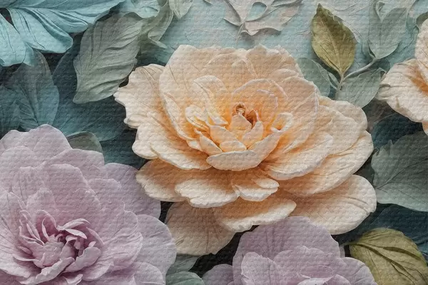 Afbeelding Bloemen en bladeren op abstracte achtergrond Nr r40332