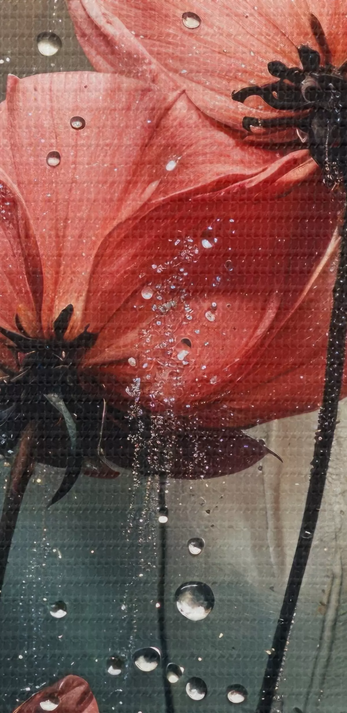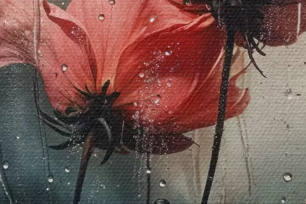 Afbeelding Rode bloemen met waterdruppels tegen een wazige achtergrond Nr r40412