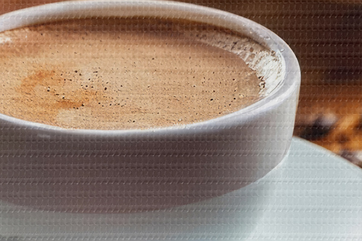 Afbeelding kopje koffie, koffiebonen, taarten, stilleven Nr r40417