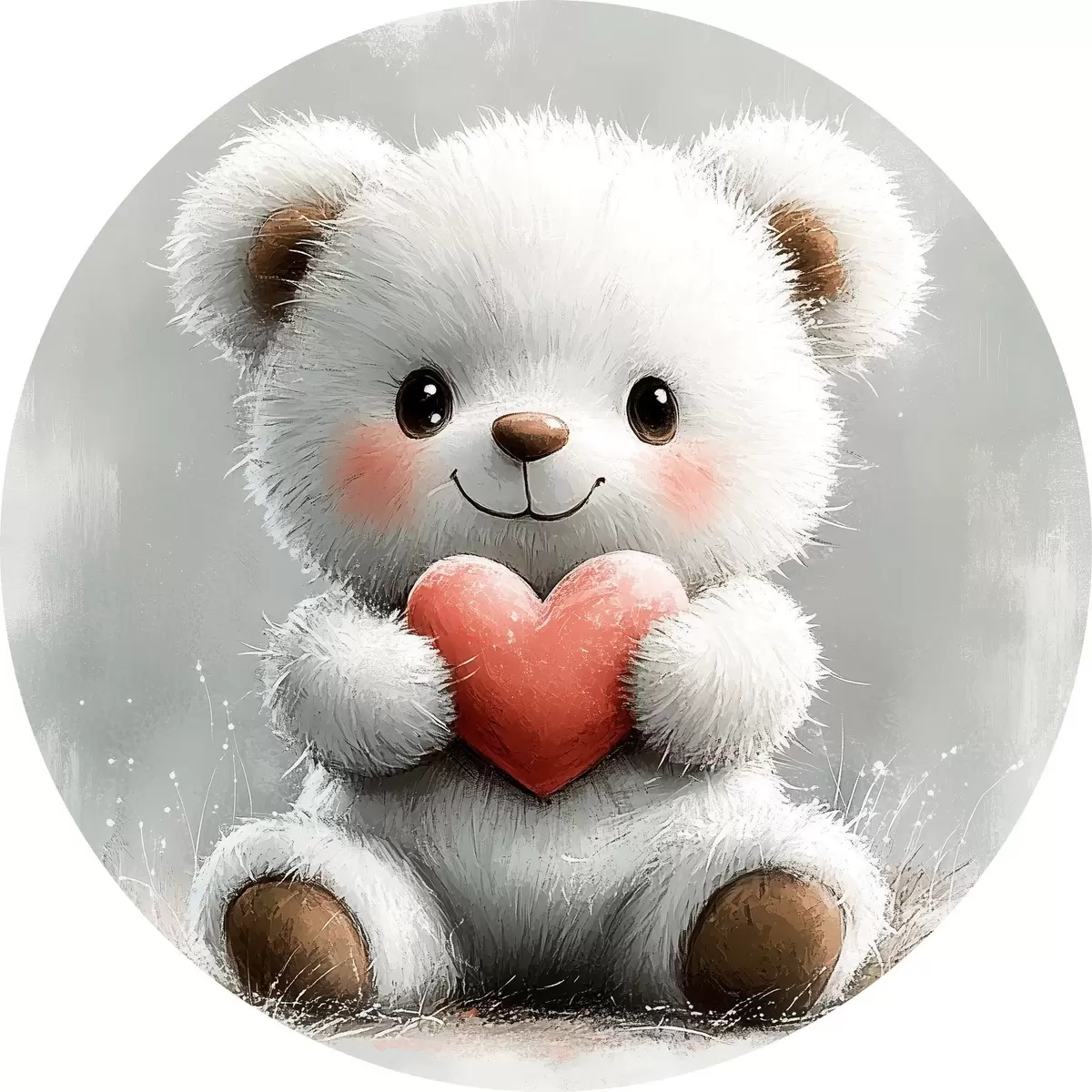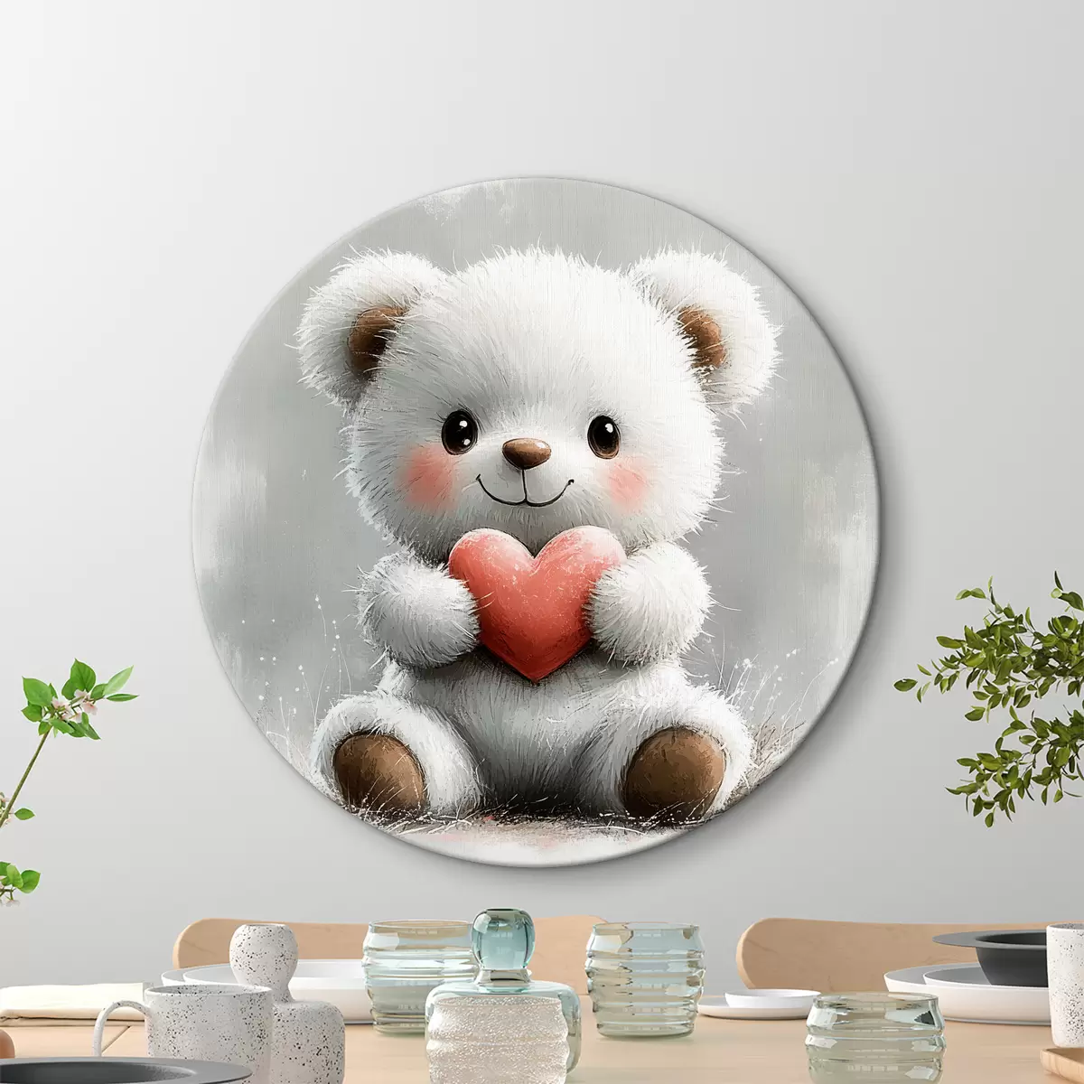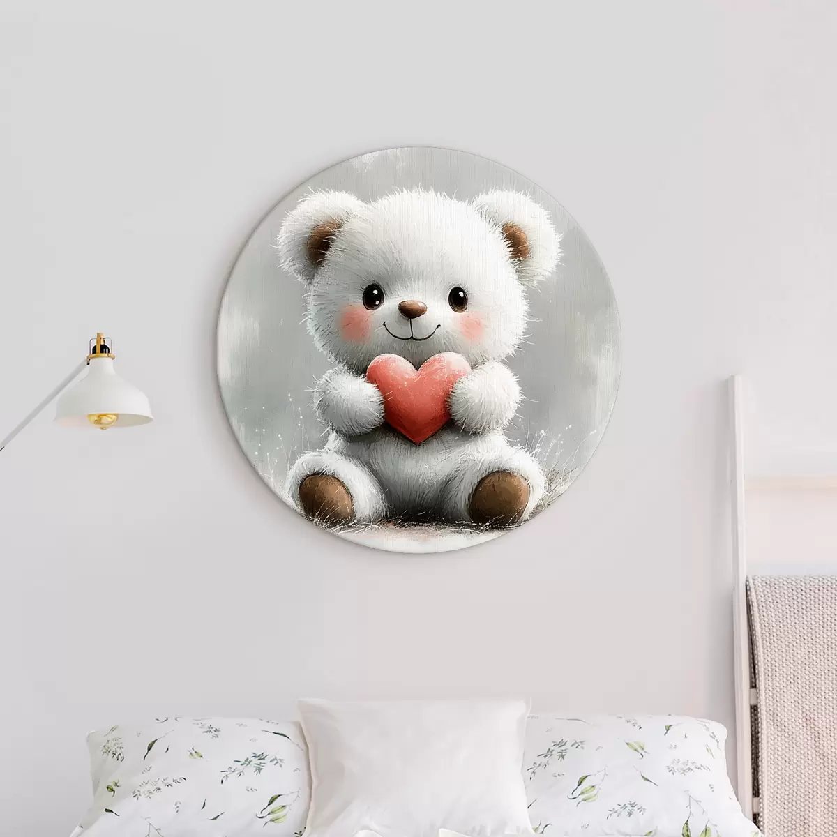 Ronde schilderijen Schattige beer met hart in zijn poten r40432