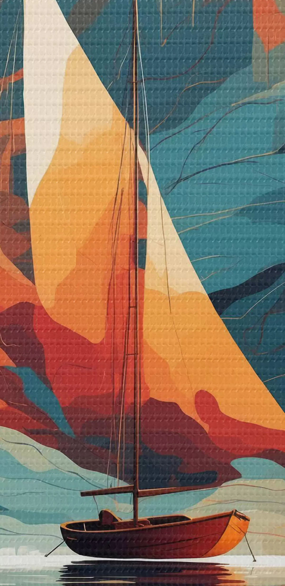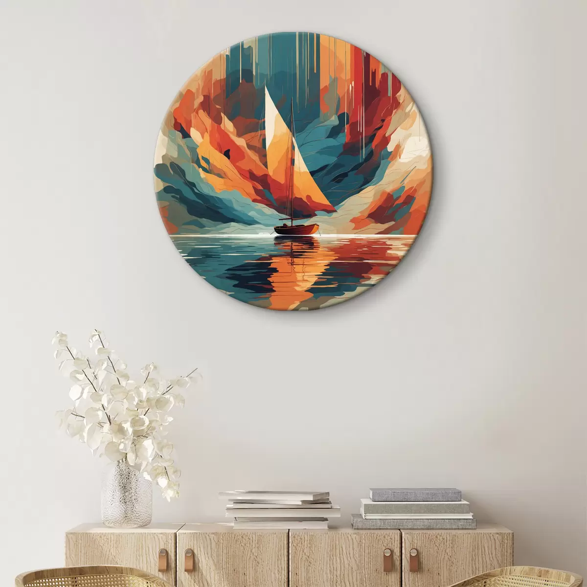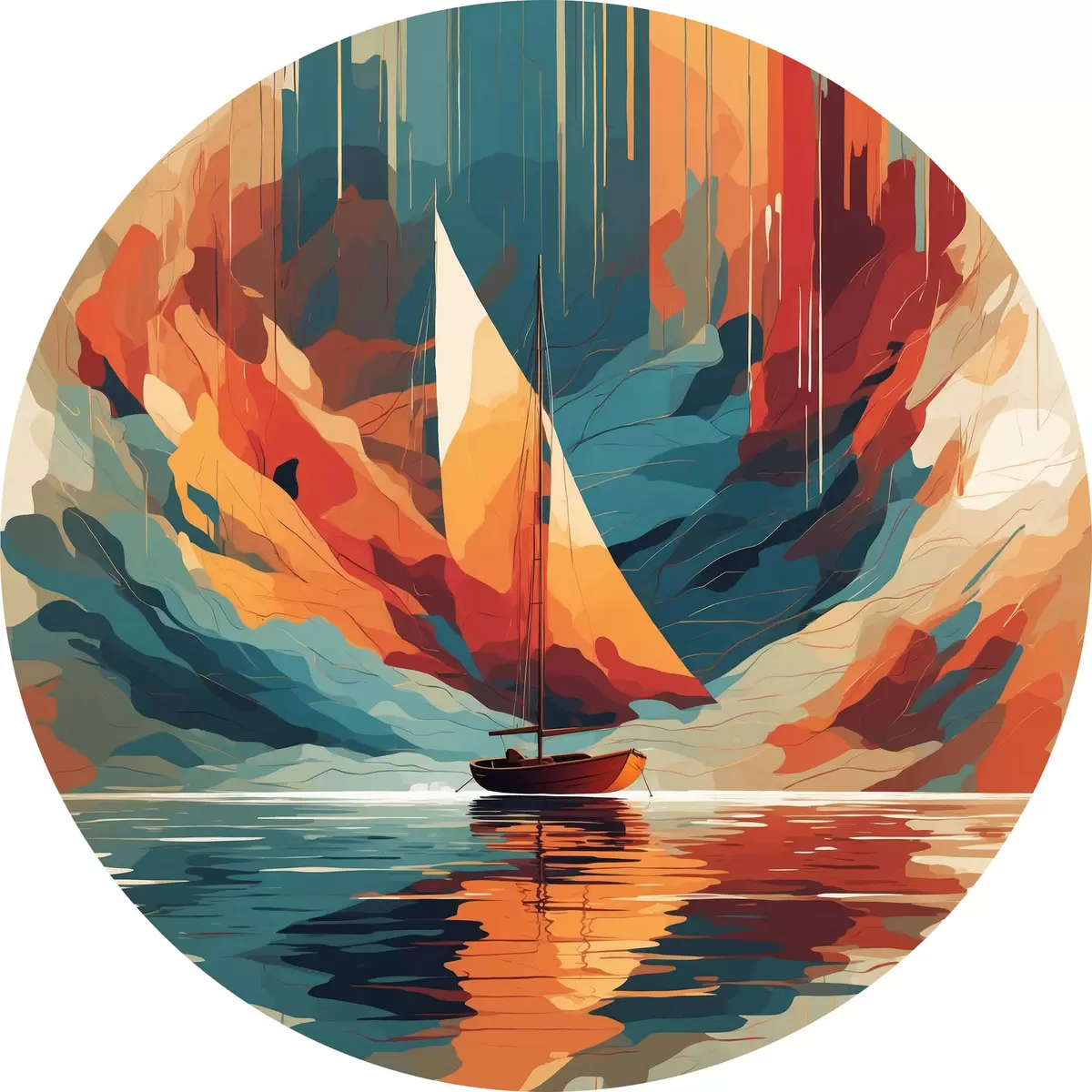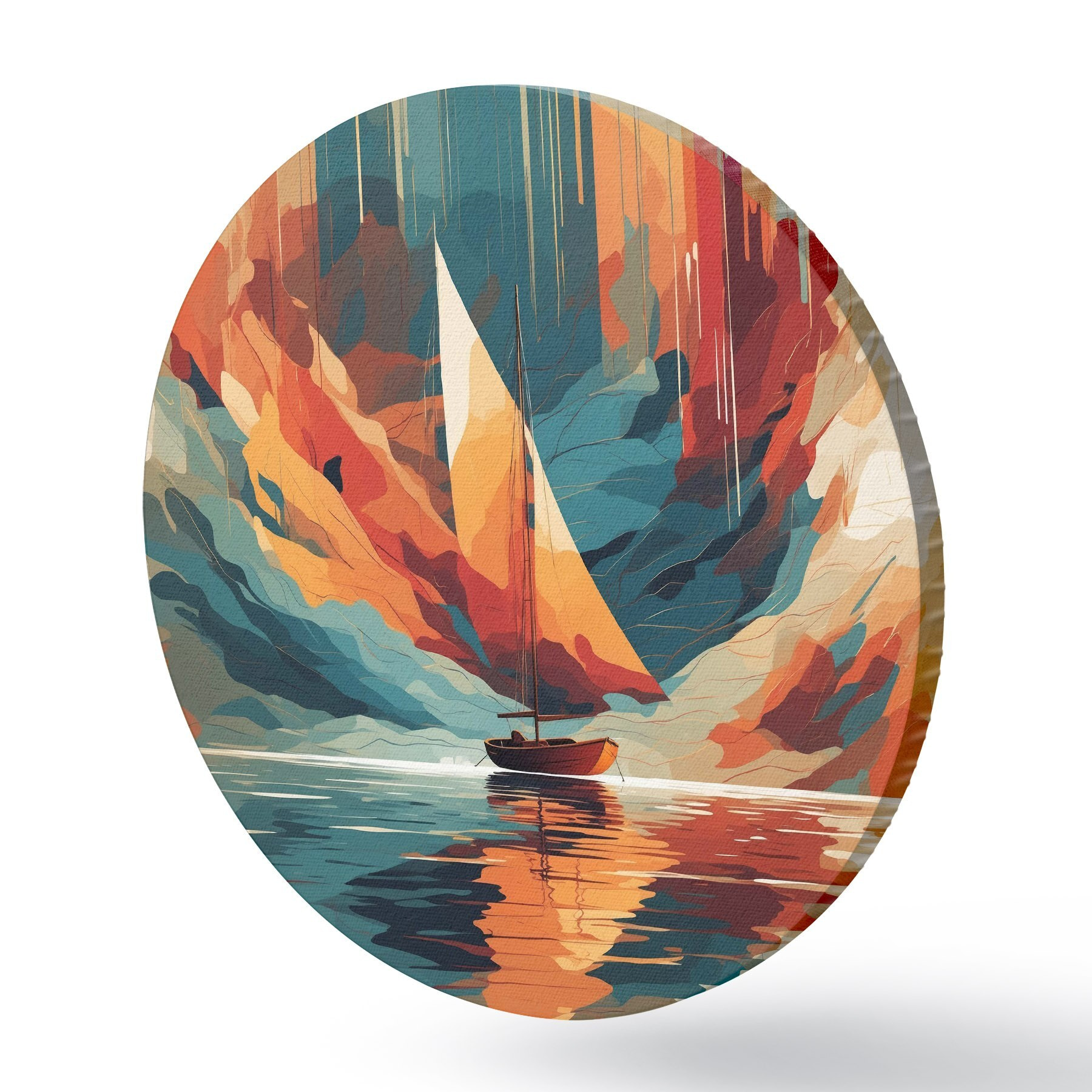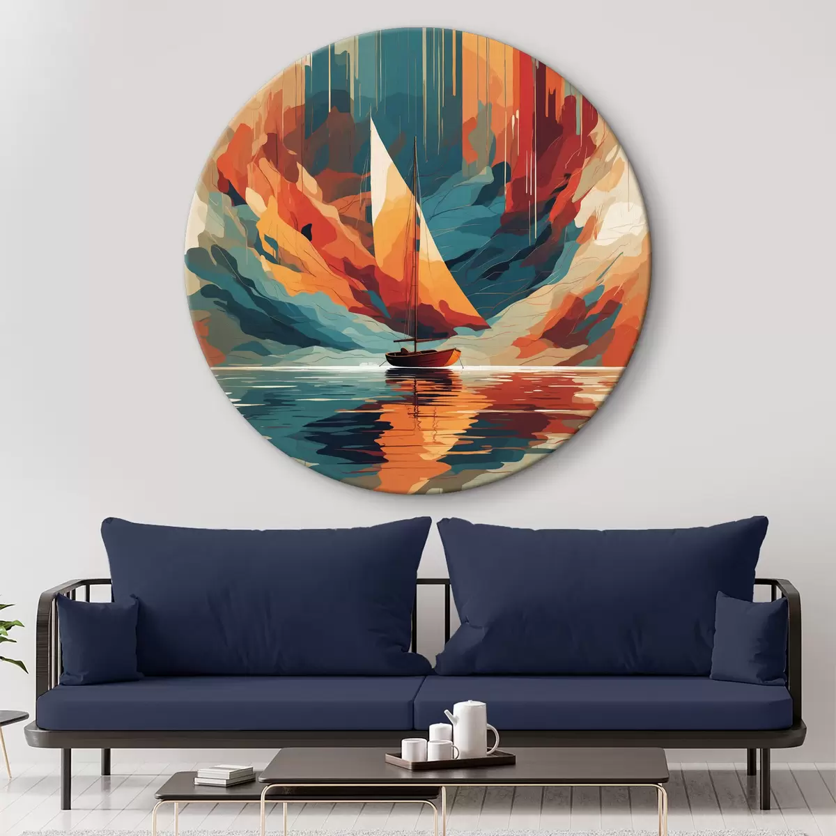 Ronde schilderijen Boot op het meer in vectorafbeelding r40462